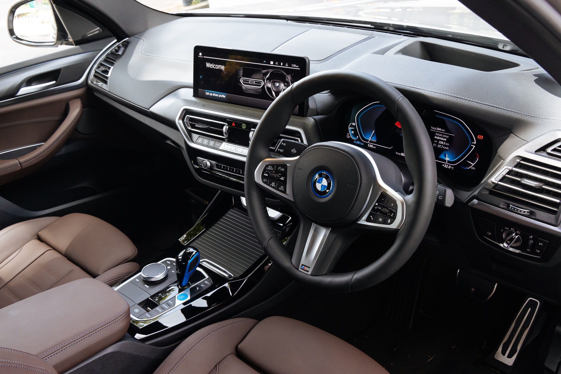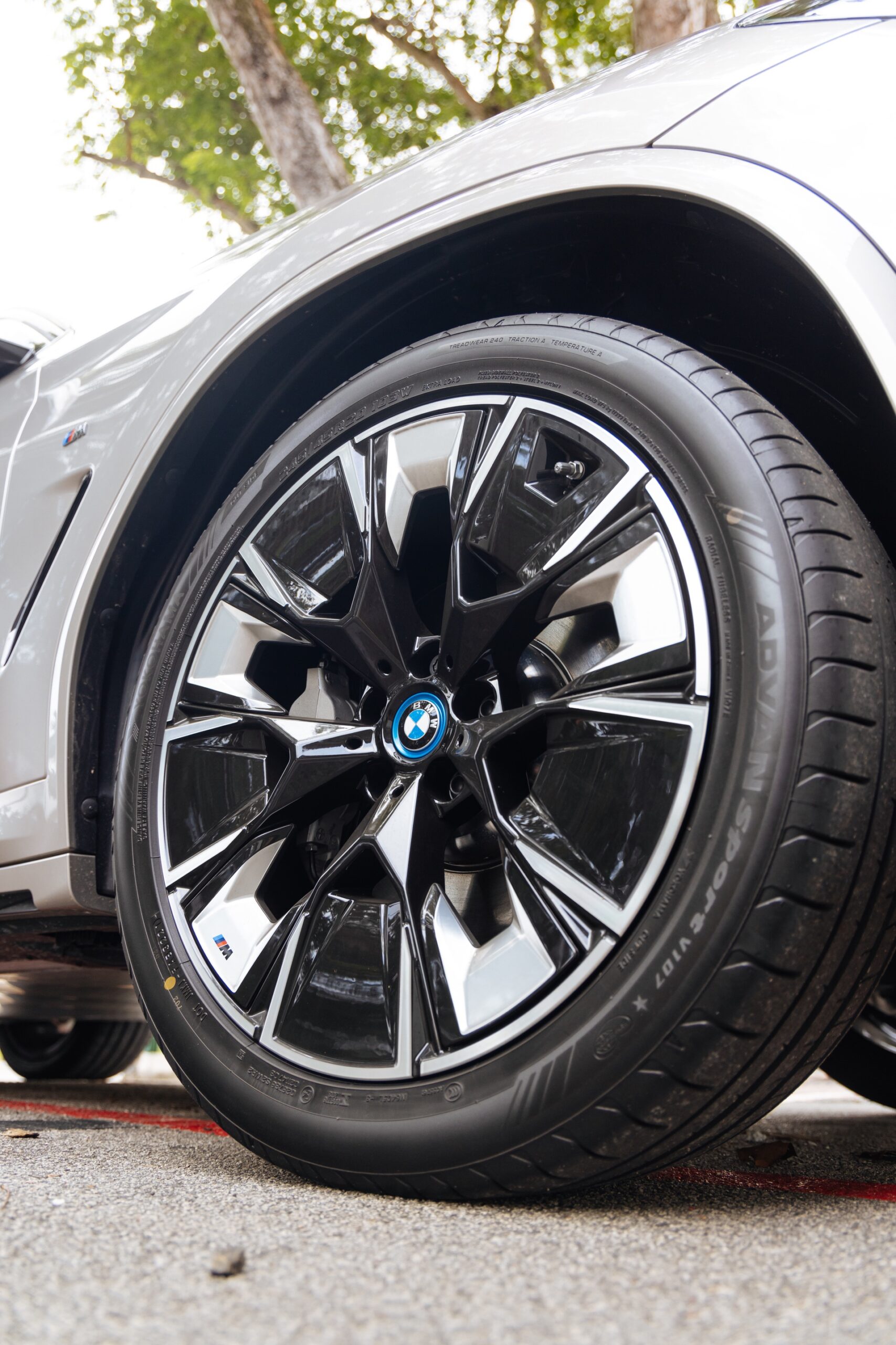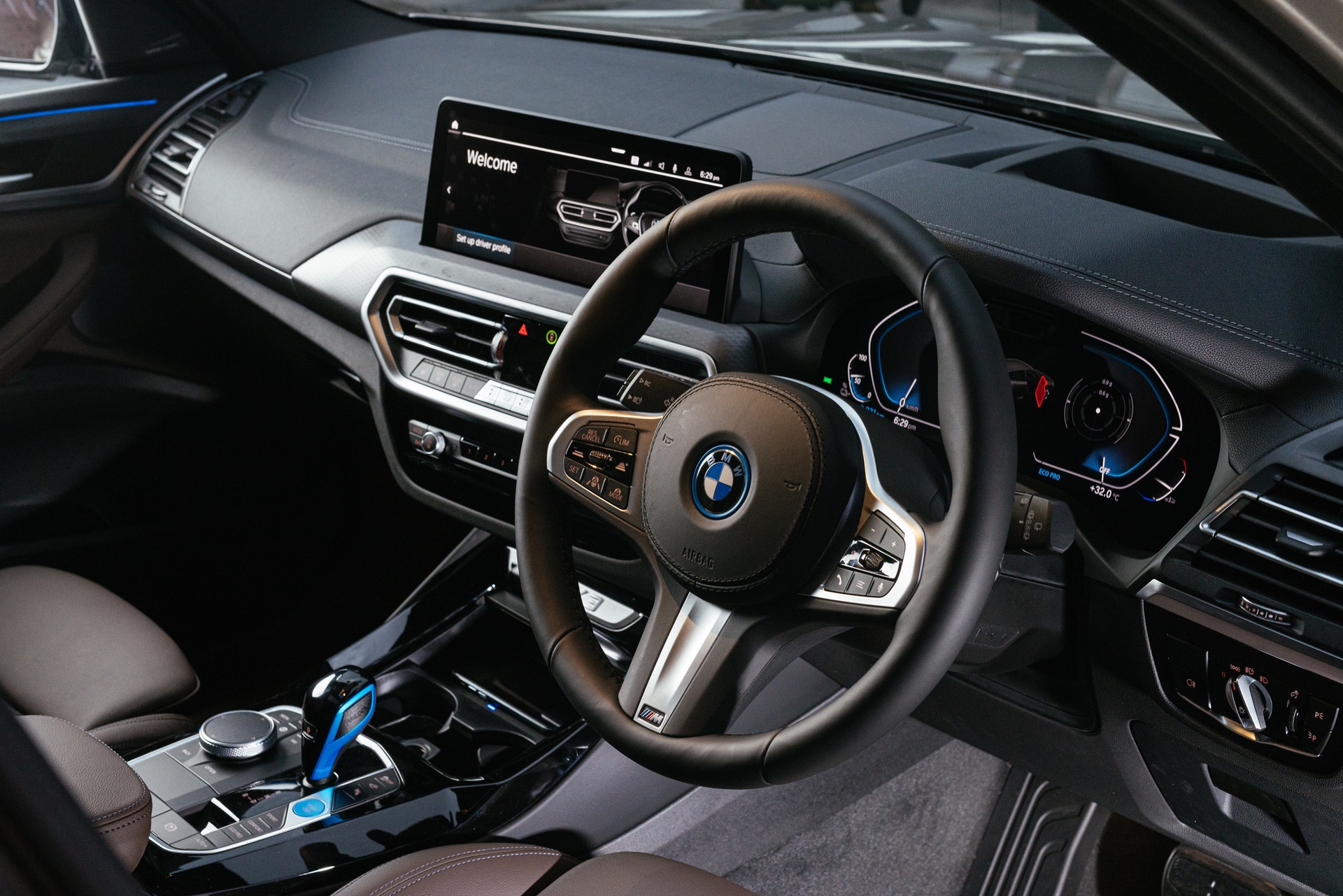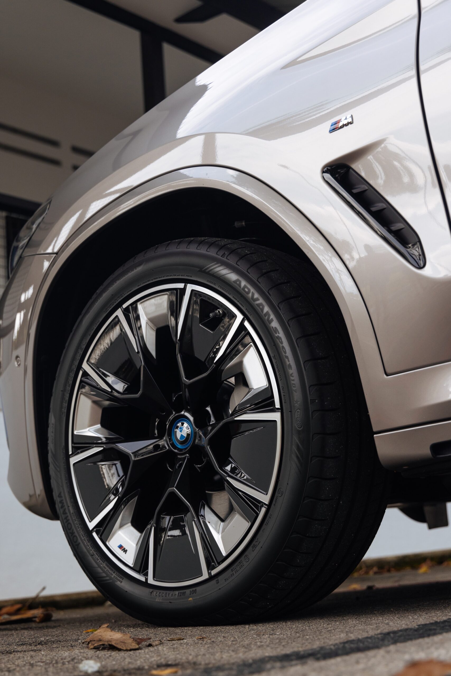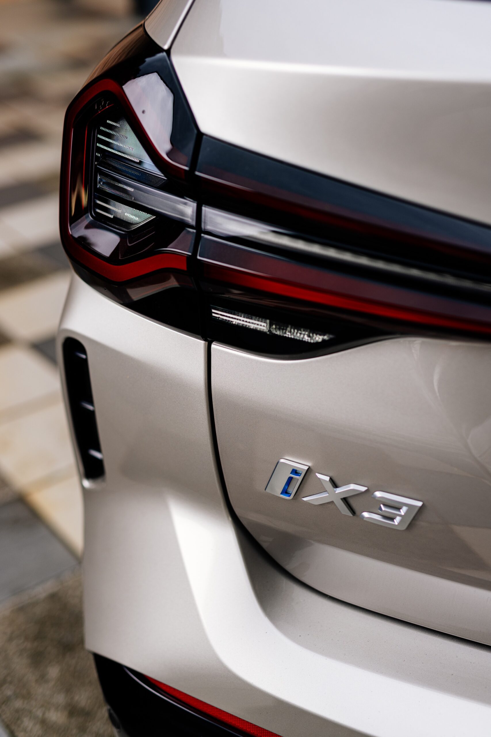 The M Sport Package is now standard on the BMW iX3, so the electric SUV features a larger lower air intake with a ten-stage active air flap control for the cooling of the drivetrain and brakes. The air curtains are now L-shaped and adorned with more blue accents. The air breathers are also derived from M models. In the back, the iX3 stands out with its slim taillights and a slightly revised diffuser. 19-inch wheels are fitted as standard, but an optional aero 20-inch M wheel is available as well.