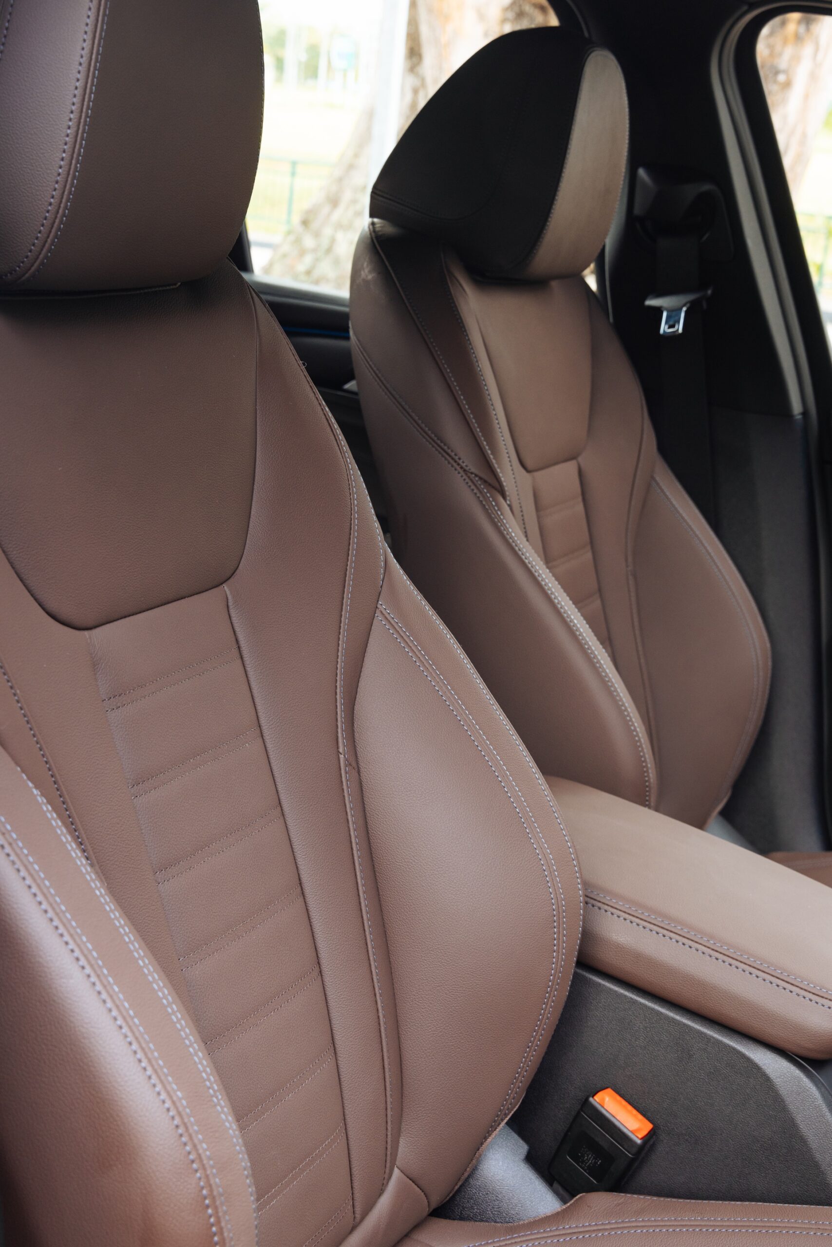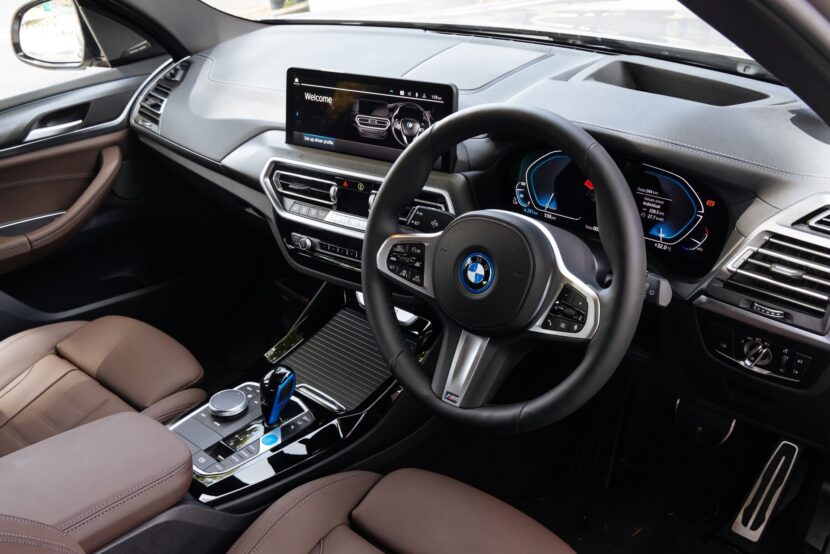 Sport seats are now standard, as well as the BMW Live Cockpit Professional with a 12.3 inch screen. The blue accents are still visible around the Start/Stop button and the gear lever. In terms of premium materials, you can order the BMW iX3 Facelift with Vernasca leather in Mocha, Oyster or Black with blue stitching. If you’re on the sustainability side of things, Sensatec upholstery in Black or Cognac is available as a standard option. Since the M Sport Package is included by default, customers will also get an Anthracite-colored headliner and interior trim in the Aluminum Rhombicle dark finish.