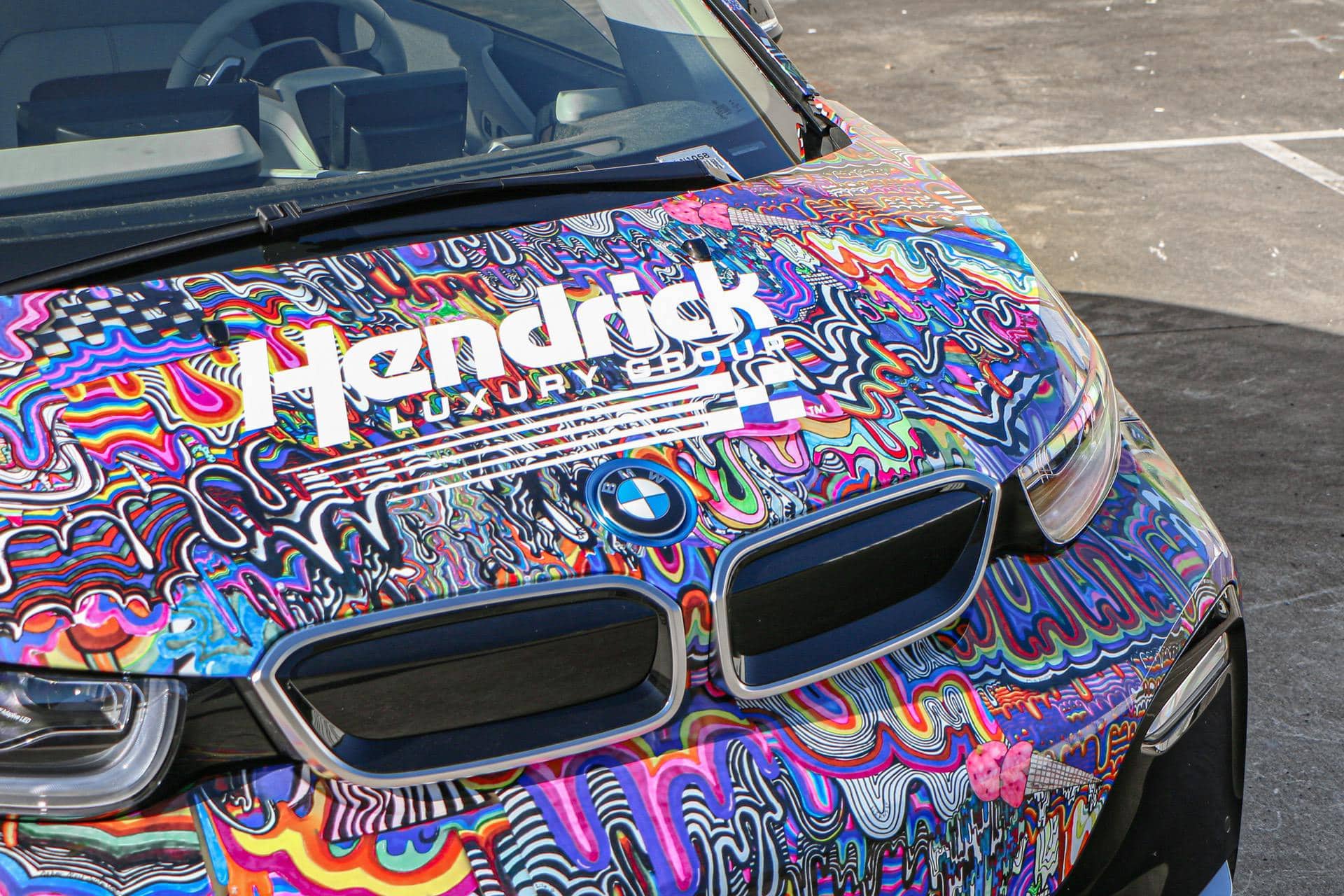 In Charlotte, North Carolina, the PD Parents’ Association, in conjunction with Hendrick Luxury Group, unveiled a stunning display of art meeting technology, all the while stressing the importance of sustainability. They used a BMW i3, which rolled onto campus, fully wrapped, with a drip-art designed by PD’s Middle School art students. Led by art teachers Lindsay Woog and Tyson Watson, 110 student collaborated and created designs inspired by contemporary LA-based artist, Jen Stark. Stark is best known for using psychedelic colors in patterns and drips that mimic intricate motifs found in nature.