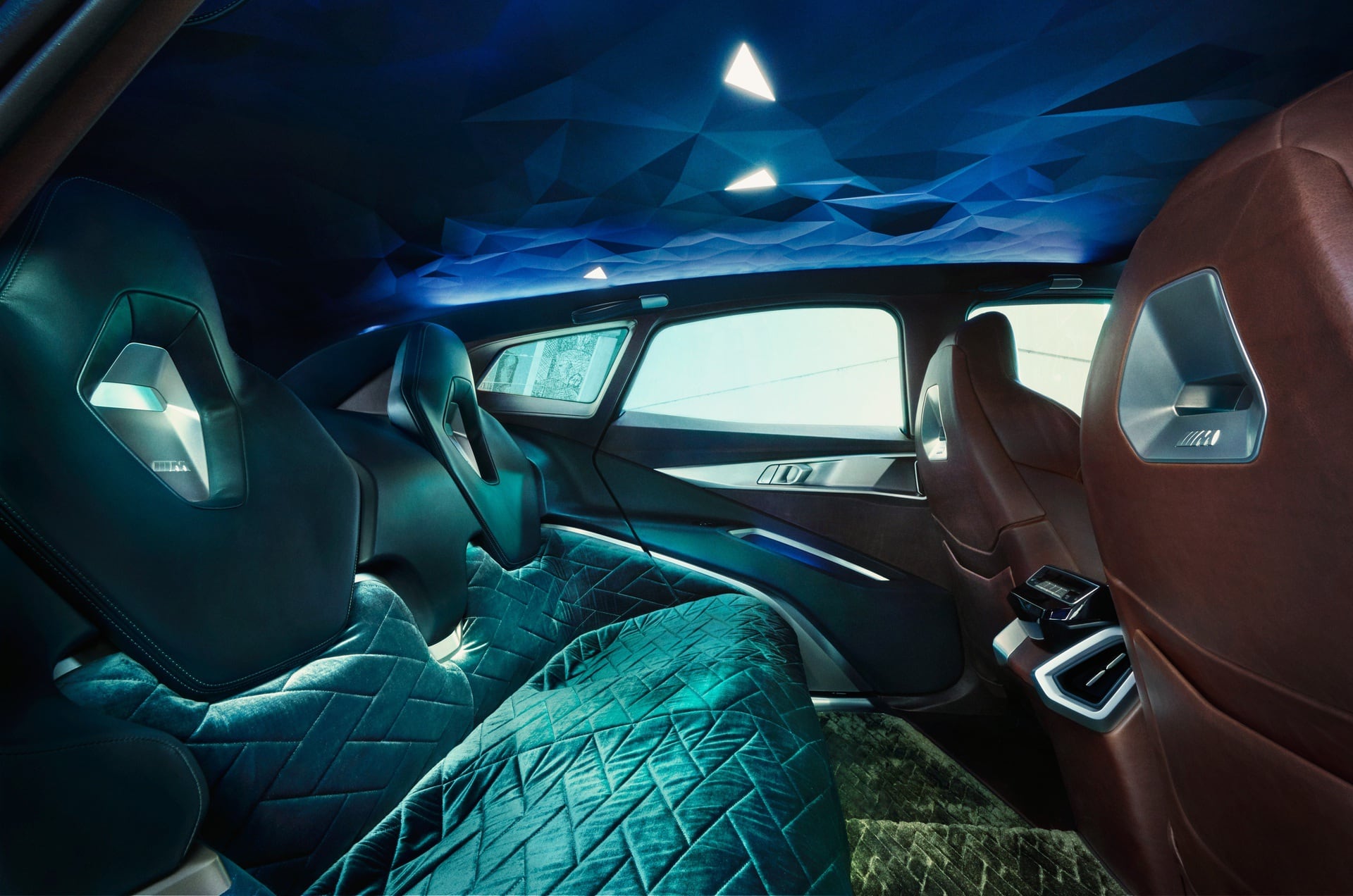 However, it’s the headliner that will steal the focus of interior passengers, with its three-dimensional prism pattern. It gives the cabin real depth and makes it feel more like a lounge, rather than an automobile from the back seat. Quite the turn from the typically driver-oriented M Division. The front seats offer that same driver-oriented style the M Division is known for but the back seat is more lounge-like. According to BMW CEO Frank van Meel, who we spoke to during a closed-room viewing of the XM, it has a “Dr. Jekyll, Mr. Hyde” feel to it.