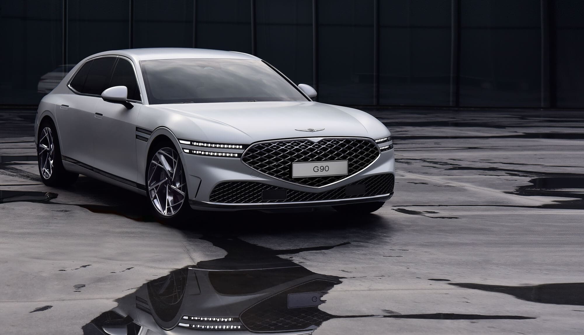 If you haven’t been keeping an eye on the company’s design language, all of its models follow a so-called “Two Lines” motif for the lights. Not only does the new G90 have split headlights and taillights, but even the wide turn signals mounted on the front fenders consist of two parallel LED bars. Speaking of the profile, Genesis is also giving its range topper door handles that remain flush with the bodywork when not in use.