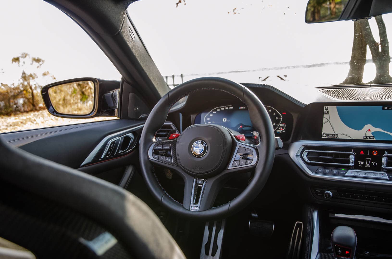 Fans are naturally worried that the addition of front driveshafts and driven front wheels will ruin the steering of the M4. However, fans needn’t worry, as the M4’s steering is every bit as immediate and direct as it is in the rear-drive car. Maybe, if I were to drive both cars back-t0-back, I could notice a bit of a difference but, if there were any difference at all, it’d be negligible.