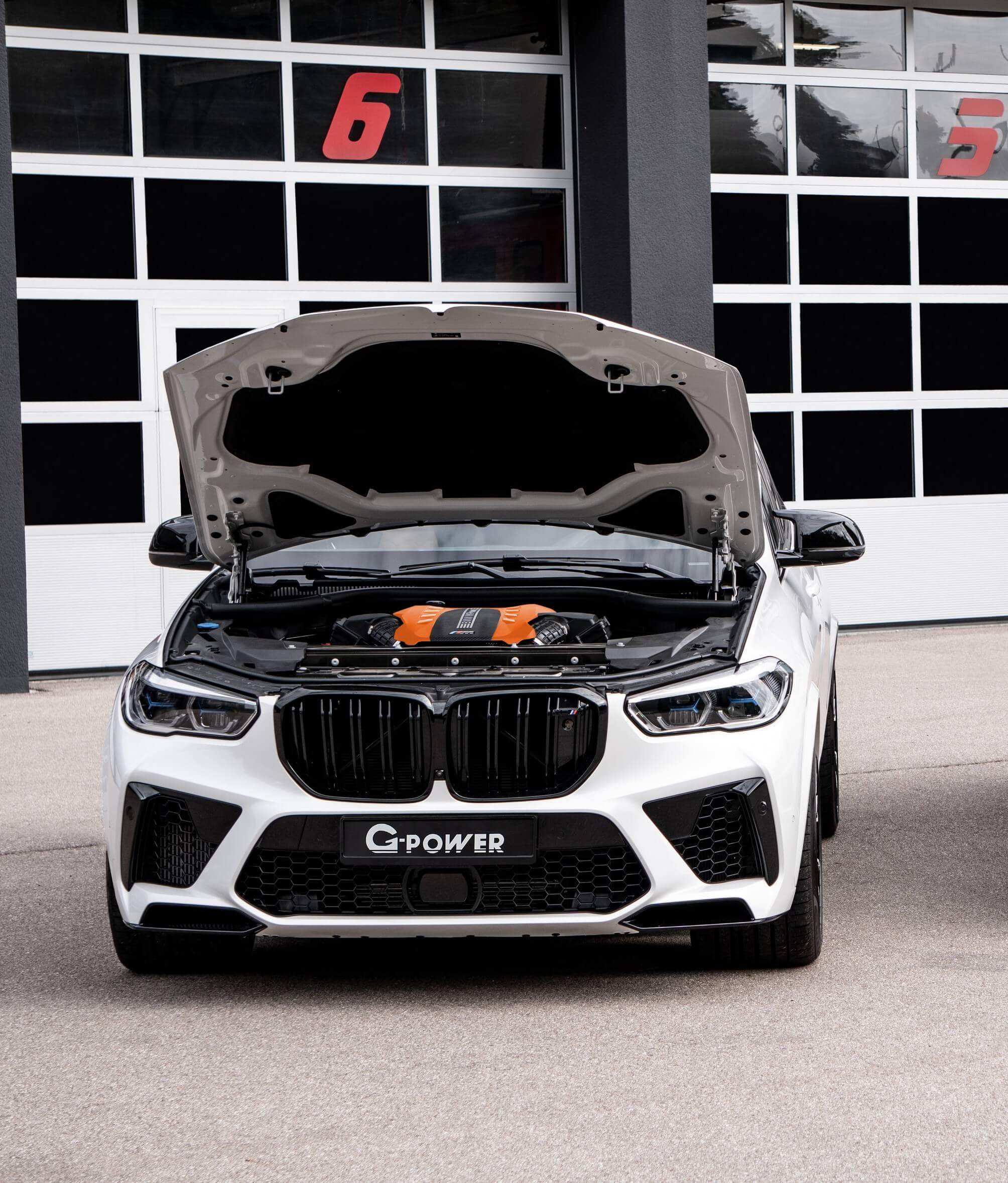 G-Power, which recently gave the latest-generation M3 and M4 a massive 700 hp for a top speed of 205 mph, can also fit the SUV with a set of 23-inch forged wheels in different styles. Otherwise, the vehicle looks stock, save for the partially orange engine cover and the badge on the center console lid denoting this isn’t your typical X5 M Competition.