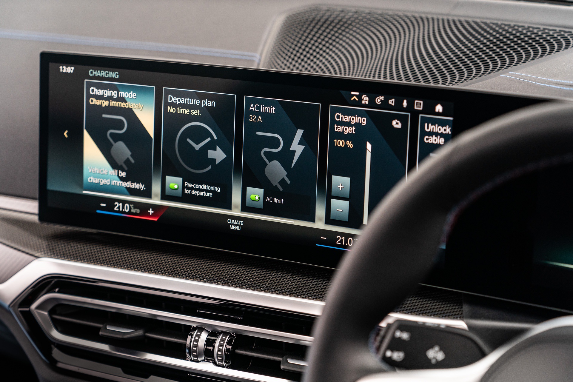 Despite the exciting colors and trim options, the BMW i4 stands out more due to its sheer performance. The BMW i4 comes in two flavors at launch; i4 40 and i4 M50. The former is rear-drive only with 335 horsepower and 317 lb-ft of torque. The latter is all-wheel drive, with dual-motors, that makes 536 horsepower and 586 lb-ft of torque. Both cars use the same 81.5 net-energy battery pack but the former has around 300 miles of range, while the latter has around 245 miles of range.