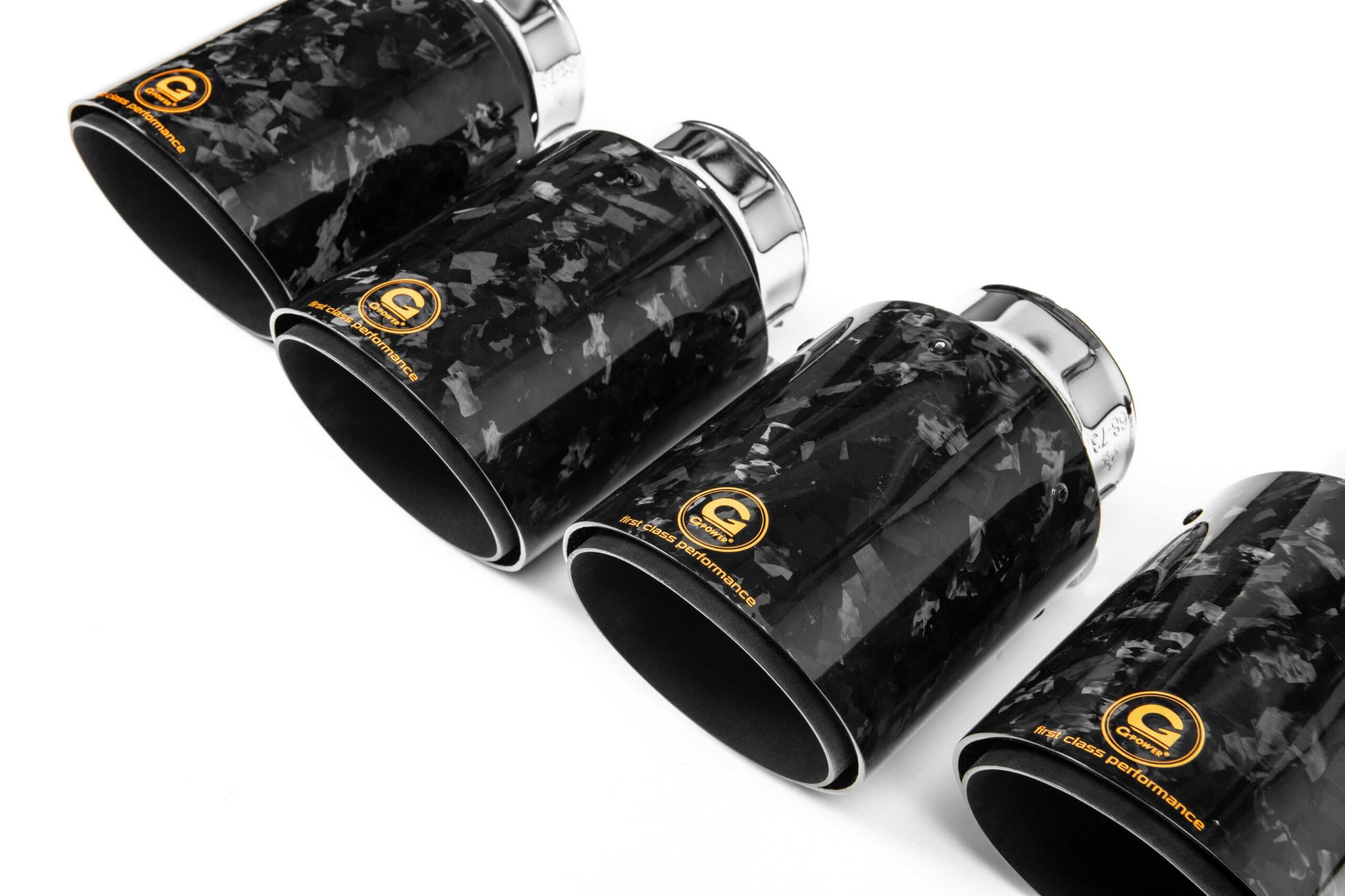 Stepping up to the tuner’s GP-780 kit adds upgraded downpipes to unlock a meaty 780 hp and 700 lb-ft (950 Nm) from the ubiquitous S63 engine. The cars featured in the official gallery have the GP-820 kit with all the previously mentioned mods, plus beefier turbochargers and 100-mm quad exhaust tips in carbon or forged carbon. As the name of the package suggests, the V8 is tuned to 820 hp and a mountain-moving 738 lb-ft (1,000 Nm).