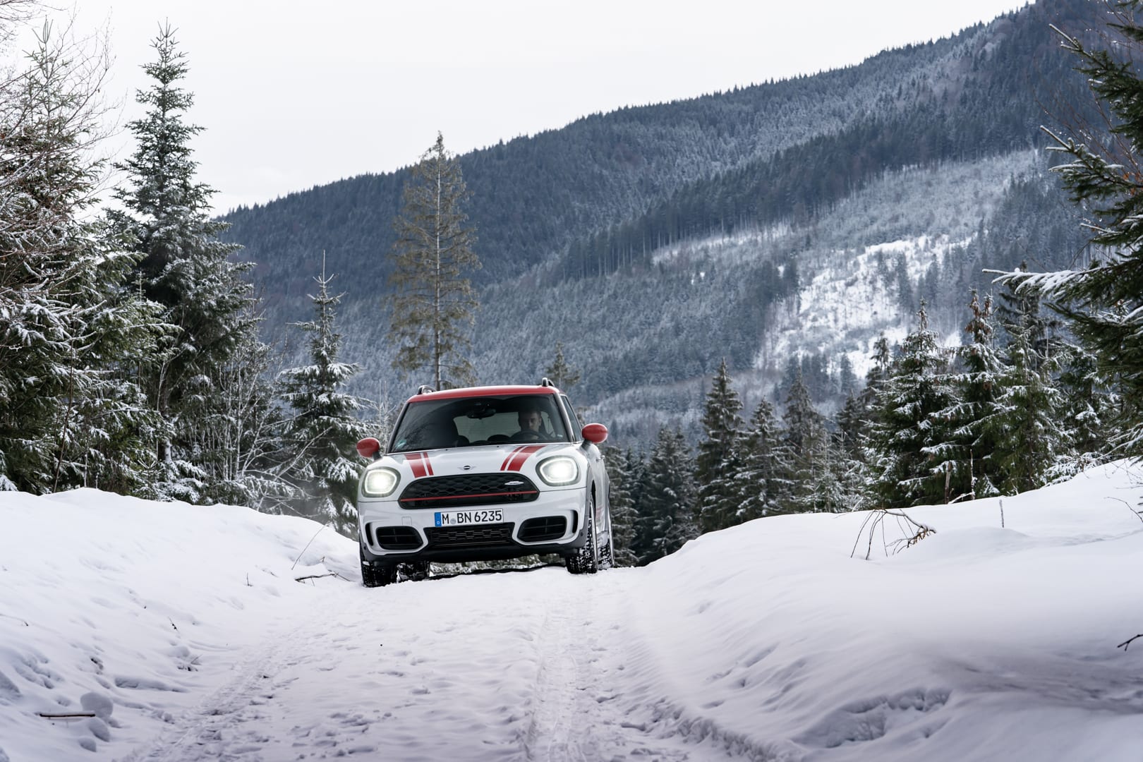 On a tight, twisty, paved road, the MINI Countryman JCW isn’t exactly thrilling. It’s a bit too big, too heavy, and too grippy to be fun. However, remove the tarmac, reduce the grip levels, and add some fresh powder and the MINI Countryman JCW actually becomes quite fun.