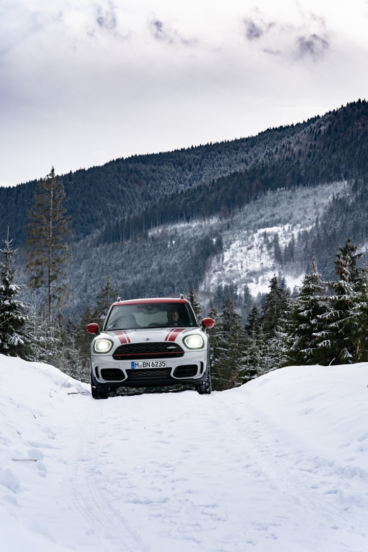 Its taller ground clearance helps, too. While its ride height and size might upset MINI purists, who’d prefer a classic Mini with the ground clearance of a skateboard, it’s quite handy on some snowy Alpine trails. If you want, and you probably should indulge, the MINI Countryman John Cooper Works is available with a variety of roof rail accessories; roof racks, roof boxes, bike racks, and more. On some snowy roads, such accessories would help make the trails a bit easier, in case you get stuck.