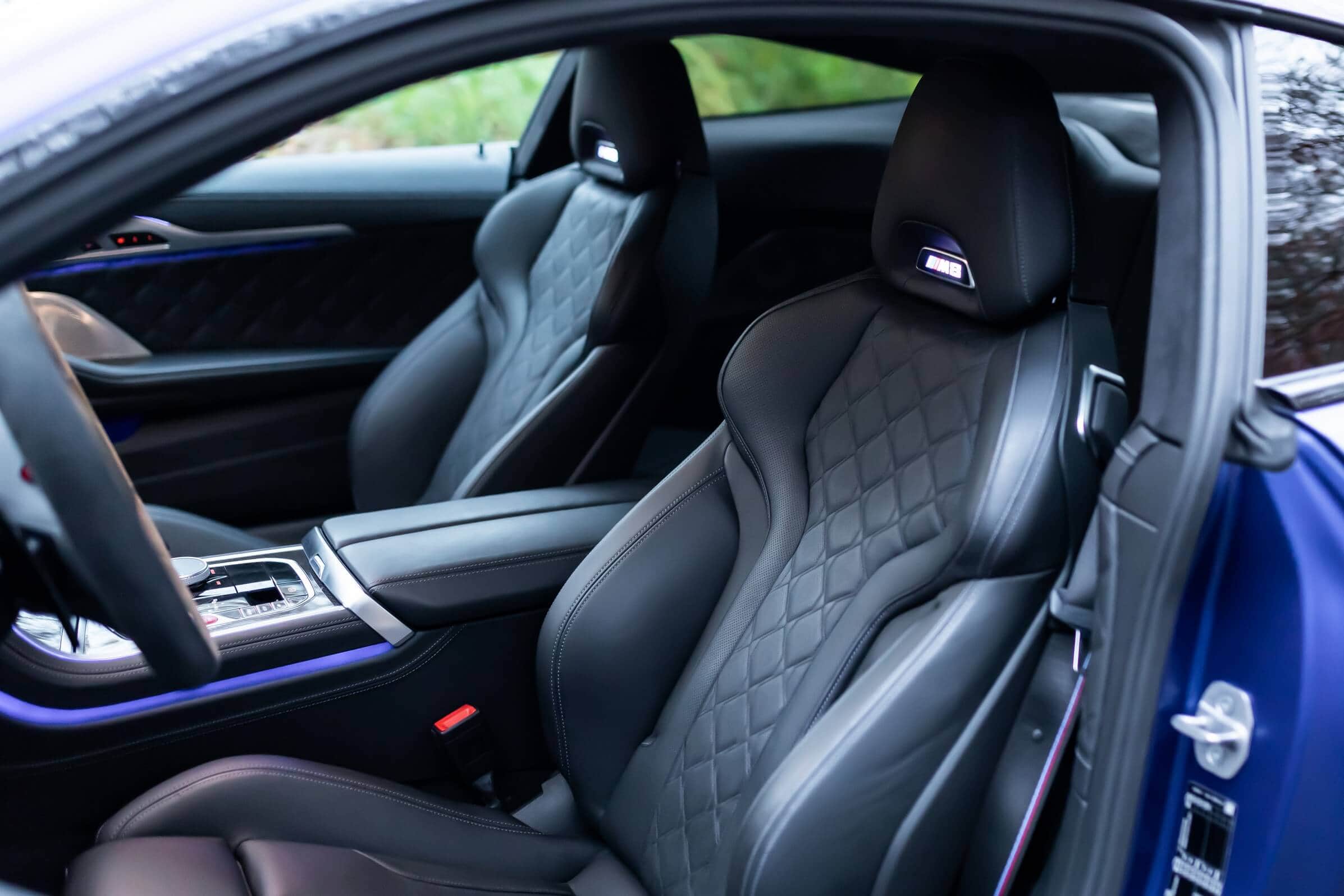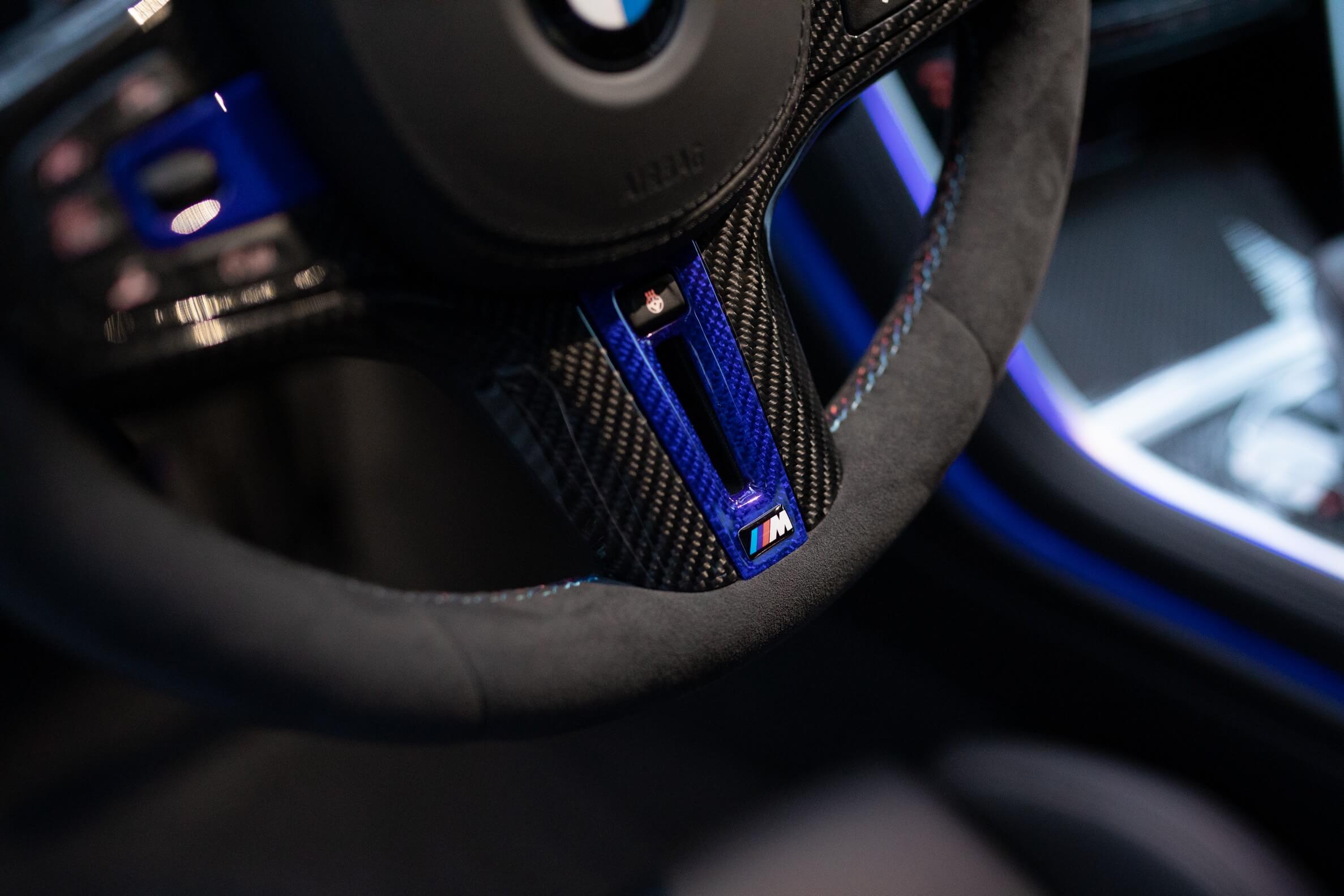 What may look like a BMW Individual Frozen Blue paint job is actually Manhart’s own matte blue finish for the high-performance coupe. The striking appearance is accentuated by the body-colored custom alloy wheels measuring 21 inches at both front and rear axles. A black decal set spruces up the M8’s exterior furthermore, as does the blacked-out kidney grille.