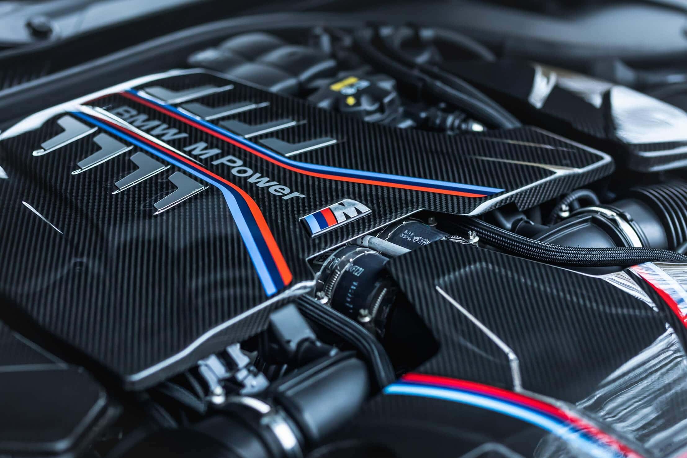 The BMW M8 Competition Coupe customized by the German tuner also has a new carbon air intake and a stainless-steel exhaust featuring quad 100-mm tips clad in carbon fiber. Where legal, Manhart will happily remove the gasoline particulate filter and install race downpipes to allow the V8 to breathe better and sound more aggressive.