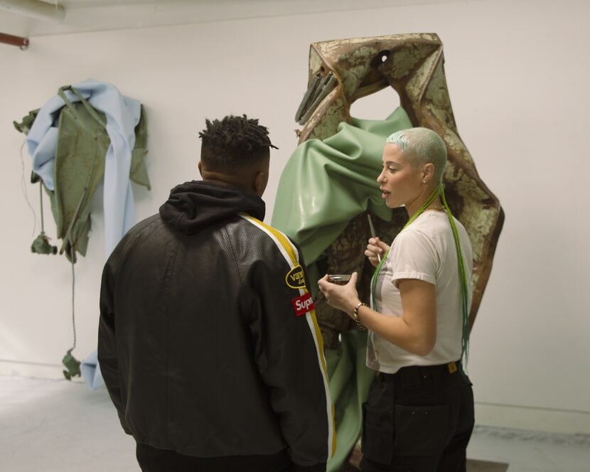 On this occasion, BMW Group Culture also worked with Kennedy Yanko on a unique sculpture. The Brooklyn-based artist spent some time in Munich with the BMW design team to learn more about the process of designing, engineering and building a car. Kennedy tells us that she was fascinated by the the creative process within BMW, and how, for example, designers look at materials, surfaces or painting applications. Some of those conversations sparked some ideas which can be reflected in her work displayed in Miami. The sculpture was featured in the gallery under the name “Intrinsic Sage” featuring paint skin and metal.