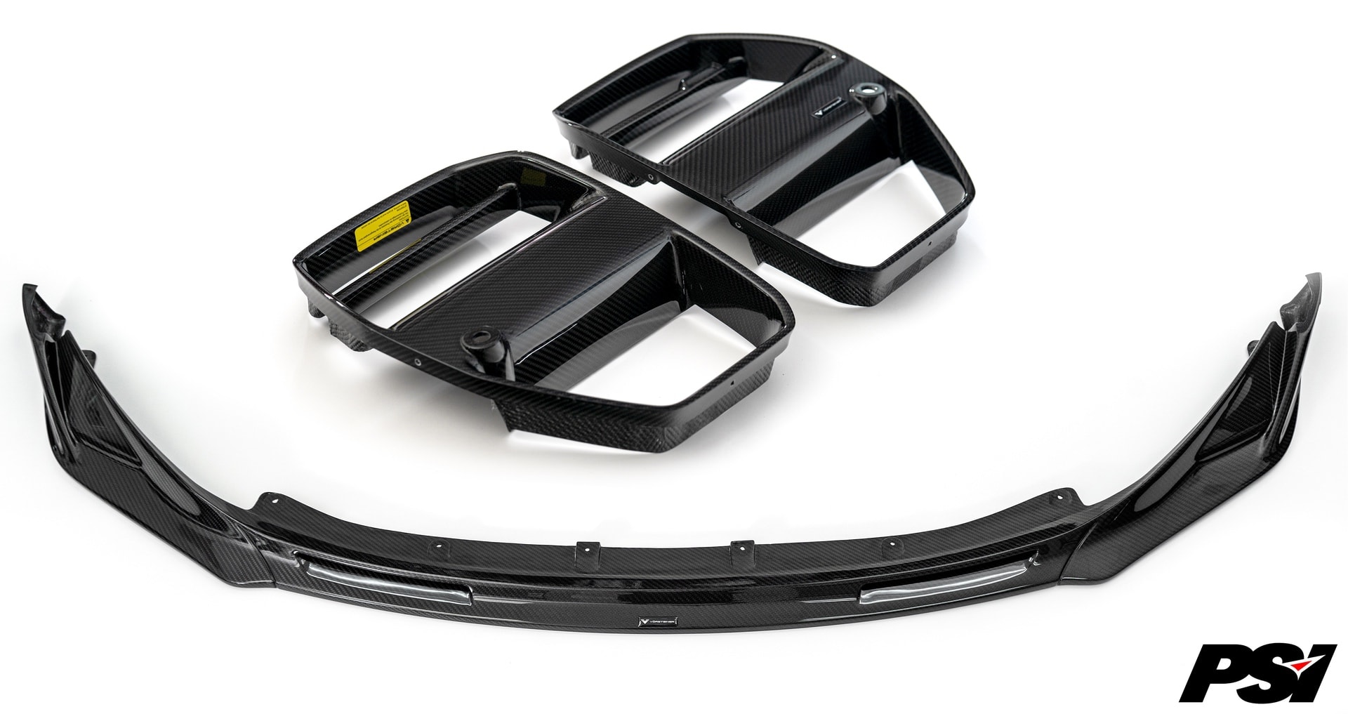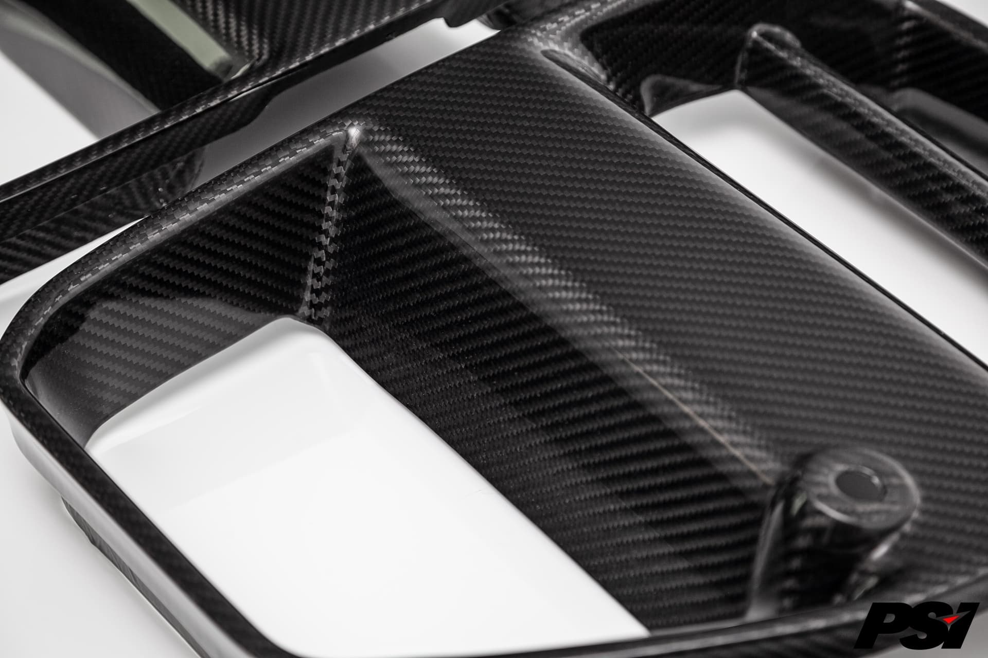 Now offered by PSI, this new Vorsteiner kit consists of three main components; the VRS Aero carbon fiber front spoiler, the VRS Aero carbon fiber decklid spoiler, and the VRS Aero carbon fiber front grille/ VRS Aero ABS front grille. The decklid and front spoilers are pretty typical aero bits, adding some more aggression and maybe some increased downforce. However, the new grille, available in either carbon fiber or ABS plastic, is interesting.