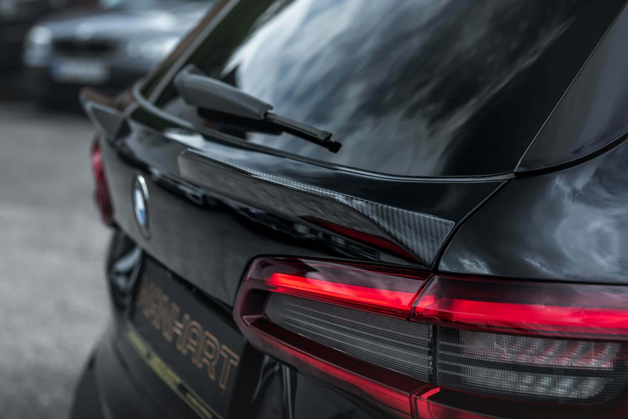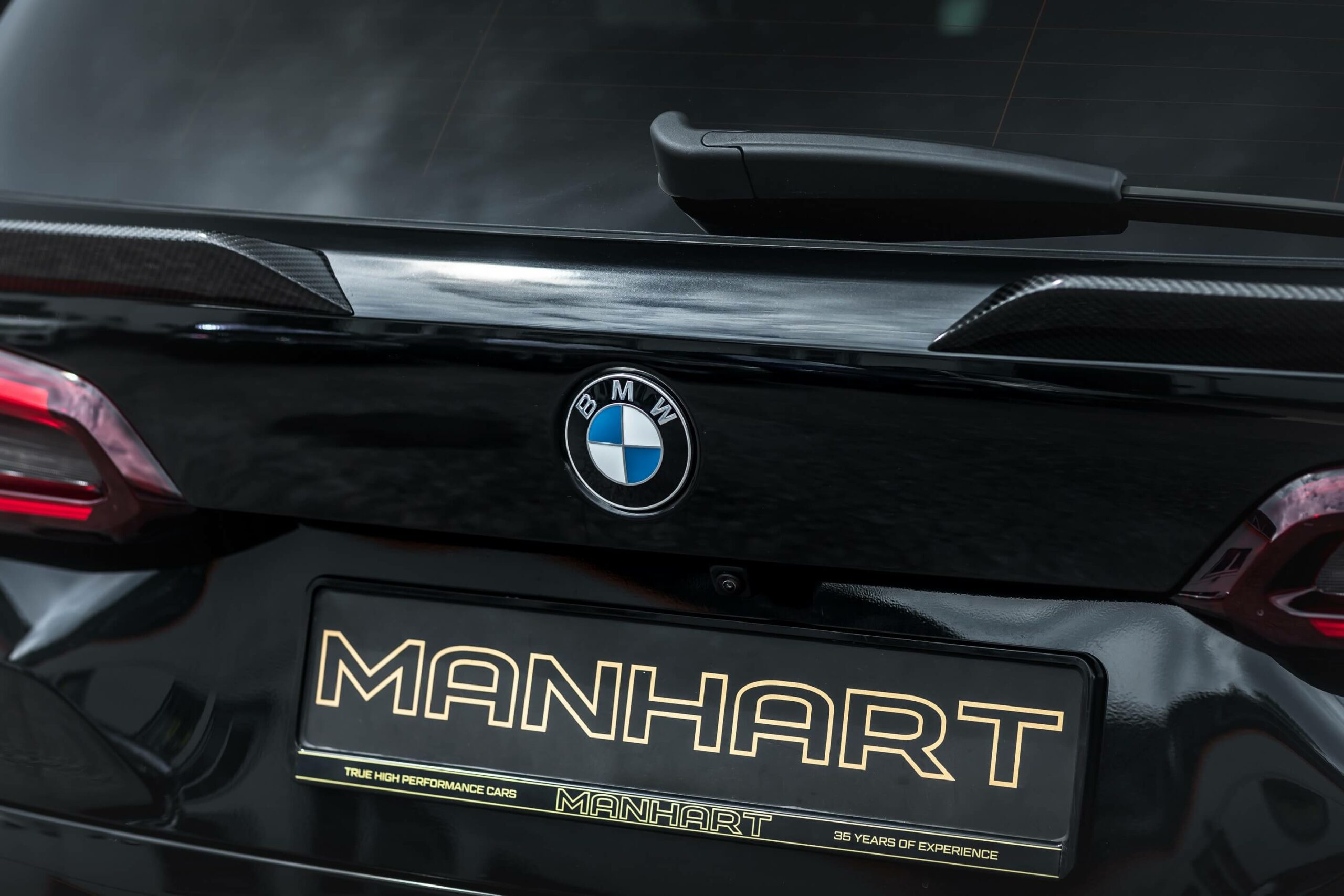 In order to match the added oomph of the uprated V8, Manhart fits the X5 M Competition with a meaner body kit. The carbon fiber add-ons include a front spoiler lip and a rear diffuser with an F1-like center light. Also noticeable are chunky side skirts, hood vents as well as a two-piece spoiler mounted on the tailgate.