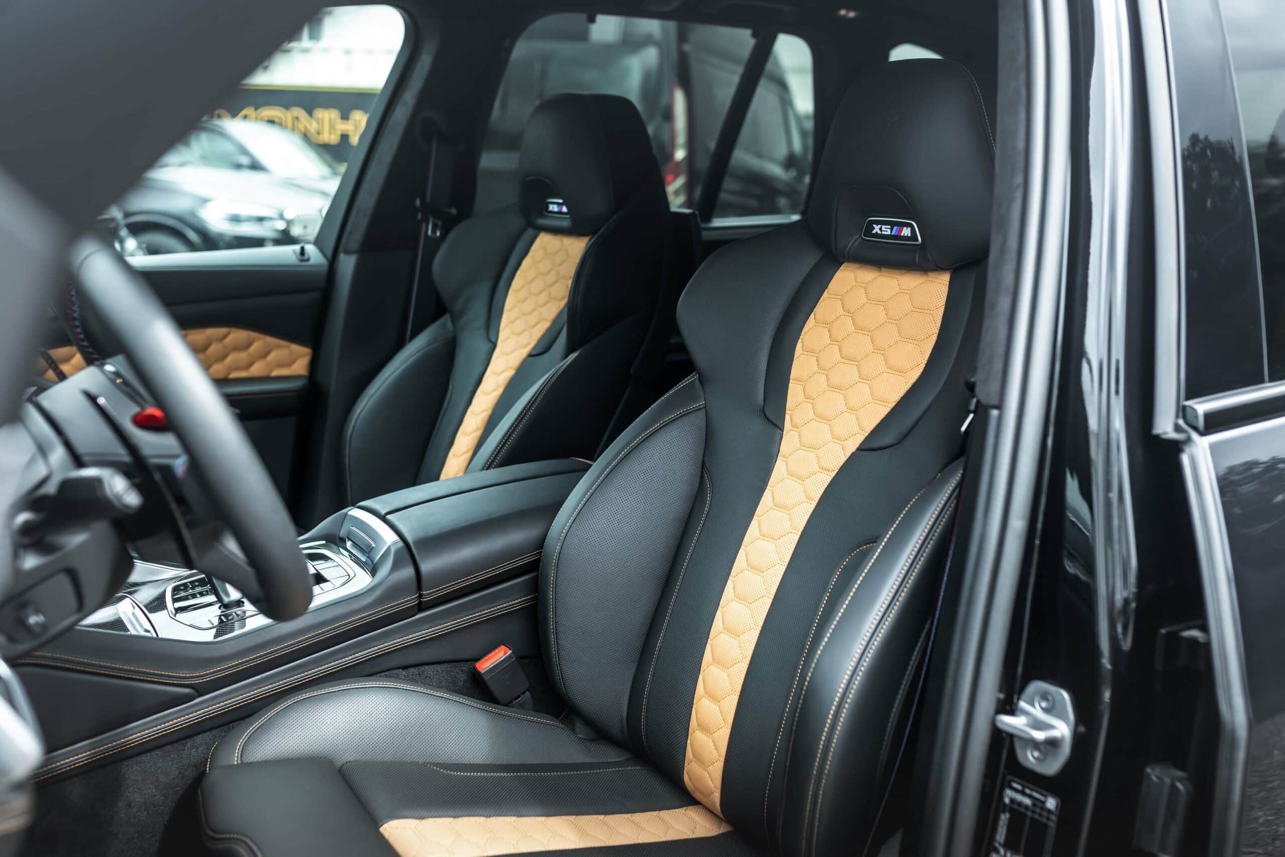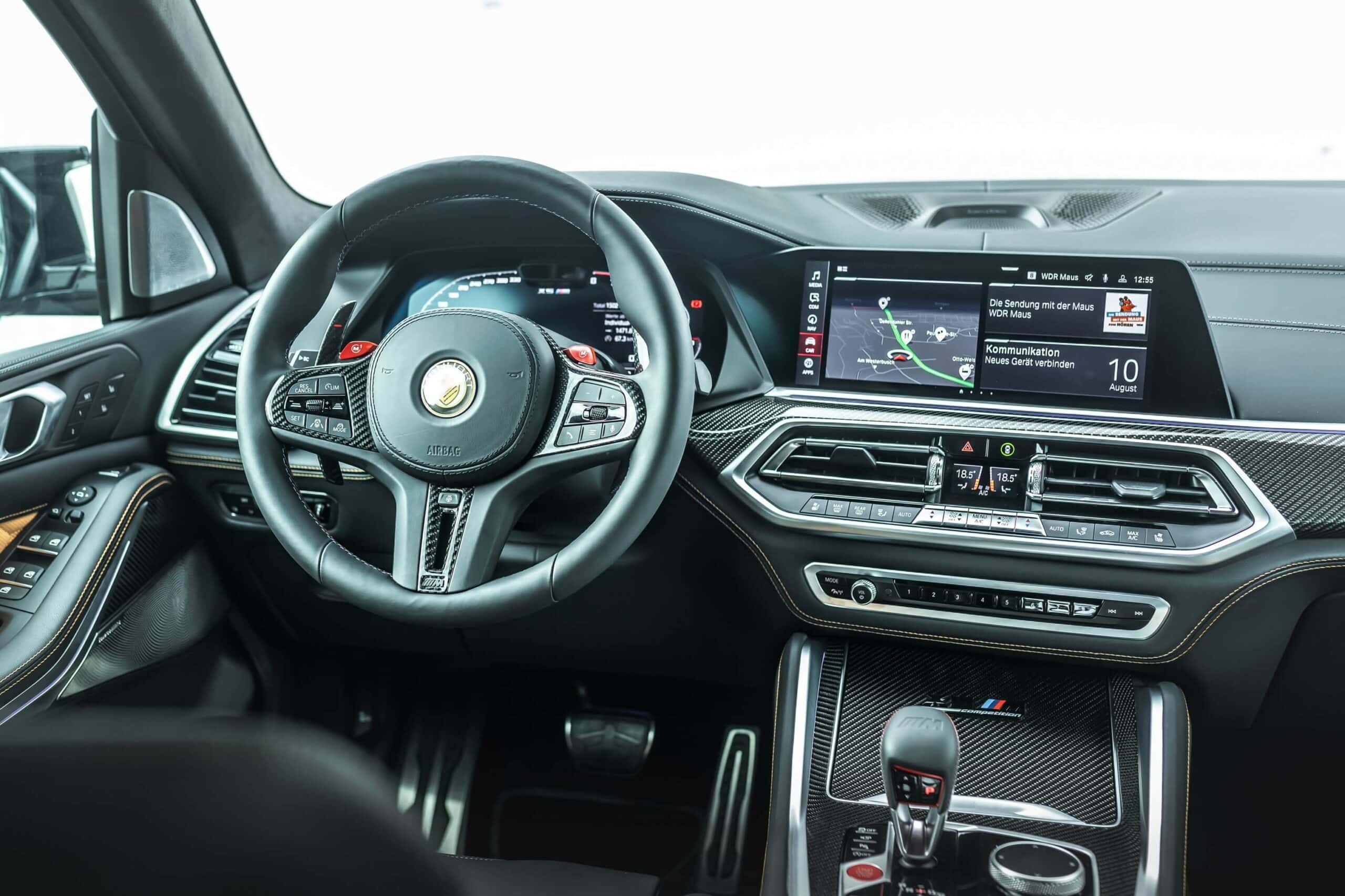 The X5 M Competition featured here by Manhart retains the original brakes, but the German tuner will be happy to upgrade them to a custom set. Also available at an additional cost, H&R suspension springs bring the speedy SUV closer to the road for a more aggressive stance. The OEM wheels have made way for a 22-inch set with a gold rim decoration. Speaking of which, contrasting accents are also noticeable at the front and rear fascias.