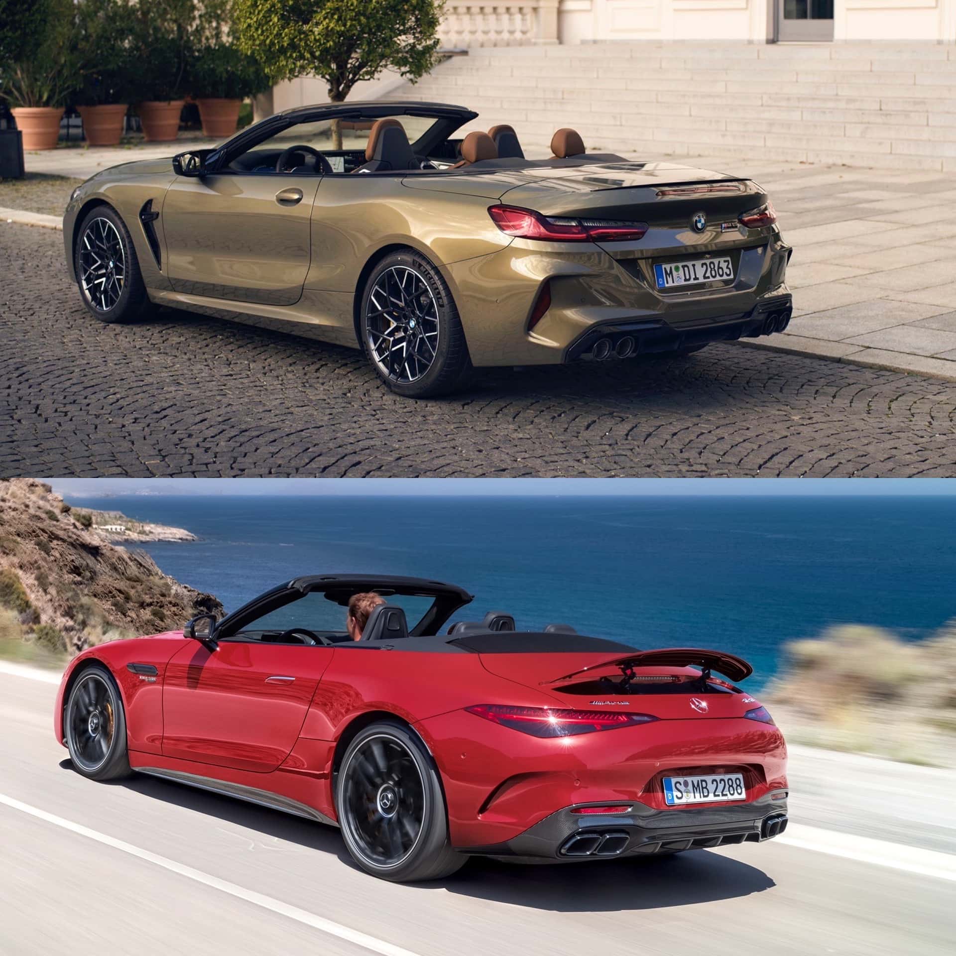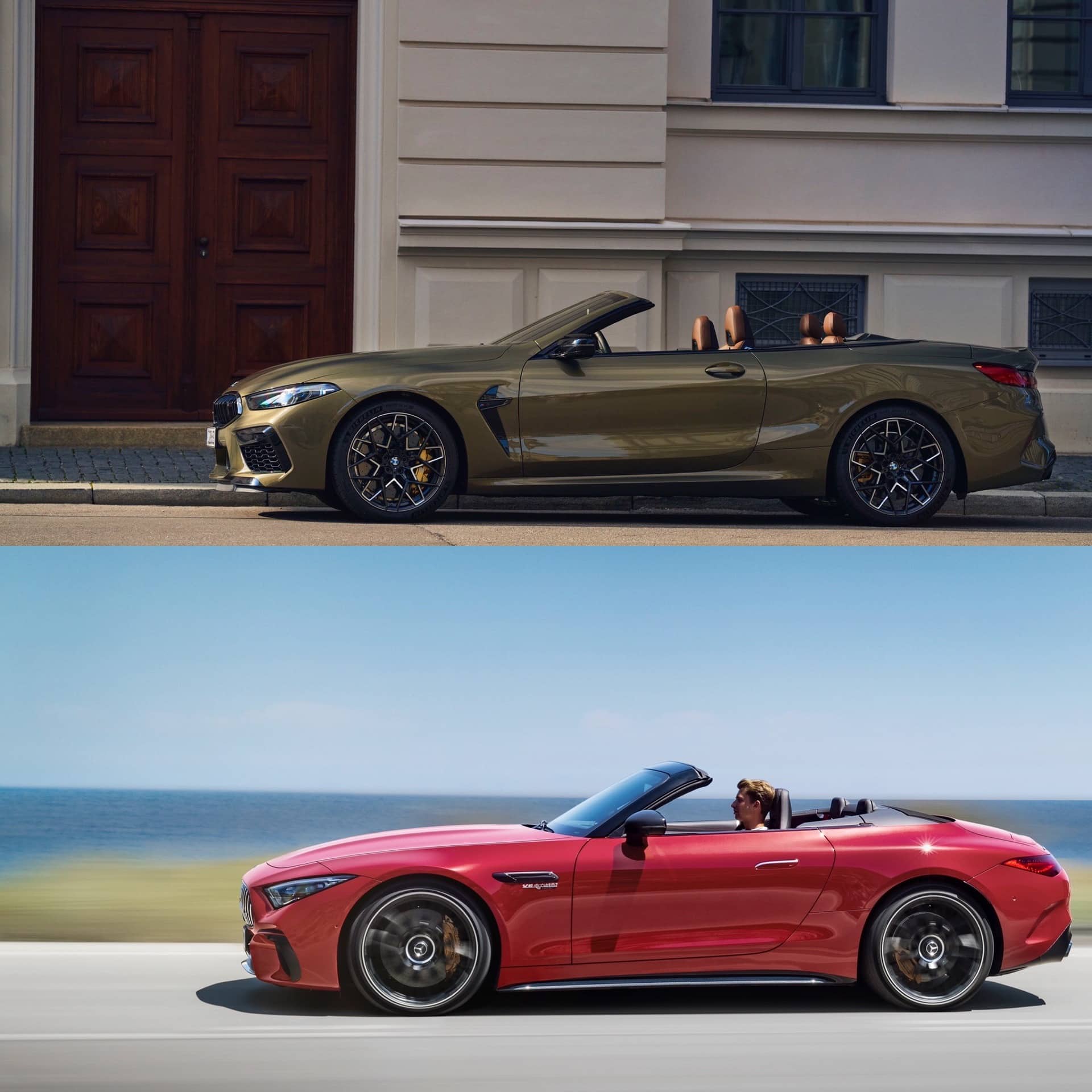 Again, both cars look great from the side. The Convertible is the worse looking version of the M8 but, with the roof down, it’s still a stunner. The Mercedes-AMG SL-Class is great looking from the side, too, but I think I’m gonna have to go BMW on this one.