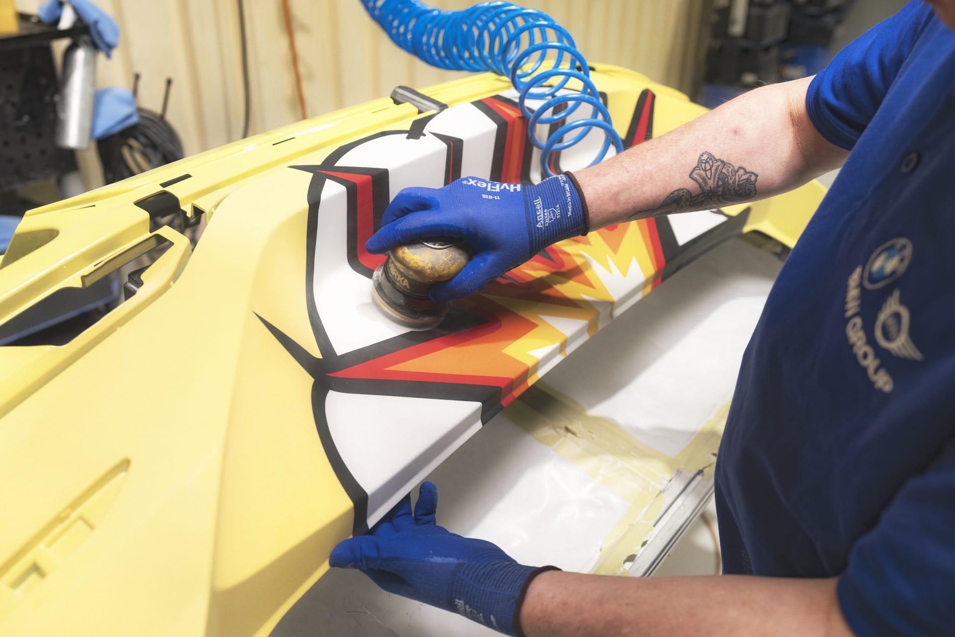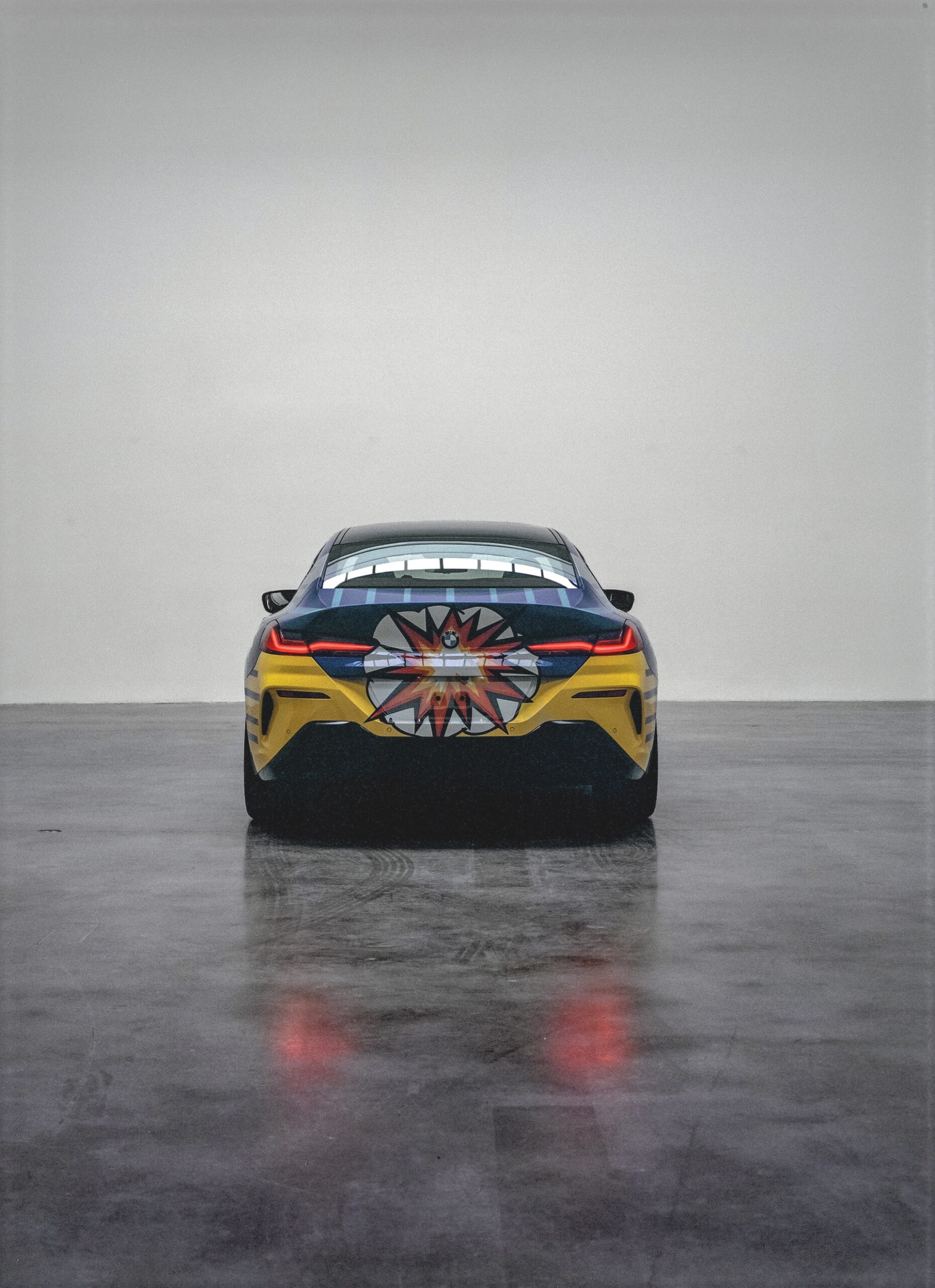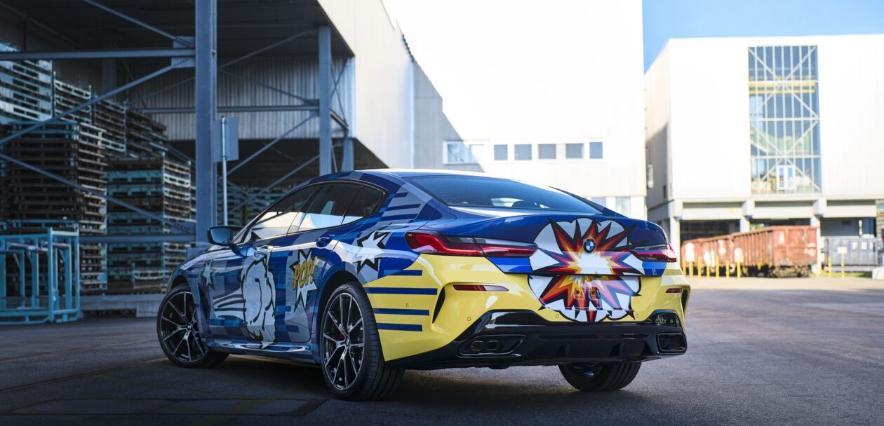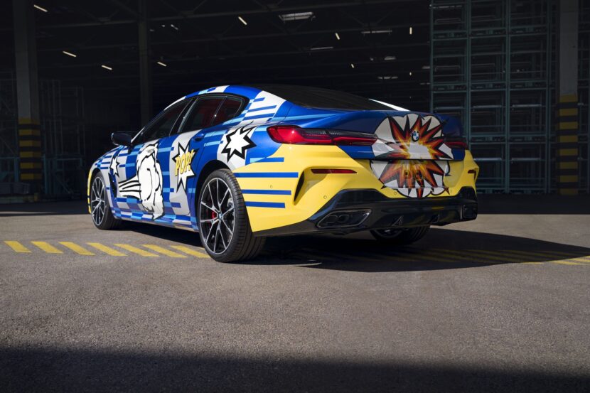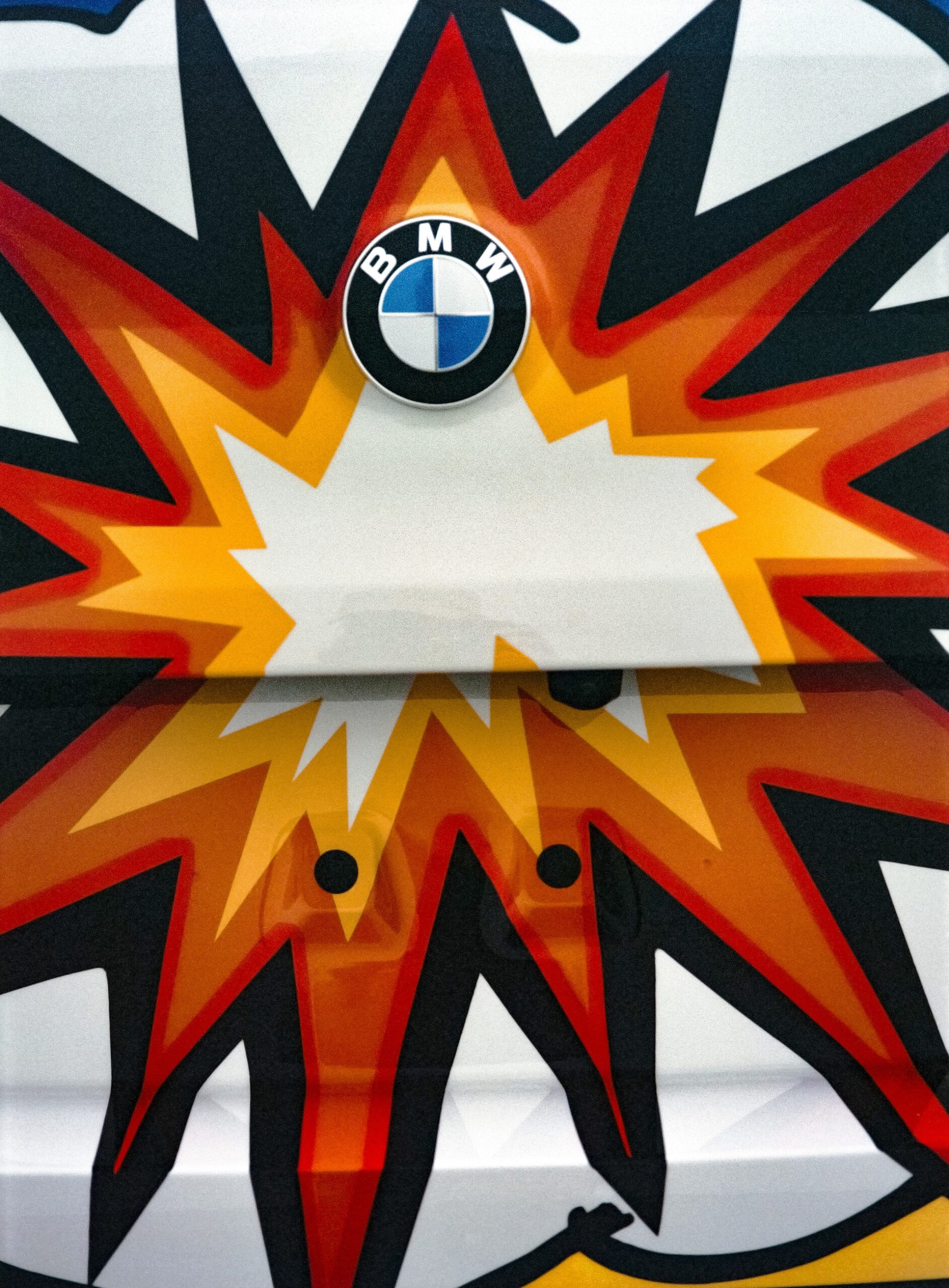 The BMW 8 X JEFF KOONS is easily one of the most fun collaborations between BMW and an artist, as it features bright, bold colors and expressions of power and speed, in a fun superhero comic motif. The “Pop!” symbol and cartoon explosions, along with “vapor thrust” make it look like it’s at speed in a comic book. The bright blue and yellow at the back end evoke images of Koons’ other BMW project, the E92 M3 GT2 Art Car that raced at Le Mans.