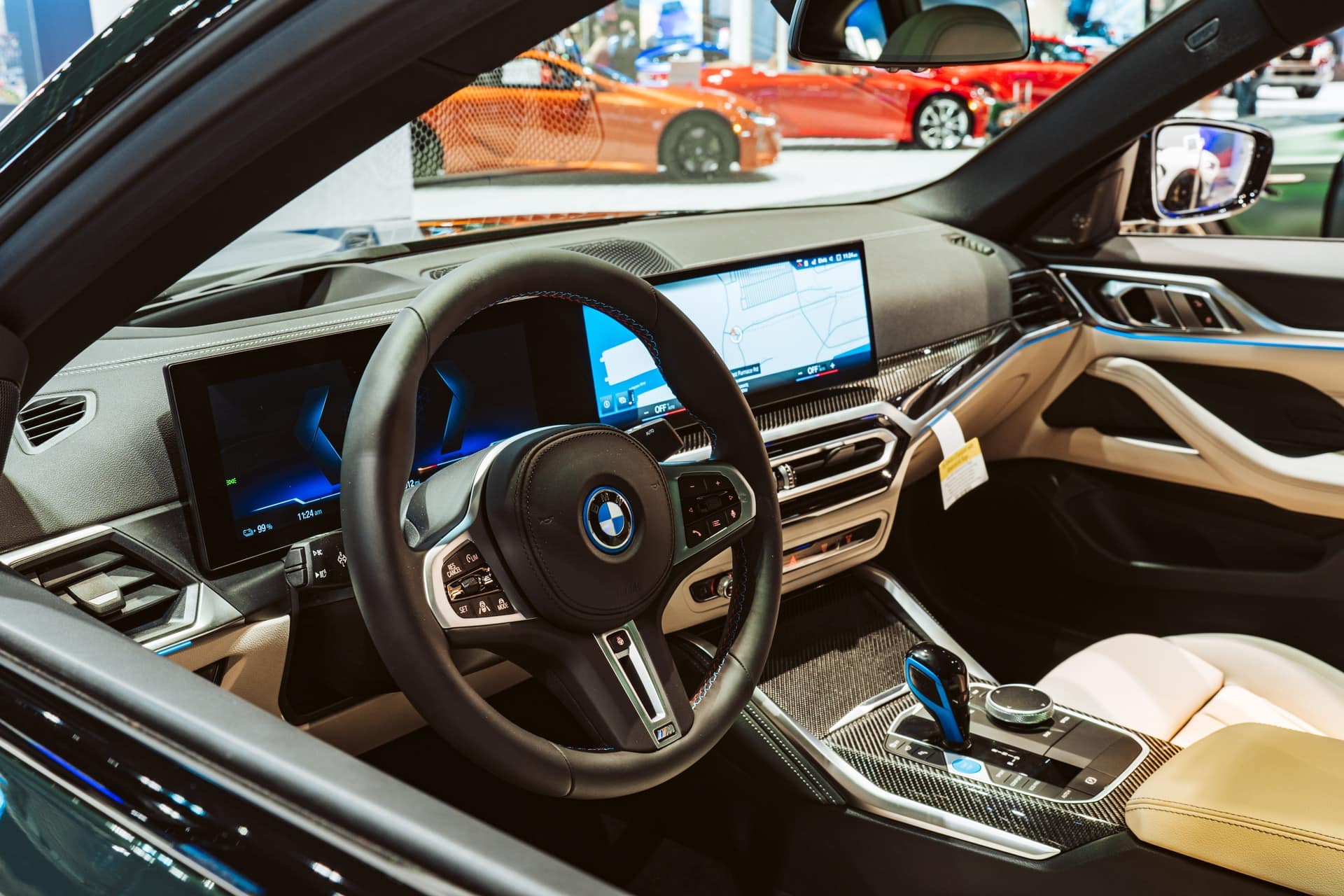 Naturally, the color and trim options are equally important in a premium electric vehicle. When it comes to the exterior paint, the BMW i4 comes with a wide variety of colors. BMW i4 will be offered with the following color options: Alpine White, Mineral White, Black, Black Sapphire, BMW Individual Dravit Grey, Skyscraper Grey, Sunset Orange, Tanzanite Blue, San Remo Green, Aventurine Red, Brooklyn Grey and Frozen Portimao Blue. Some of those colors are specific to a model line – i440 vs. M50 – or even distributed by packages.