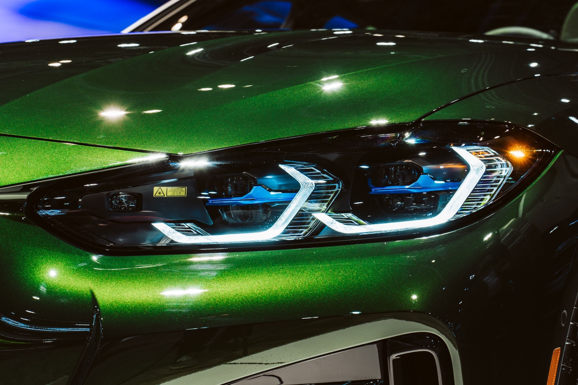 The special green is vibrant but not too flashy, and gives the BMW i4 a bit of an exotic look. In sunlight, the bright green metallic paint shines, giving it some real life. However, in shade, it looks dark and moody. It has a great duality that makes it attractive for both bright and sunny locations but also for city nightlife.