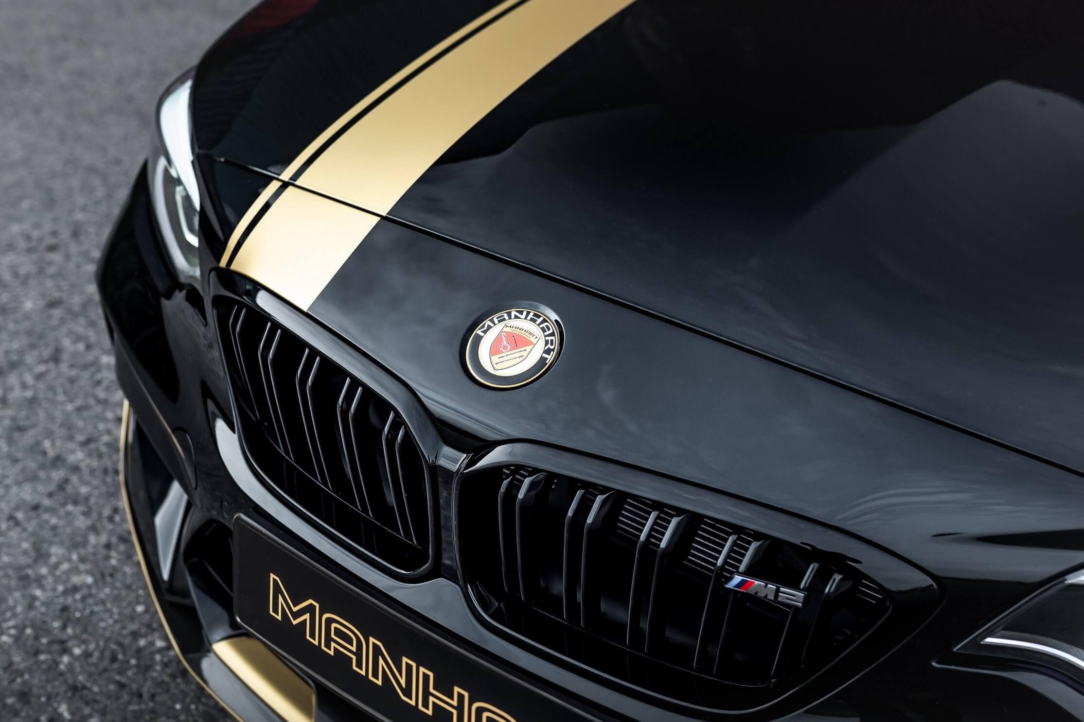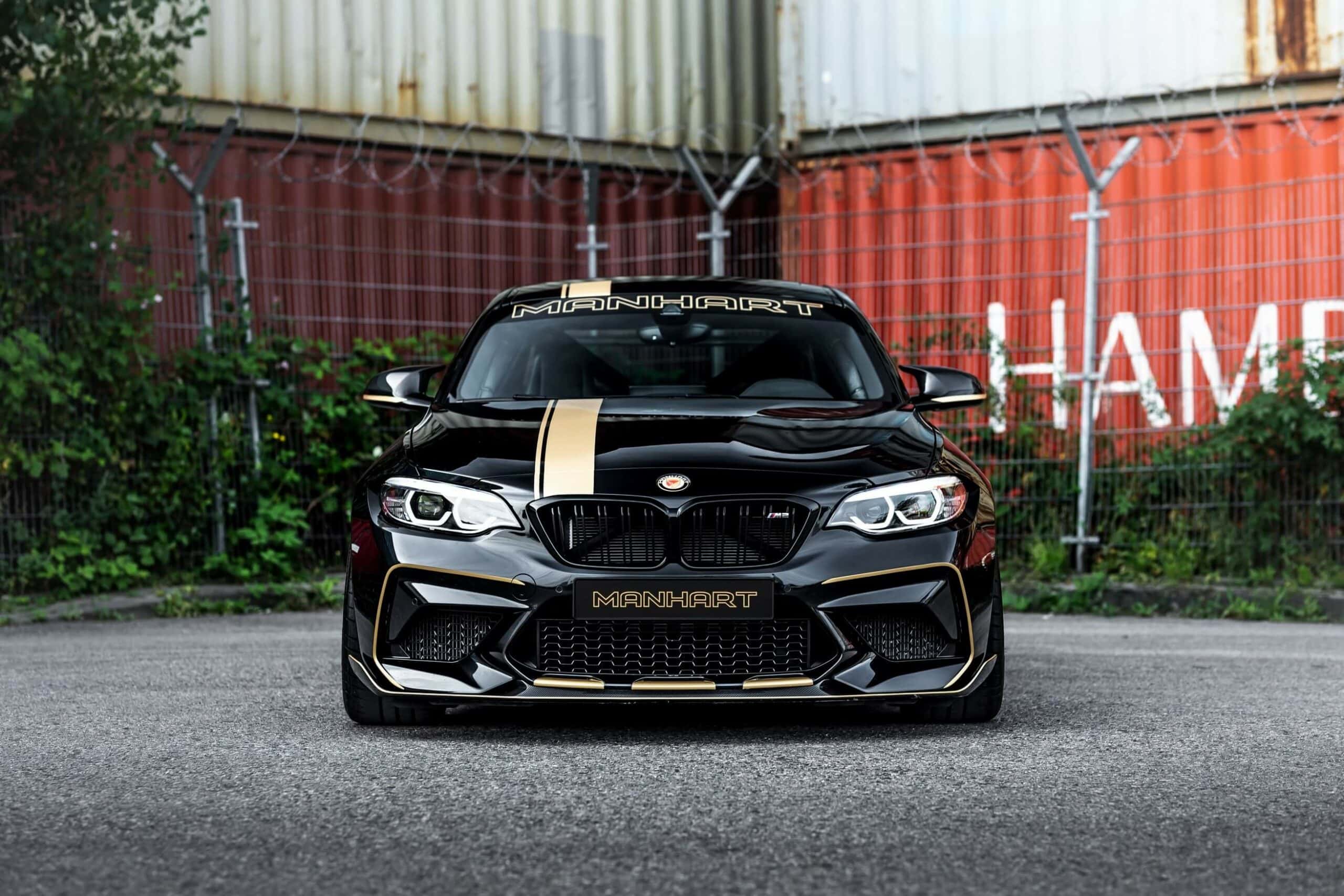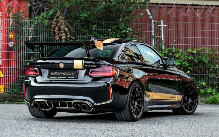 Other notable tweaks are a three-way KM coilover suspension and aerodynamic elements from the M Performance catalog. These include the front spoiler, side skirt attachments, and rear diffuser – all of which are from carbon fiber. Manhart changed the hood with a custom panel made from aluminum and took the rear wing from the M235i Racing. The tuner’s typical black and gold livery adorns the vehicle.