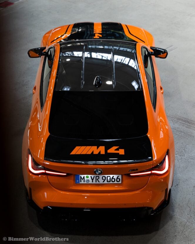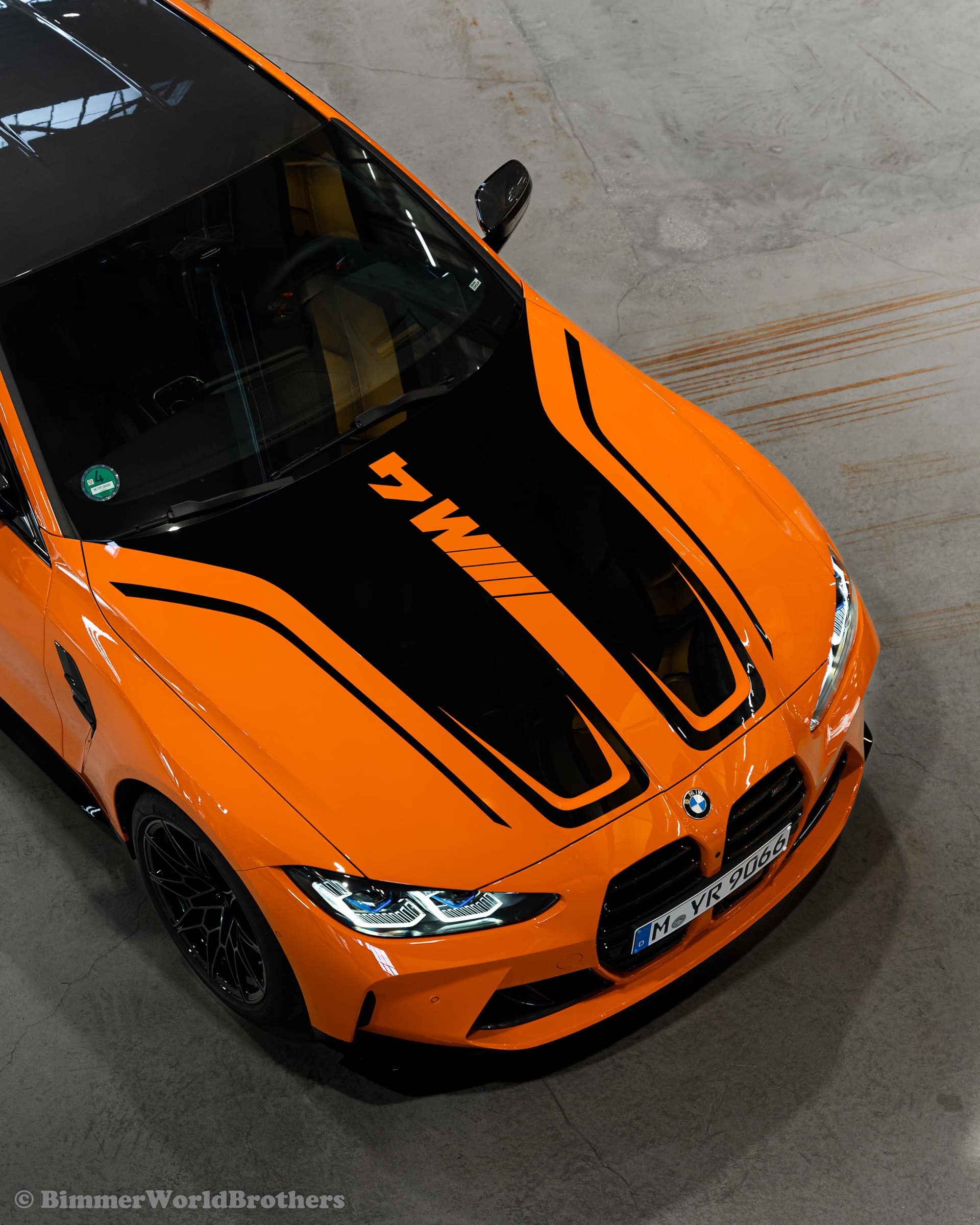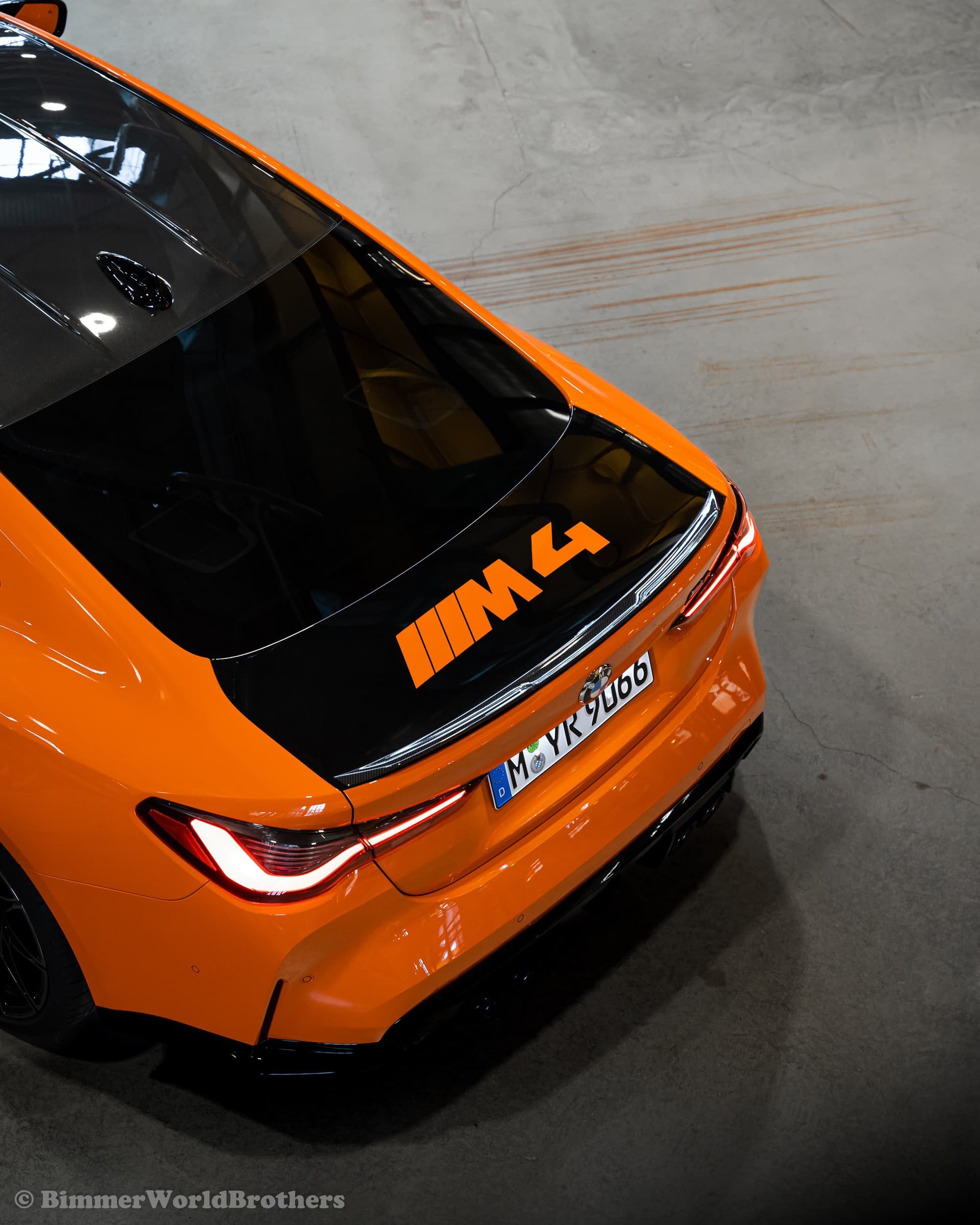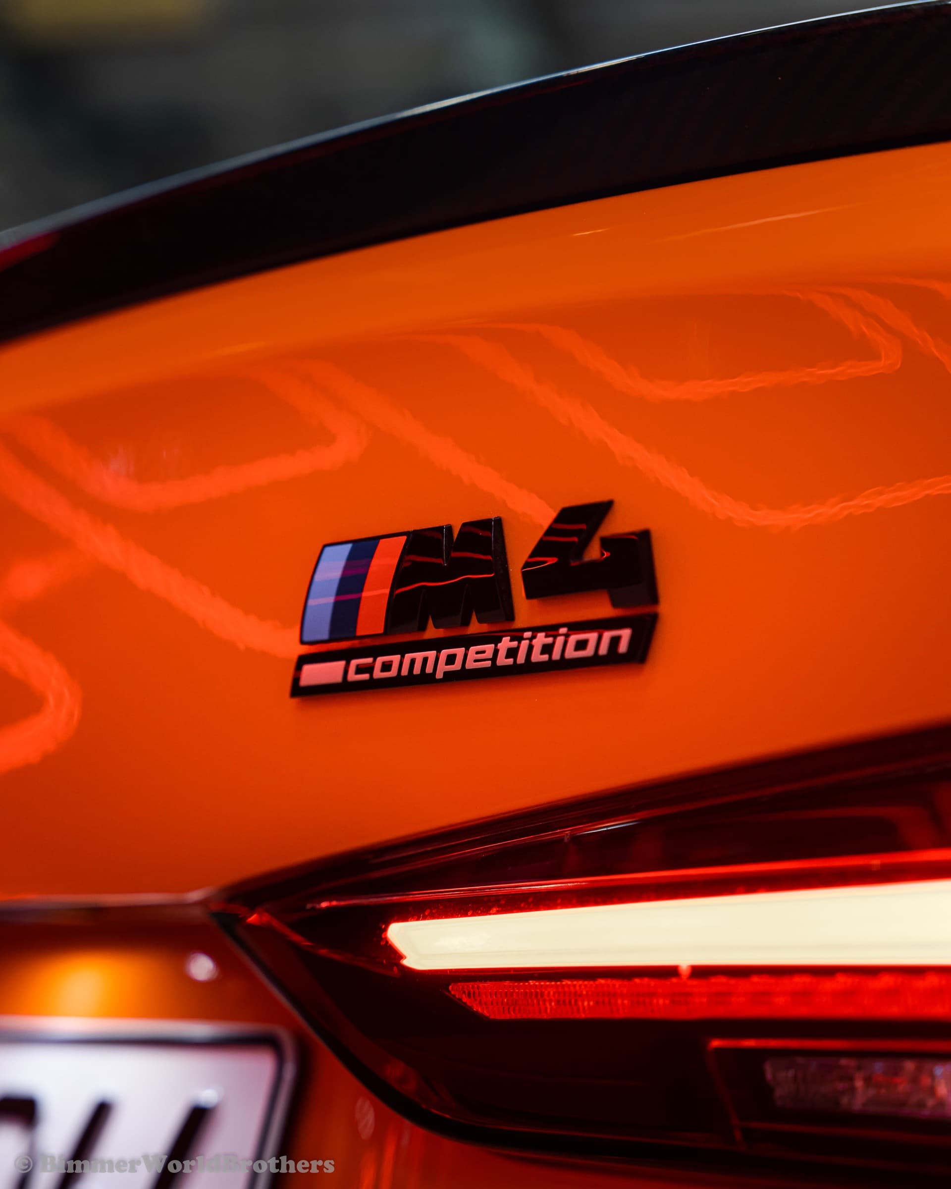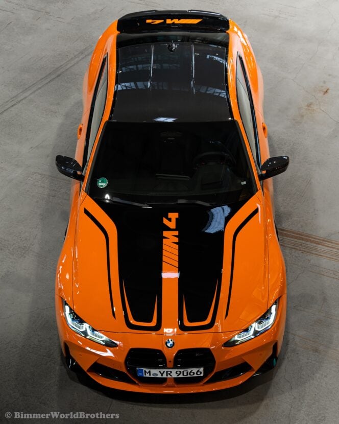 If the new BMW M4 wasn’t flashy enough for you, then this particular model has you covered. Hailing from BMW Muenchen dealership, this BMW M4 Competition in Fire Orange II is certainly an eyecatcher. And not only thanks to its vibrant orange, but also because it features a unique paint job – the Fire Orange II is paired with black to form an interesting color combination. Some may think that this is a wrap, but that couldn’t be further from the truth. Instead, this is an actual paint job.