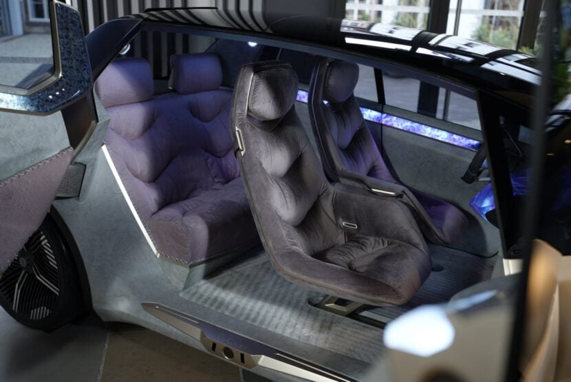Inside, the futuristic concept features interactive glowing crystal pieces on the dashboard that have nerve-like lighting elements. Its seats are thick and plush, made from recycled fabric. It even features a line of the aforementioned crystal material that accentuates the car’s Hofmeister Kink from the inside.