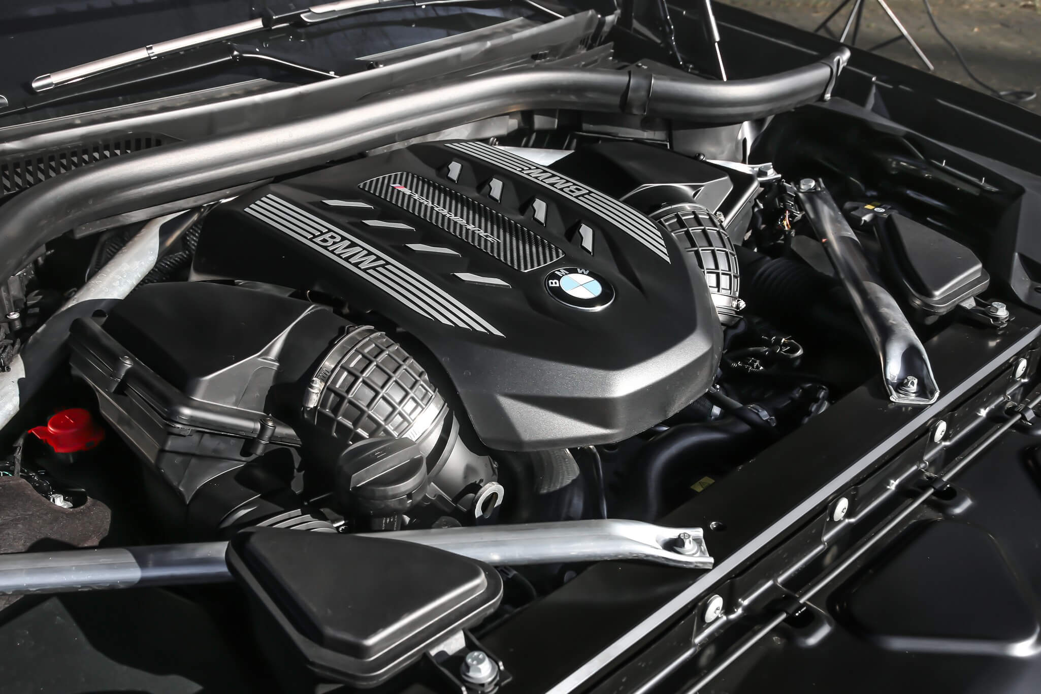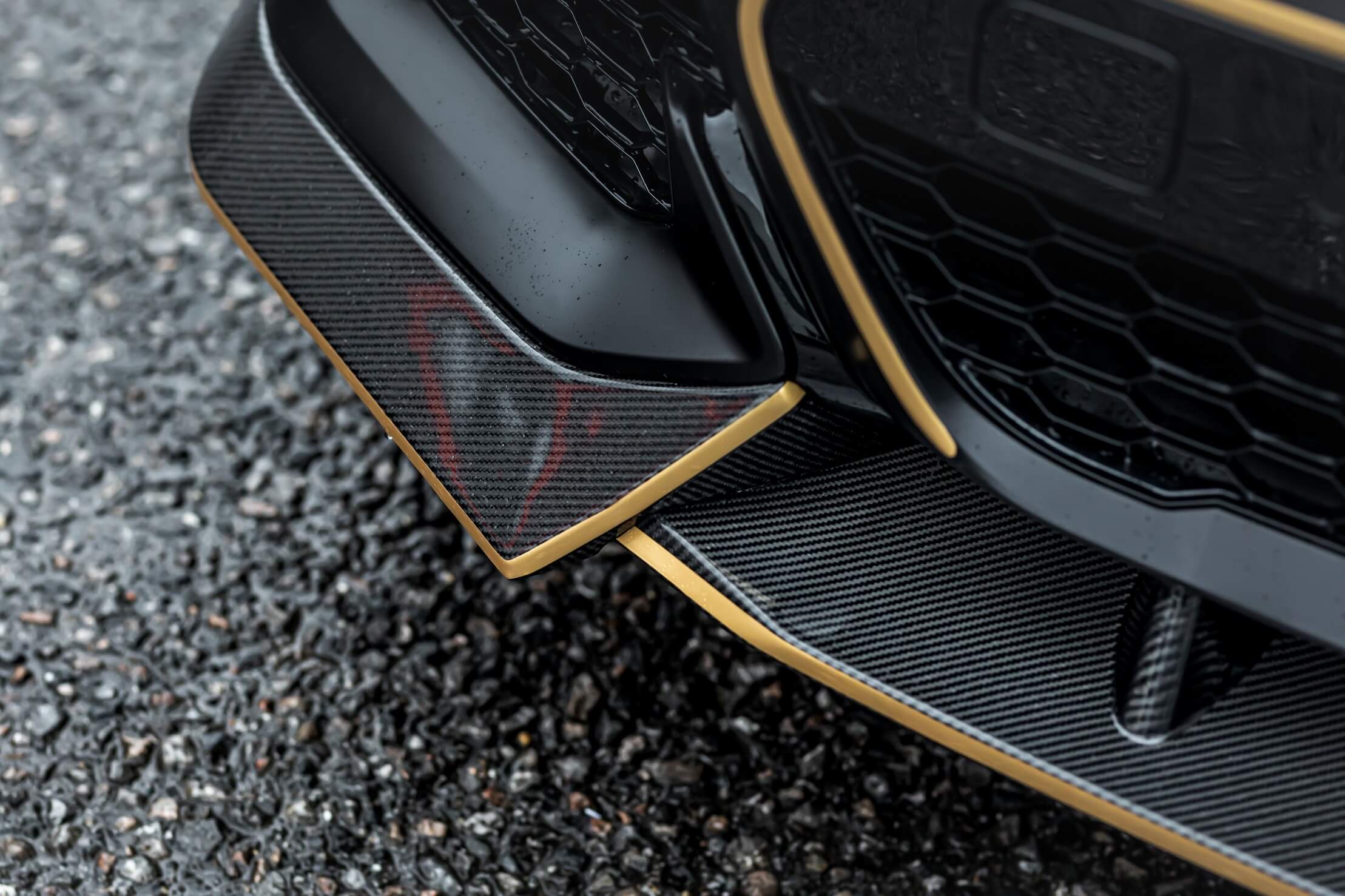 To enhance the extravagant look, Manhart used the precious metal’s color for all the decals and the retro-flavored windscreen sticker. The last order of business was to give BMW’s largest SUV some carbon fiber add-ons. You’ll notice them at the front for the spoiler with its winglets and also at the back for the diffuser. The clear-coated carbon fiber has been applied to the side mirror caps as well.