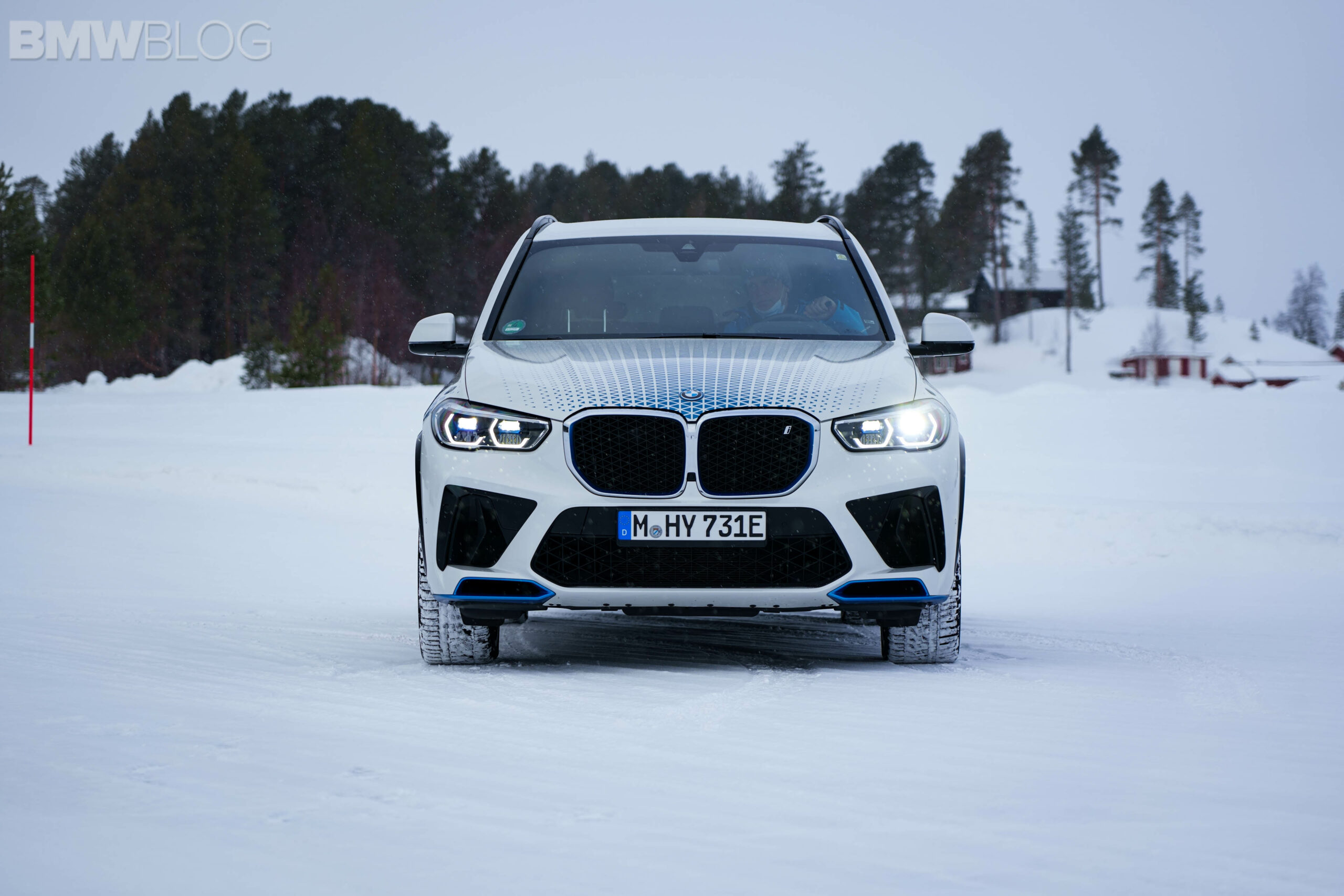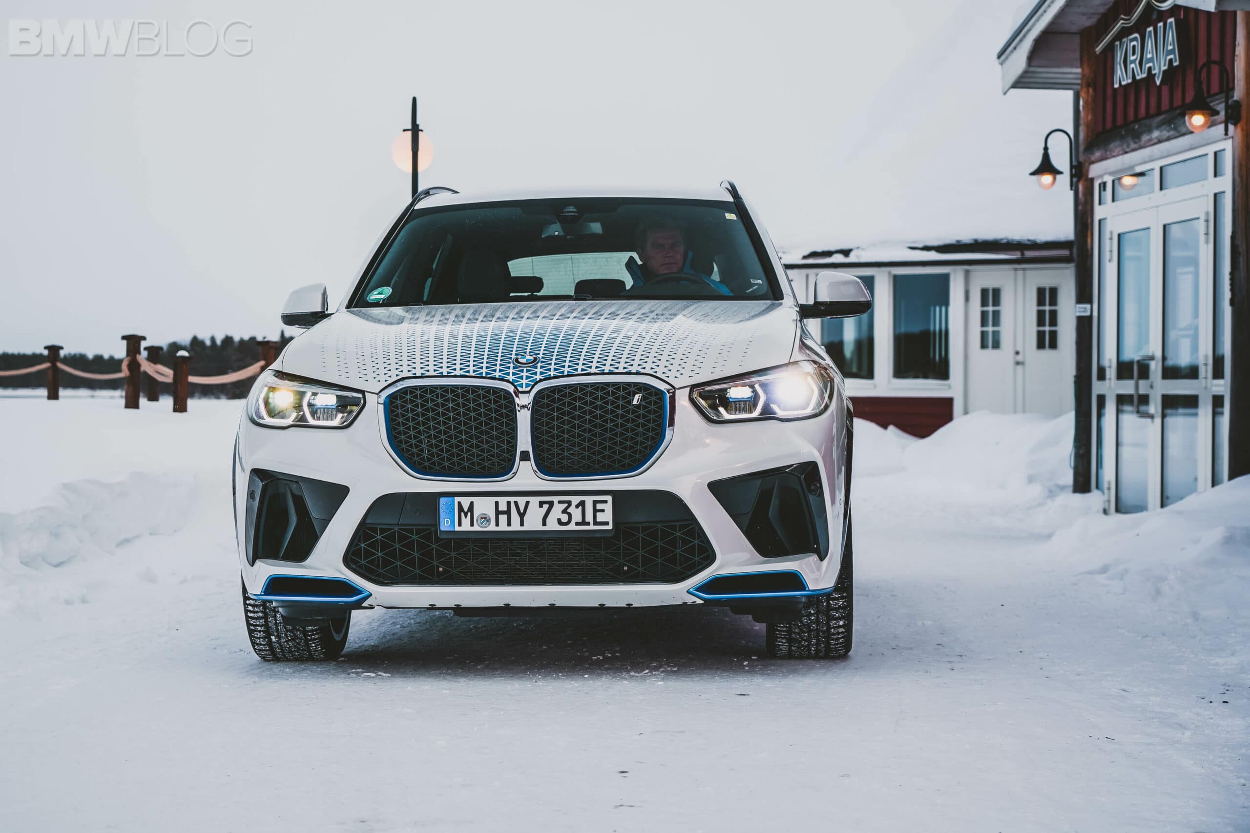 The second day is even more exciting, not only because I set foot inside the secret BMW testing facility, but also because I finally get to drive the iX5 Hydrogen. The former has been a dream of mine since seeing the endless spy photos coming from Arjeplog. And it was exactly what I imagined: a secret facility filled with camouflaged BMW and MINI cars. Unfortunately, no photos were allowed on the property, but I did have a chance to film some footage of the BMW iX5 Hydrogen prototype coming out the workshop.
