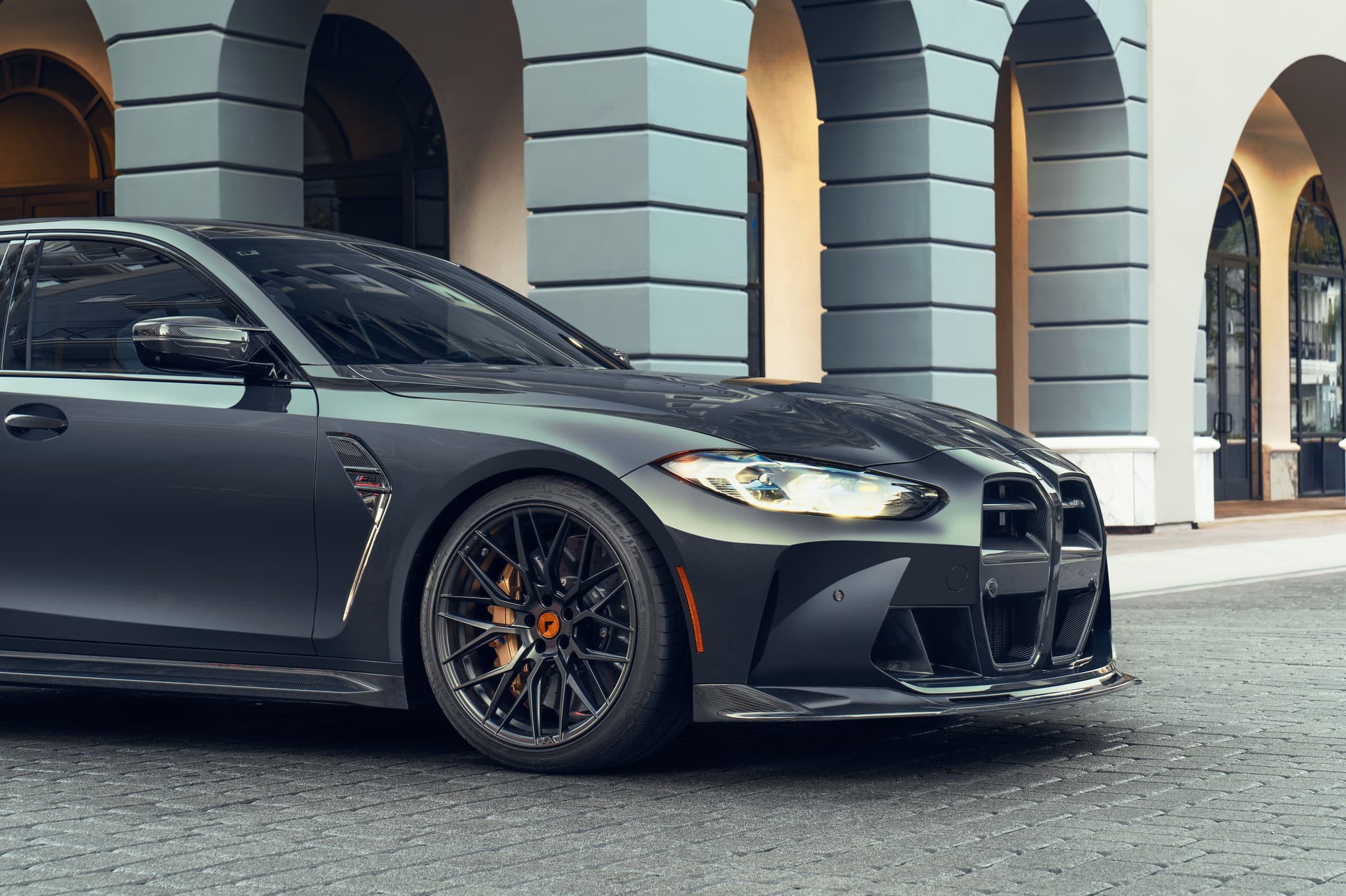 Vorsteiner’s attempt to fix the grille is subtler than we’ve seen from companies like Evolve. Instead of making the grille smaller and adding a new front bumper to make up for it, Vorsteiner keeps the size of the grille but changes the inner bits of it to trick the eye into seeing a smaller, more normal BMW grille.