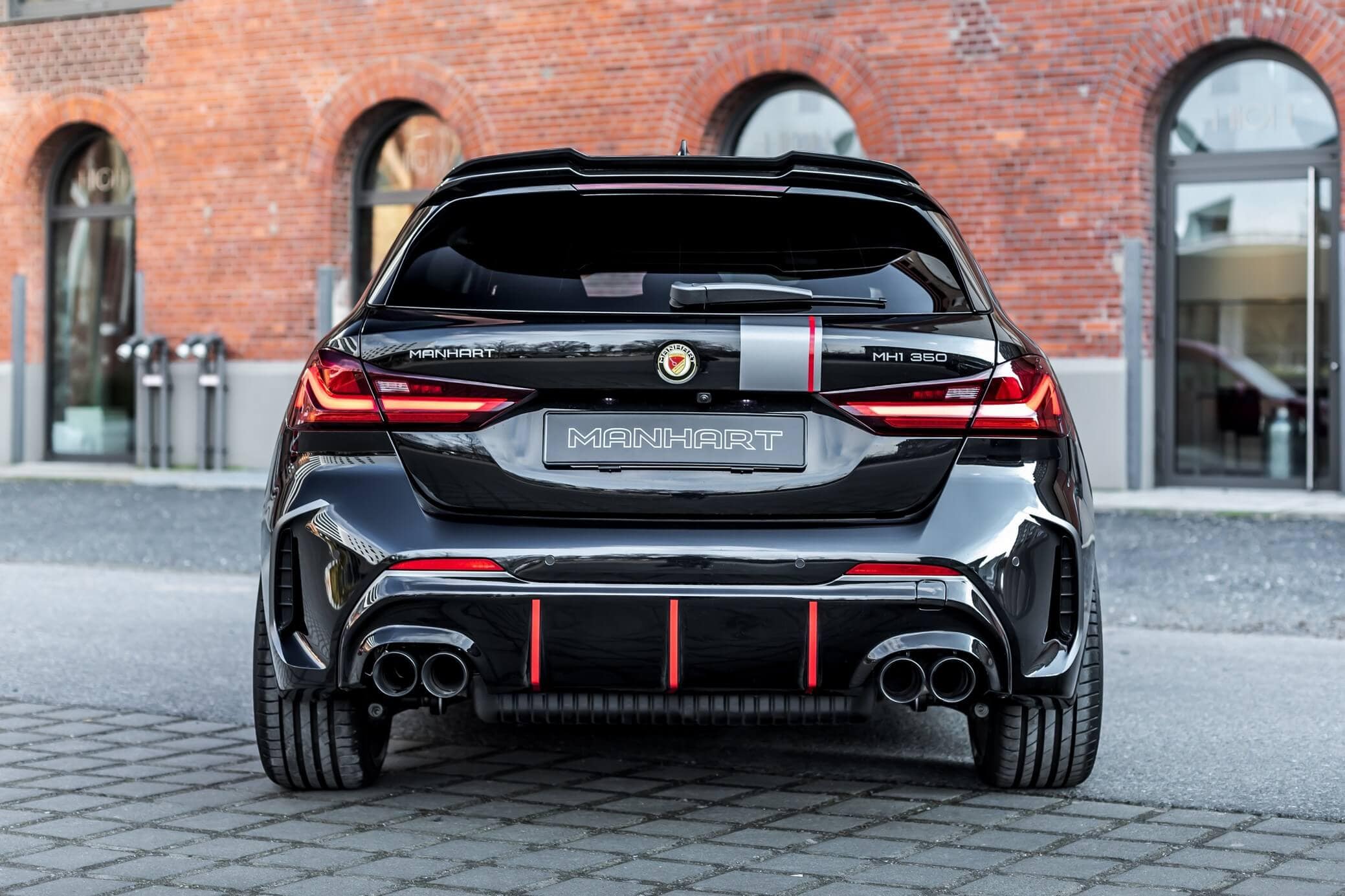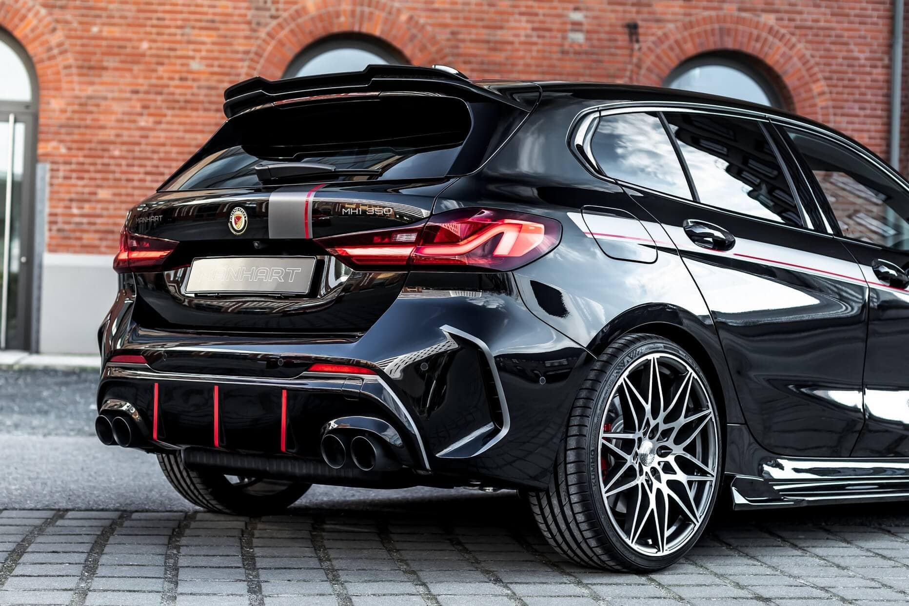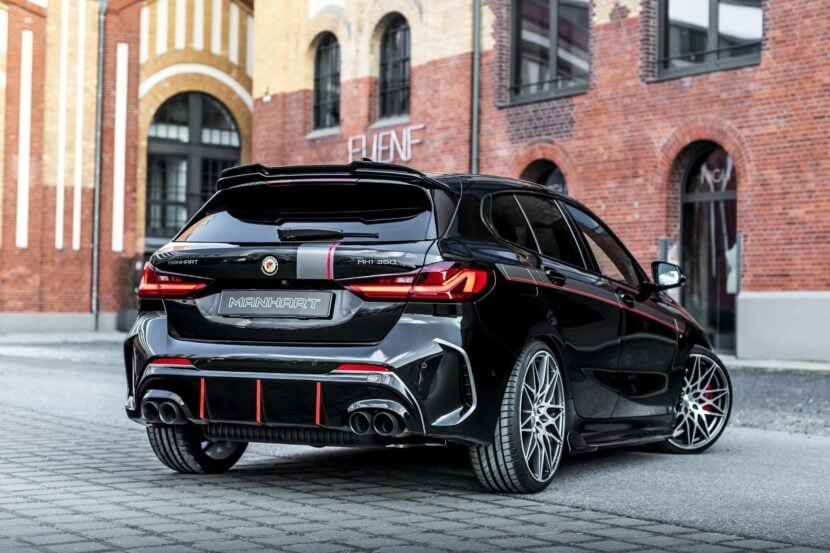 The stock B48 makes 306 hp and 450 Nm before Manhart works its magic on the 2.0-liter unit. Courtesy of a carbon intake and a remapped ECU, the engine is pushed to 350 hp and 524 Nm. To go along with the upgraded powertrain, a menacing quad exhaust with 90-mm tips has been installed on the M135i. By the way, the new X1 M35i will be the first M Performance model with four round tips.