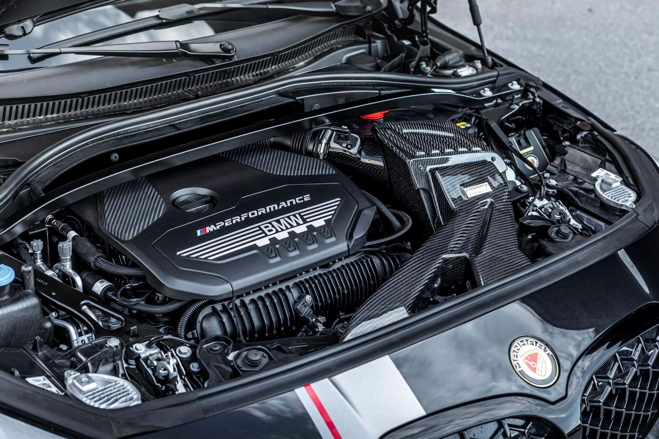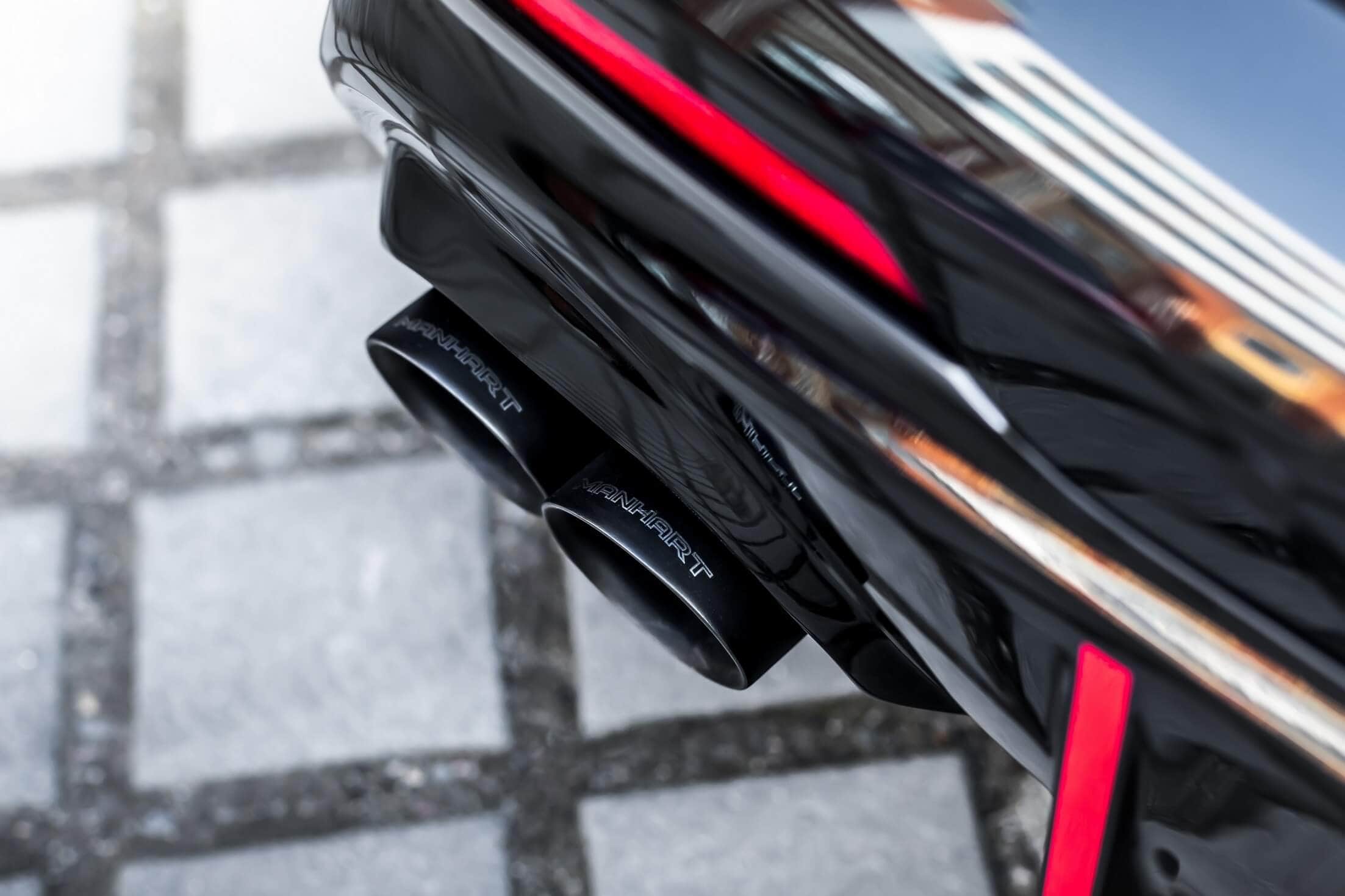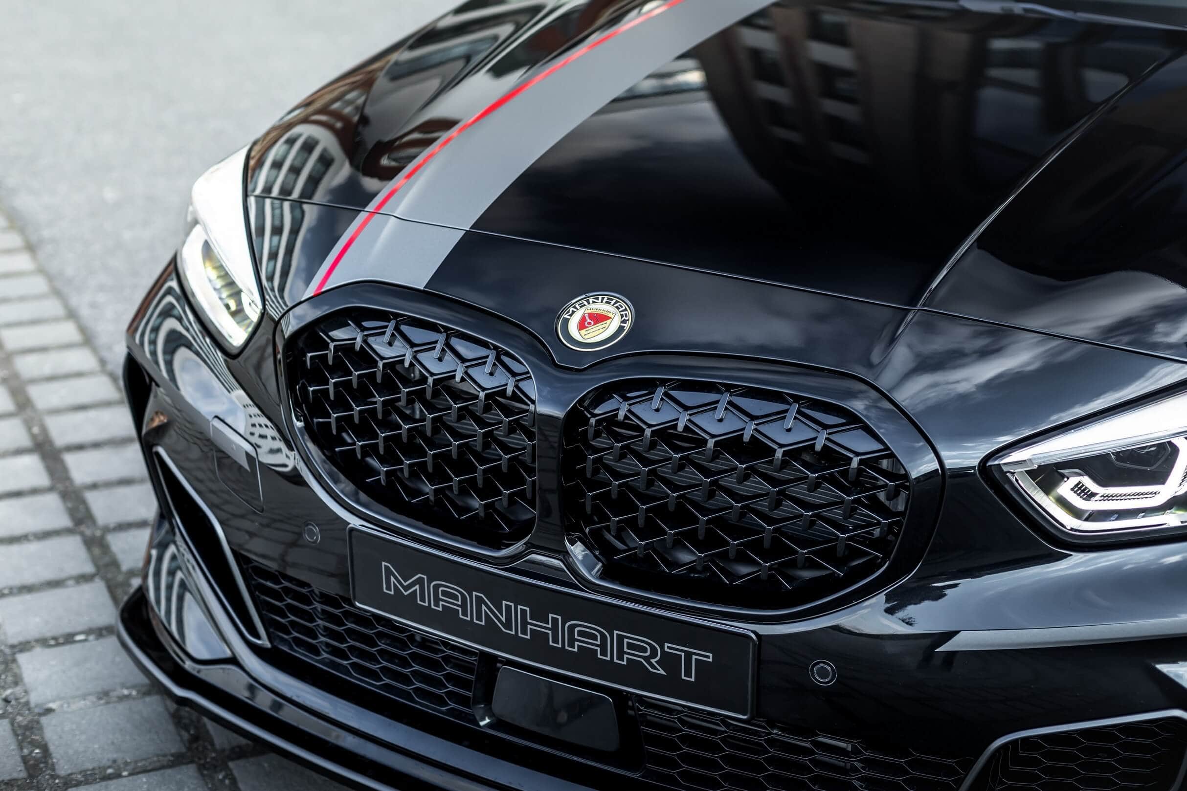 The stock B48 makes 306 hp and 450 Nm before Manhart works its magic on the 2.0-liter unit. Courtesy of a carbon intake and a remapped ECU, the engine is pushed to 350 hp and 524 Nm. To go along with the upgraded powertrain, a menacing quad exhaust with 90-mm tips has been installed on the M135i. By the way, the new X1 M35i will be the first M Performance model with four round tips.