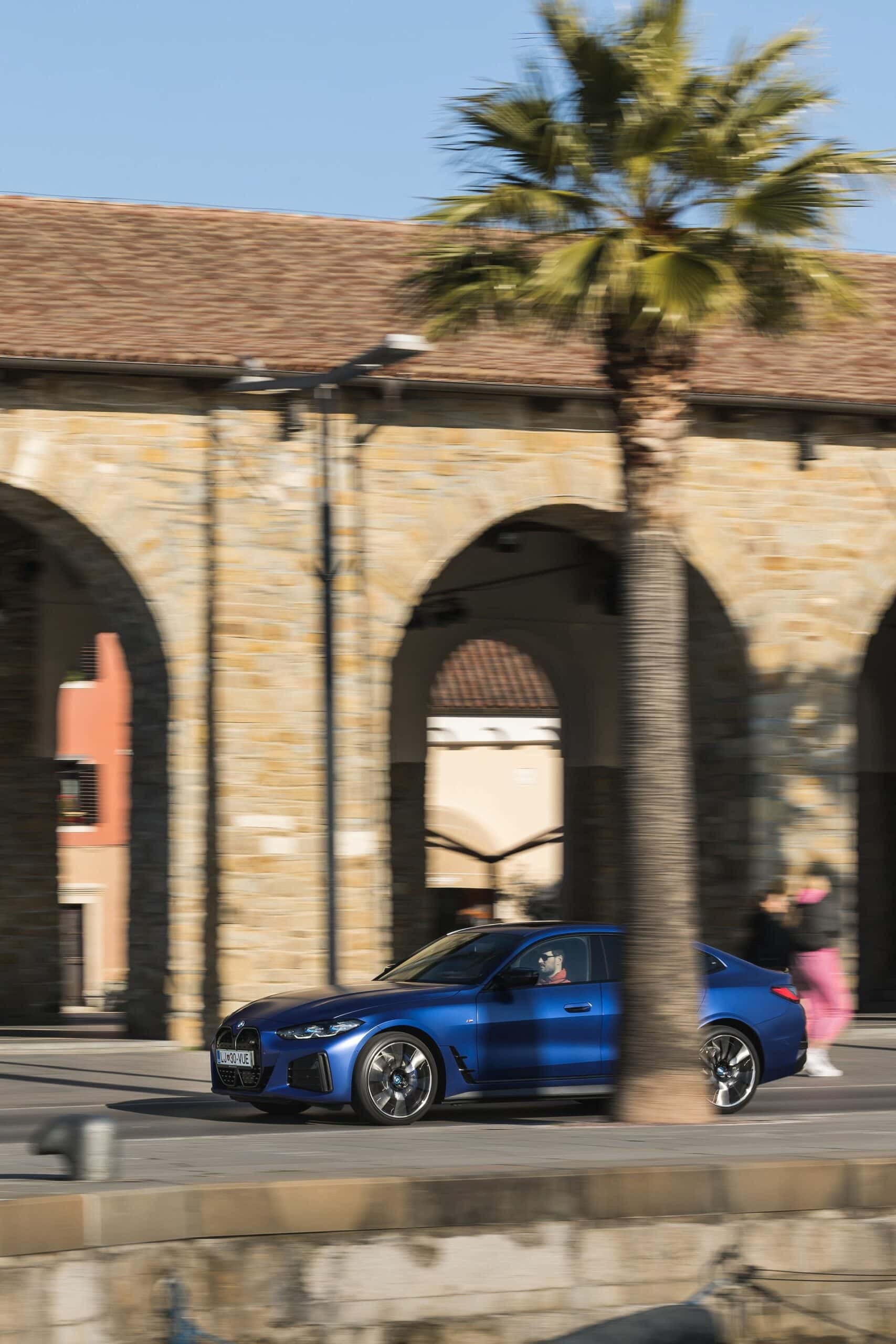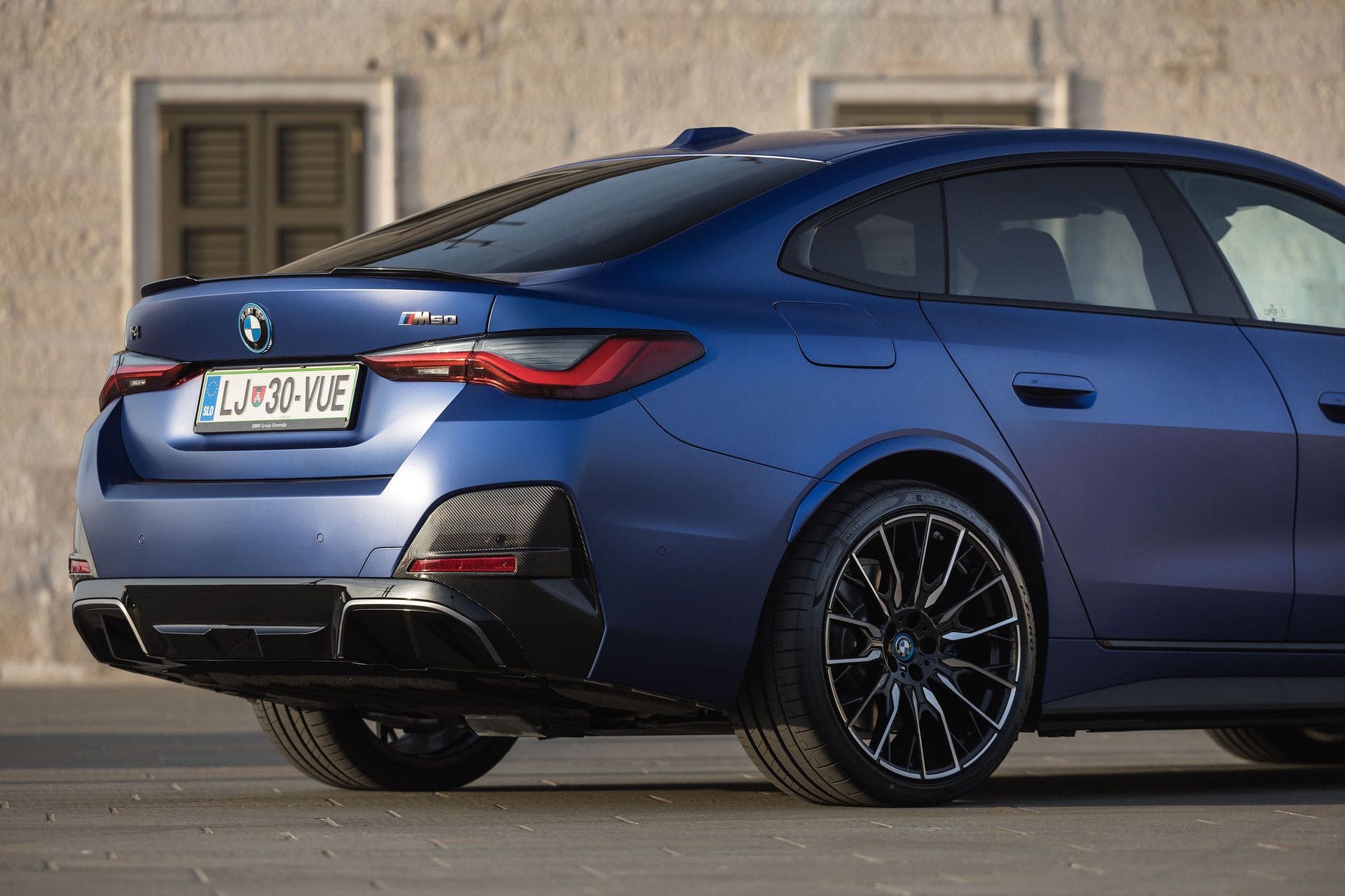 The 2022 BMW i4 eDrive40 starts at $55,400 in the United States and has an EPA range of 282-301 miles, depending on the tire/wheel selection.