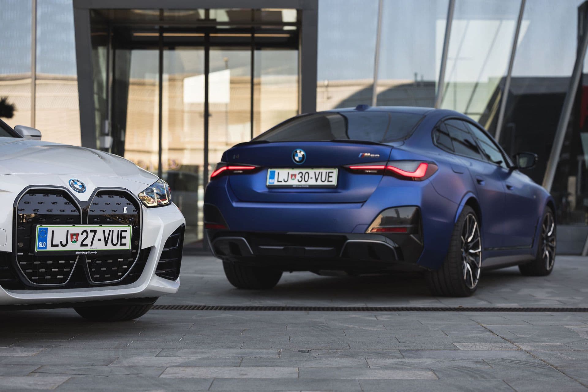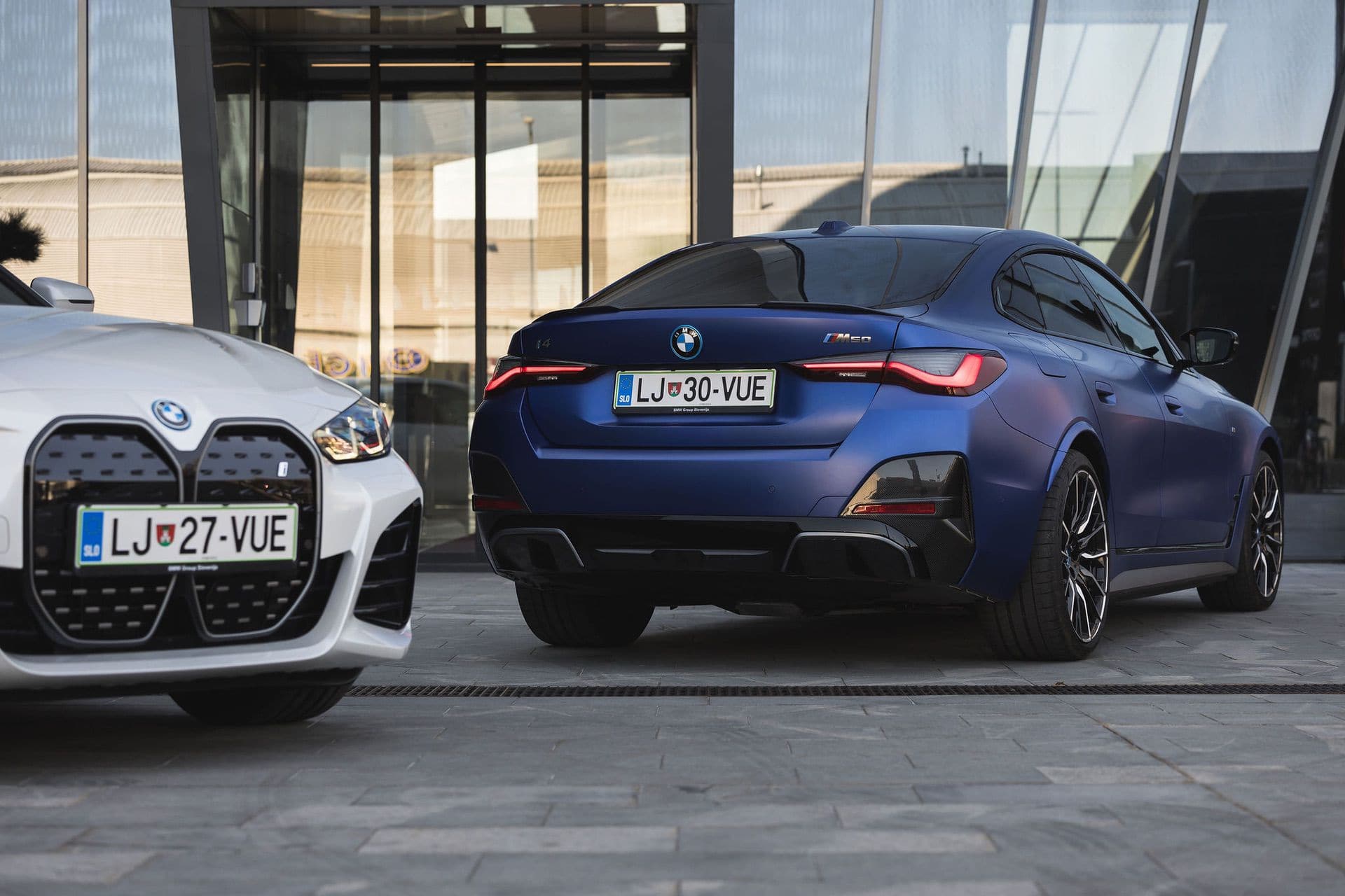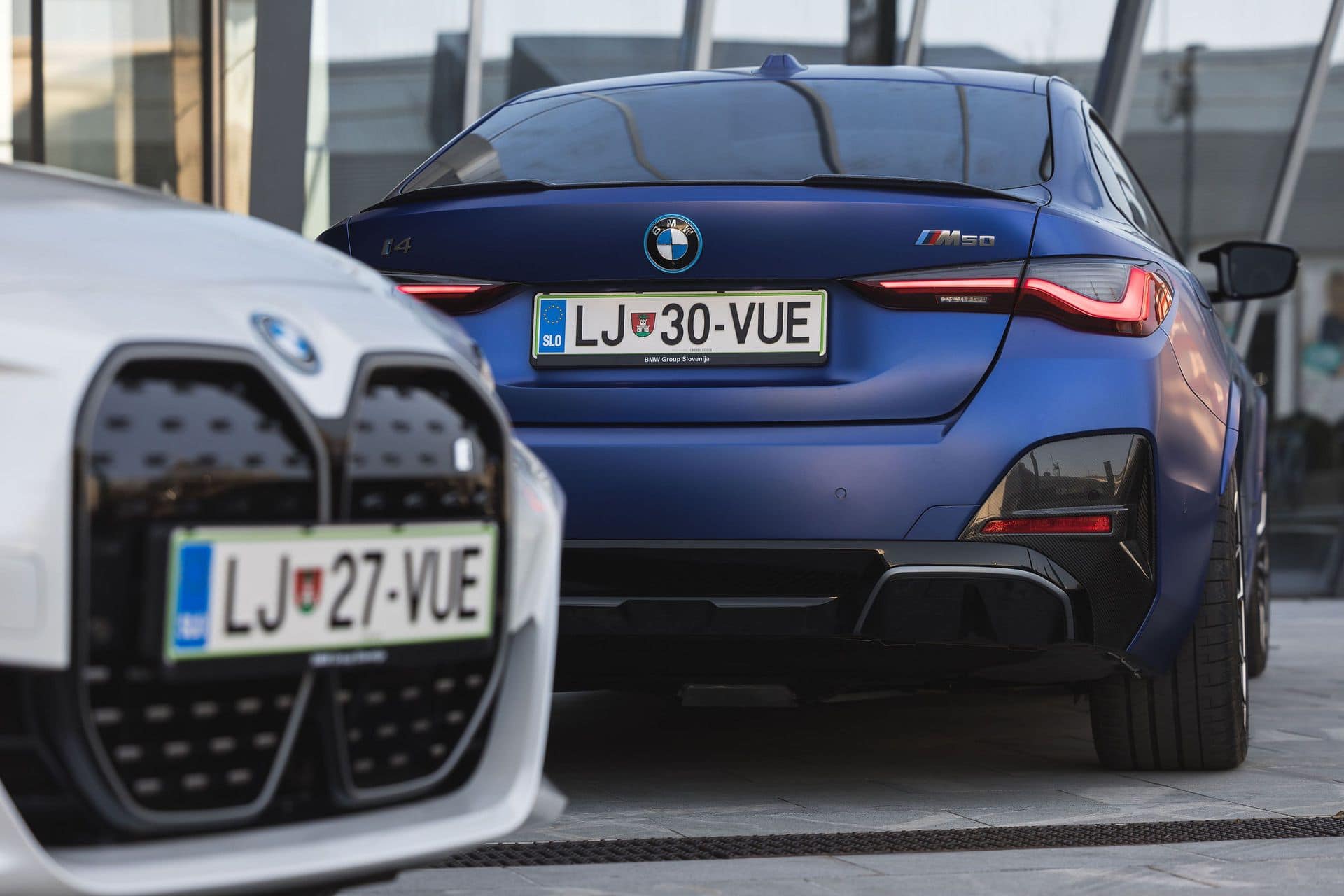 The market roll-out of the new BMW i4 M50 and i4 eDrive40 continue and today, it’s BMW Slovenia who hosted a press launch. In these new photos, we get to see once again the BMW i4 M50 in the marketing color Frozen Portimao Blue. But the more interesting car is the BMW i4 eDrive40 which is showcased in Mineral White.
