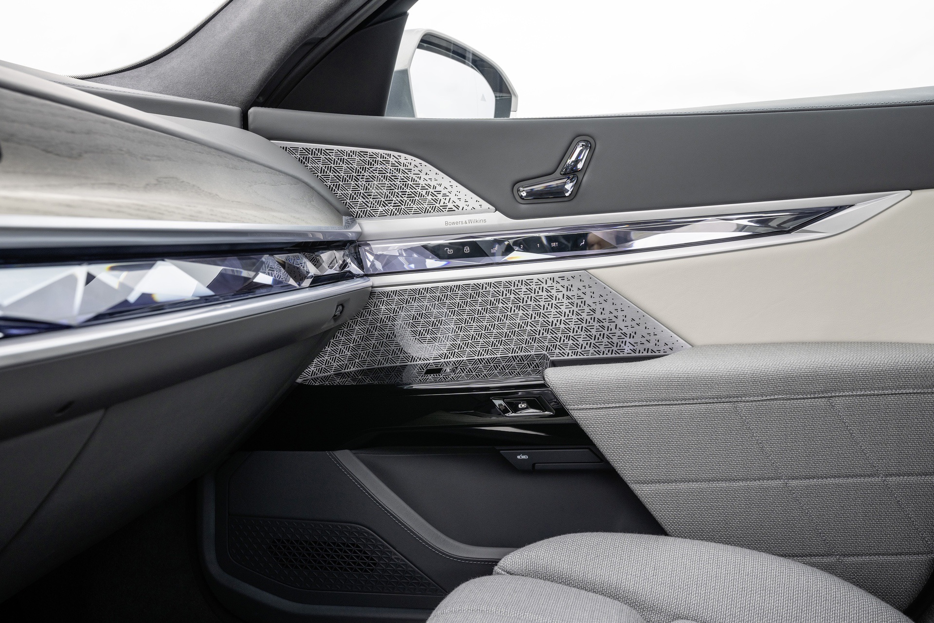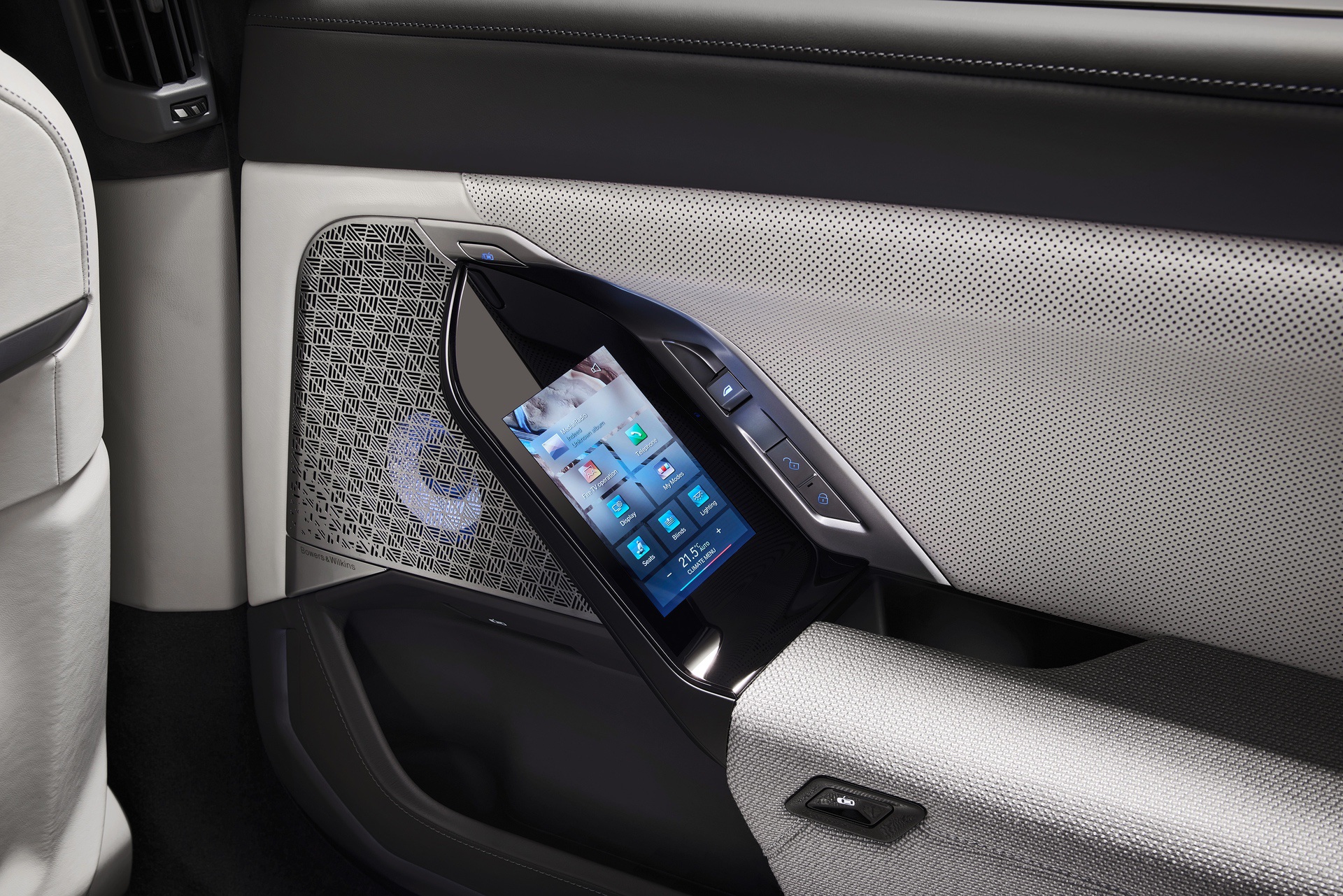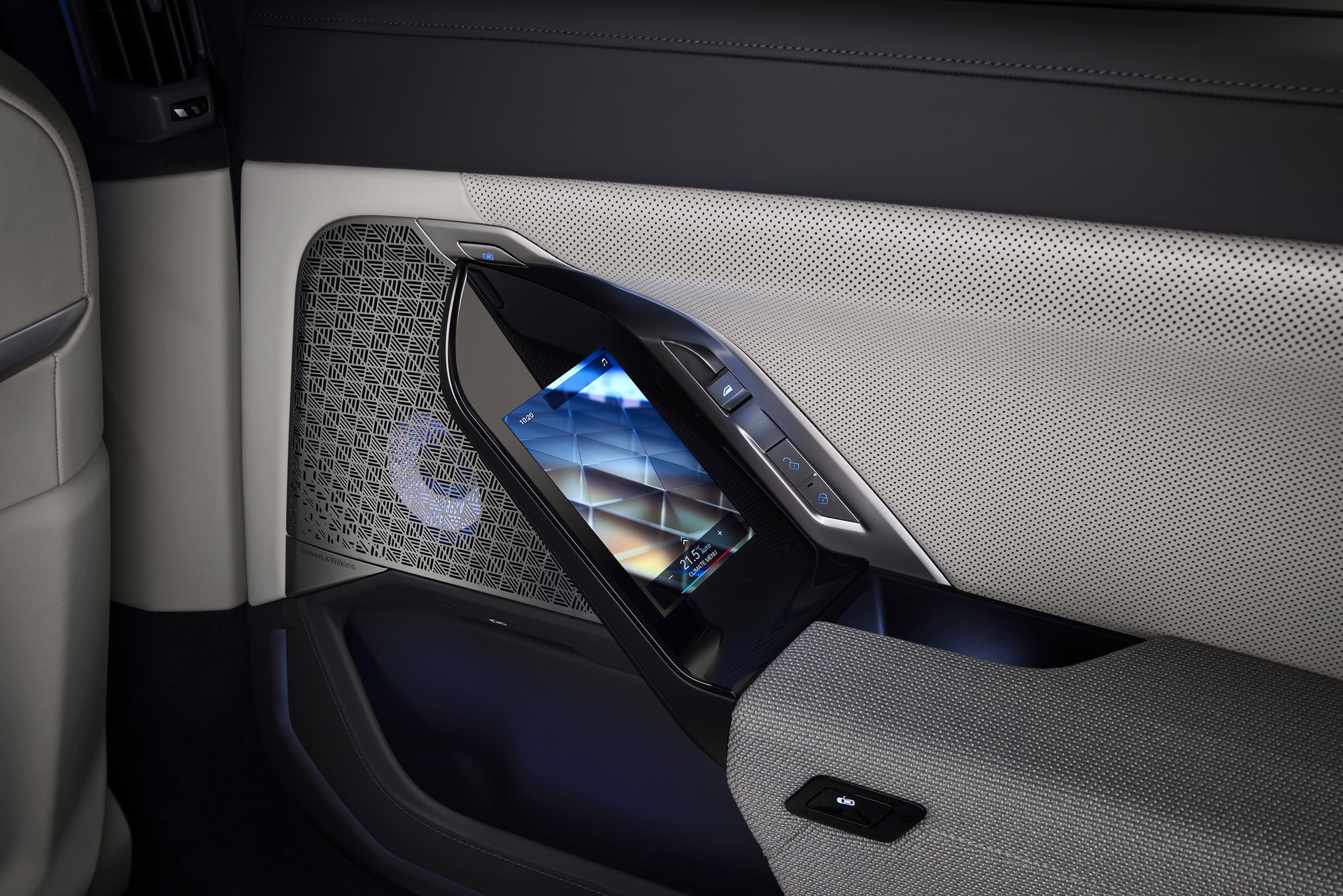 One ace up its sleeve compared to the iX is the BMW Interaction Bar, which takes the shape of a touch-capacitive surface on the passenger side of the dashboard. It provides quick access to various functions, such as ventilation and climate control, opening the glovebox, and turning on the hazard lights. Even the door cards have their own screens, measuring 5.5 inches and with controls for the seats, ambient lighting, sunblinds, and entertainment system.