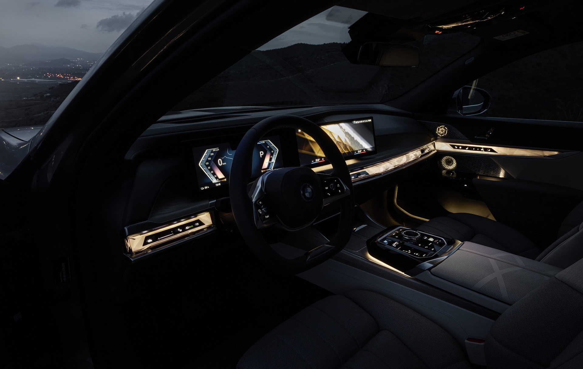The 7 Series G70 also ushers in a new steering wheel design and a sleeker gear selector, not to mention a sophisticated Sky Lounge. The panoramic glass roof is bigger than what rivals offer and incorporates backlit threads à la Rolls-Royce’s Starlight. Speaking of the brand from Goodwood, BMW has given its crown jewel automatic doors as an optional feature. Opening and closing the front and rear doors is done by simply touching the handles set flush into the body or by using the Interaction Bar. Alternatively, the key can also be used as well as the door-mounted displays.