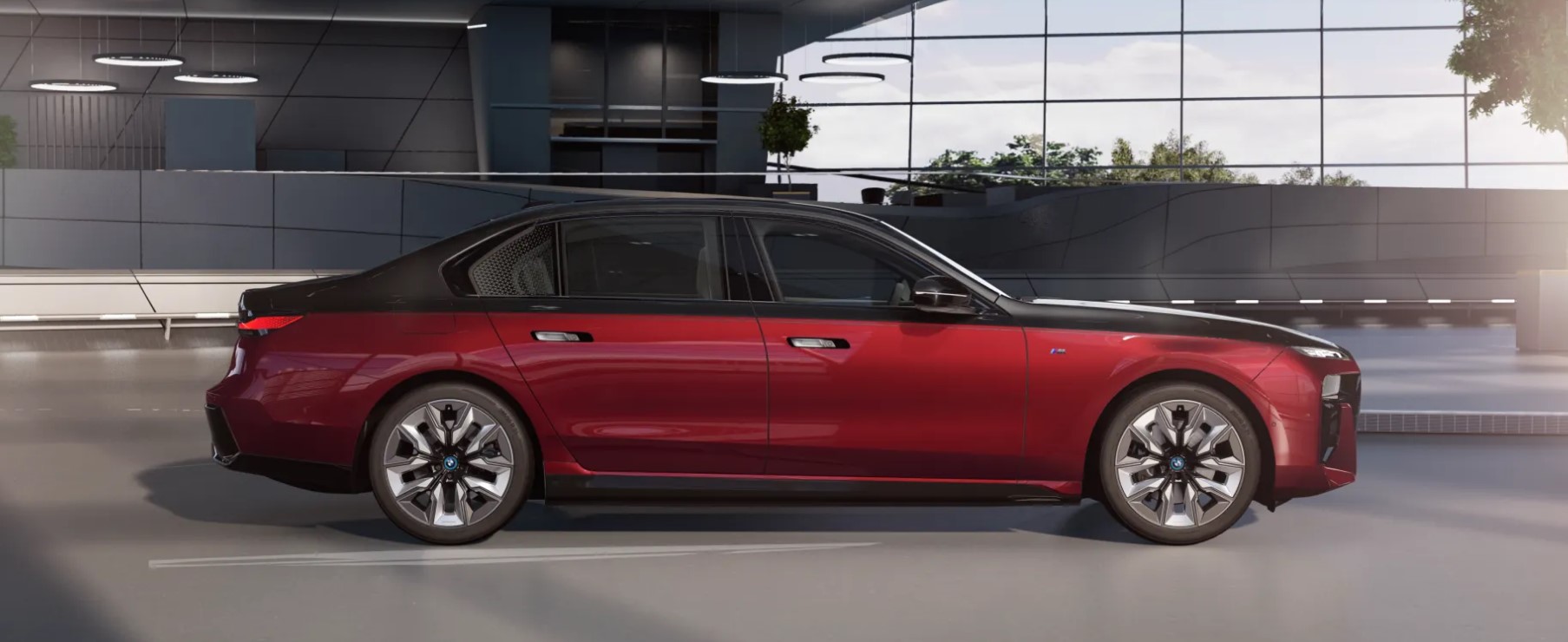 The next step is to pick a color other than the no-cost Alpine White uni. Metallic shades cost from €1,150, but Individual hues such as Frozen Pure Gray and Frozen Deep Gray are each €3,800. For the first time on a series-production car, the 7 Series G70 / i7 gets an Individual two-tone option and it’ll set you back €12,000. We decided to go with Aventurine Red and a black upper section.