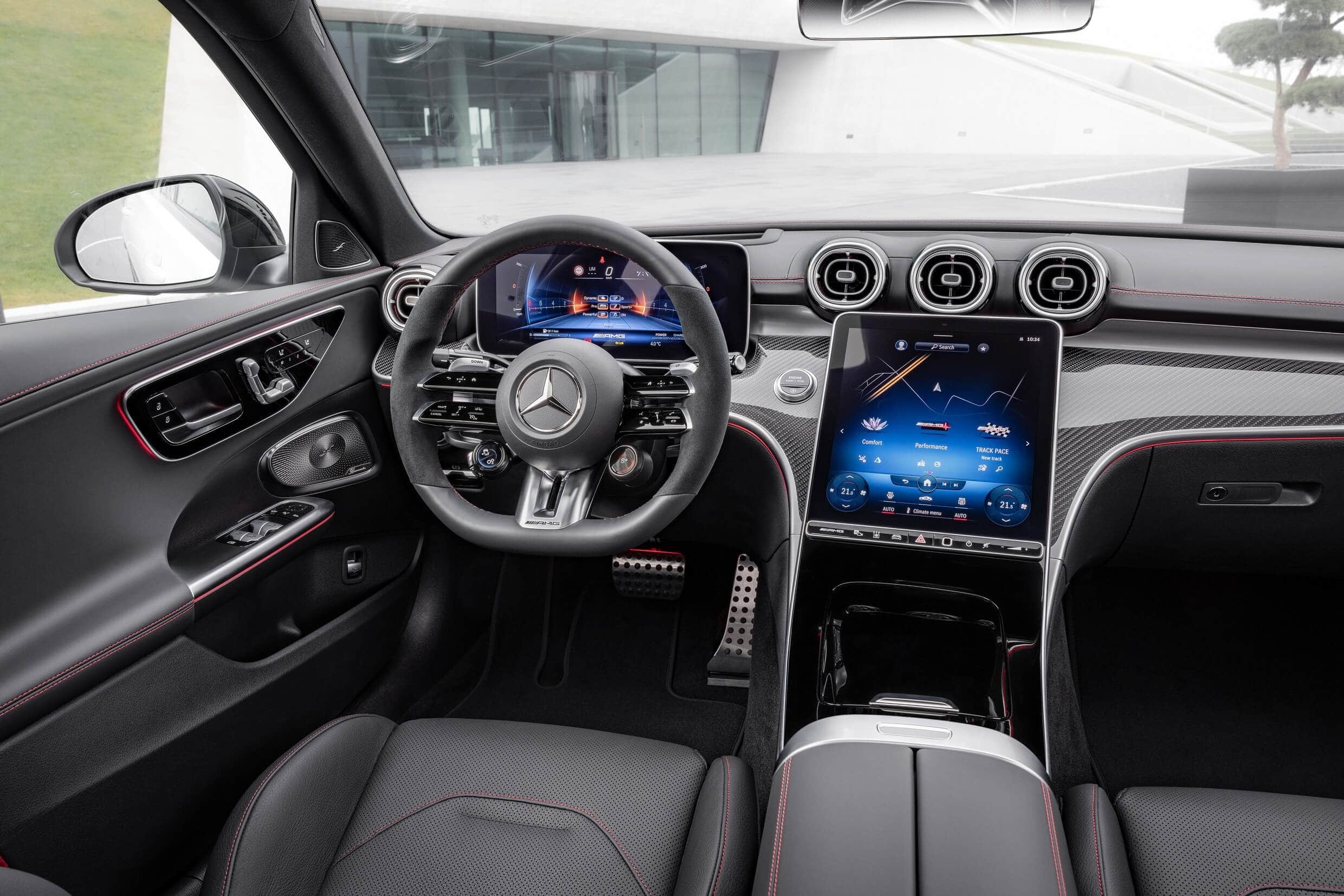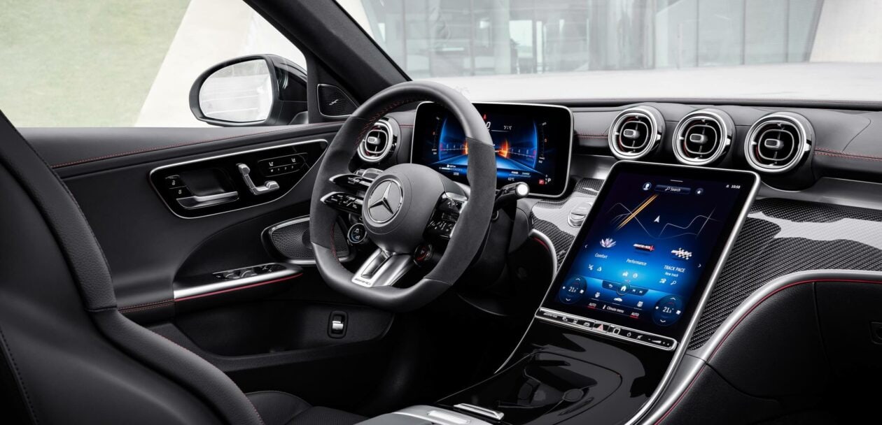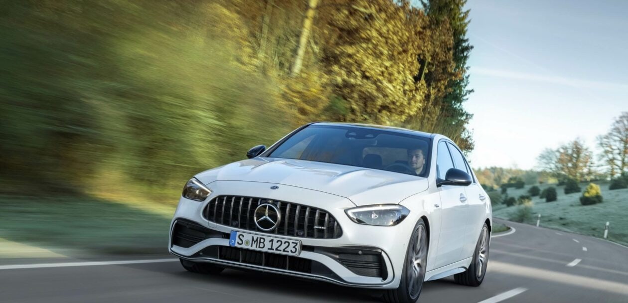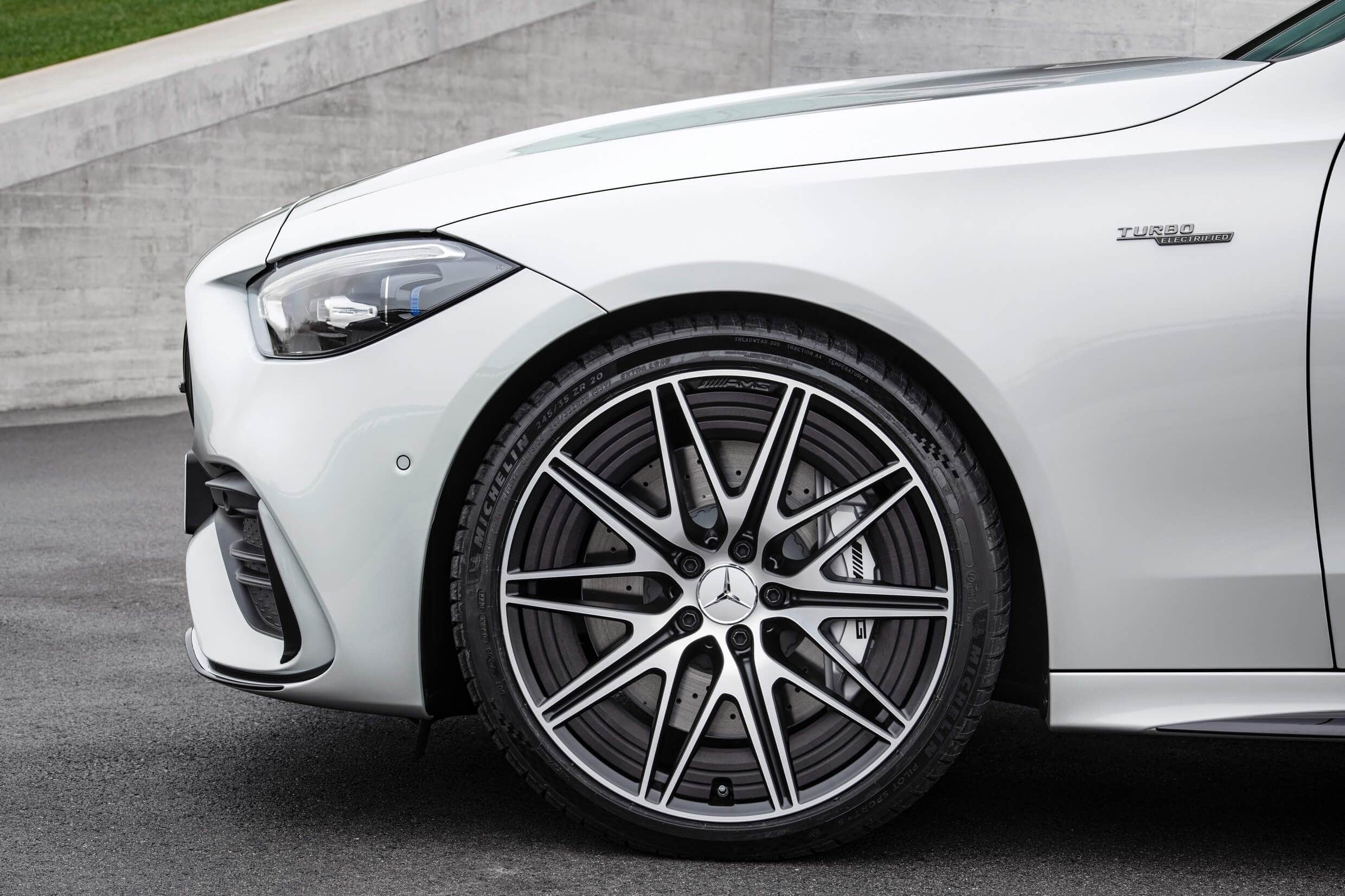 AMG mentions the full horsepower is available from 6,750 rpm while the torque kicks in at 5,000 rpm. The four-pot engine comes with a mild-hybrid system offering an extra 13 hp for a short amount of time courtesy of the belt-driven starter generator. This sophisticated powertrain enables the 2023 C43 to hit 60 mph in around 4.6 seconds before hitting an electronically capped 155 mph (250 km/h). Upgrading to the 19- or 20-inch wheels allows owners to raise the limiter to 165 mph (265 km/h).