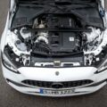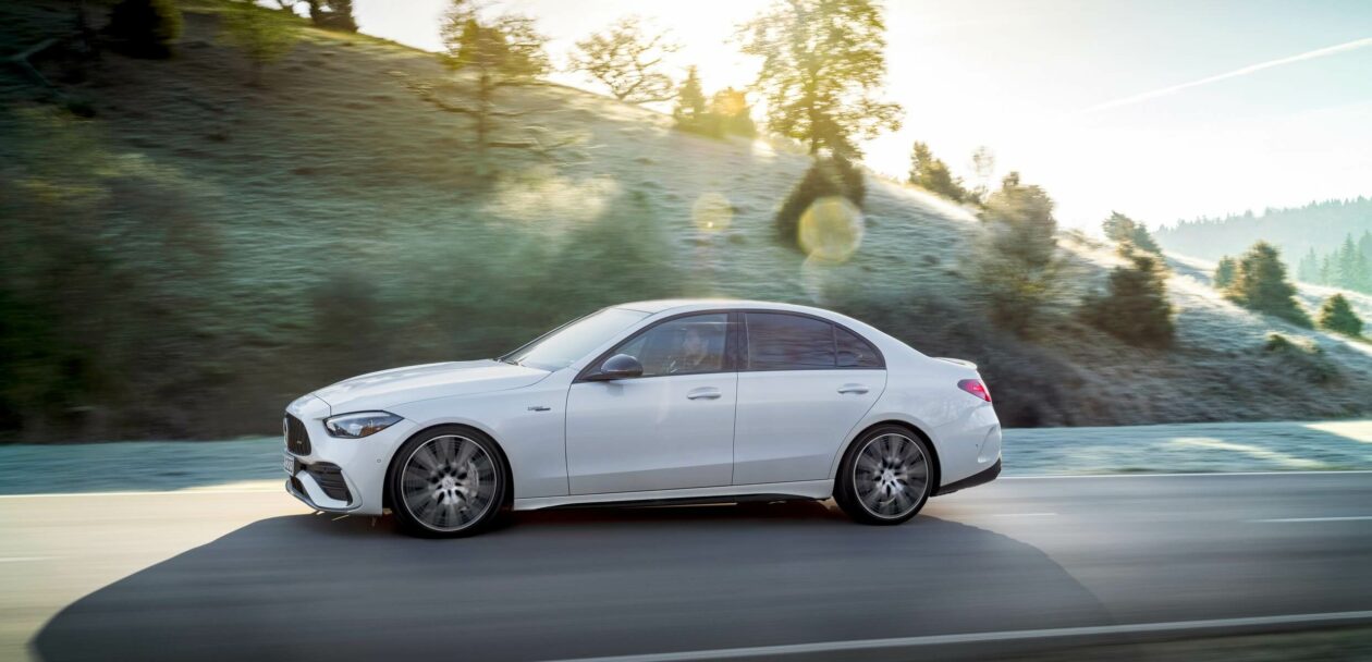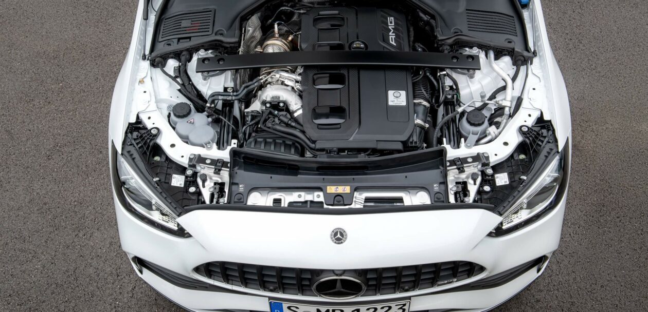The powertrain represents a significant departure compared to the old AMG C43 as the 3.0-liter V6 engine has been deleted. Despite downsizing to a four-cylinder, 2.0-liter mill, it comes with a boost in power of 17 hp to 402 hp. On the flip side, it’s down on torque by 15 lb-ft (20 Nm) as it generates 369 lb-ft (500 Nm). It uses the same engine found in the smaller “45” cars but is mounted longitudinally. For this reason, the letter “l” has been added at the end of its “M139” codename.