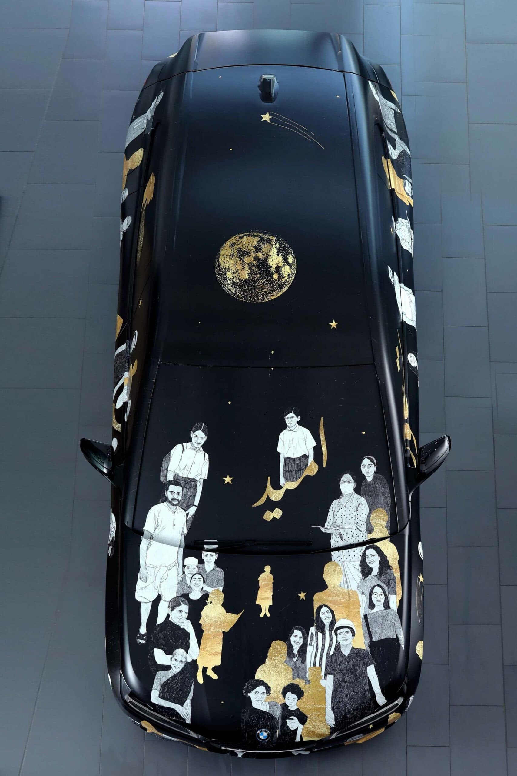 Created for the ongoing 2022 India Art Fair, the zero-emissions SUV has a one-of-a-kind body wrap. BMW says the main idea is to promote “Sustainable Circularity” and it picked this design from a total of four proposals. Faiza Hasan was chosen as the winner and her design now adorns the iX. The Hyderabad-born artist decided to illustrate a community as a way to speak about sustainability.