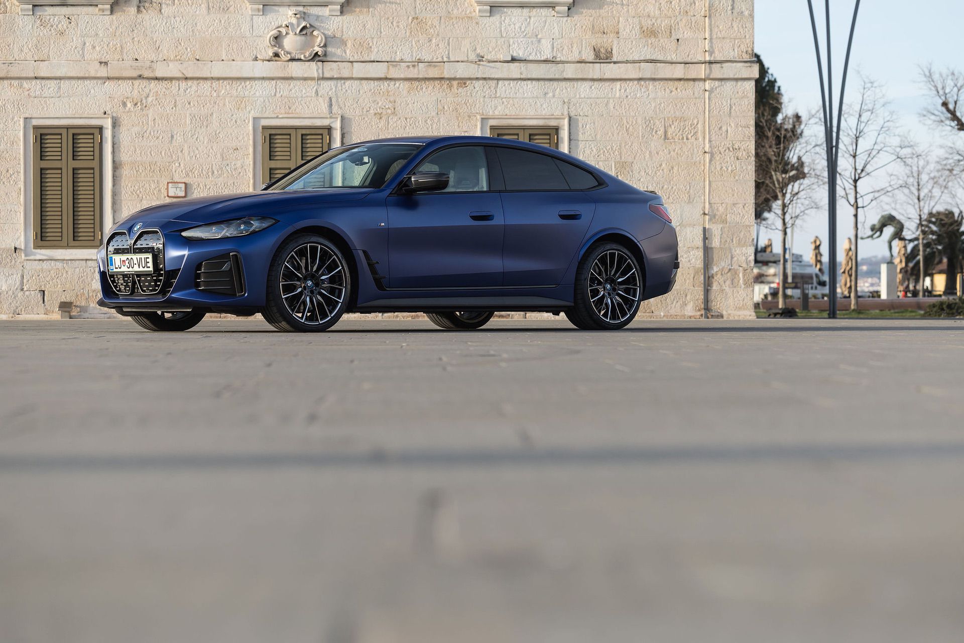 On paper, Edmunds’ BMW i4 M50 has an EPA-rated maximum range of 227 miles, with its 83.9-kWh battery, 20″ wheels, and dual electric motors. Those two electric motors combine to make a whopping 536 horsepower and 586 lb-ft and it weighs 5,086 lbs, according to Edmunds, 1,000 lbs more than a comparable Tesla Model 3 performance.
