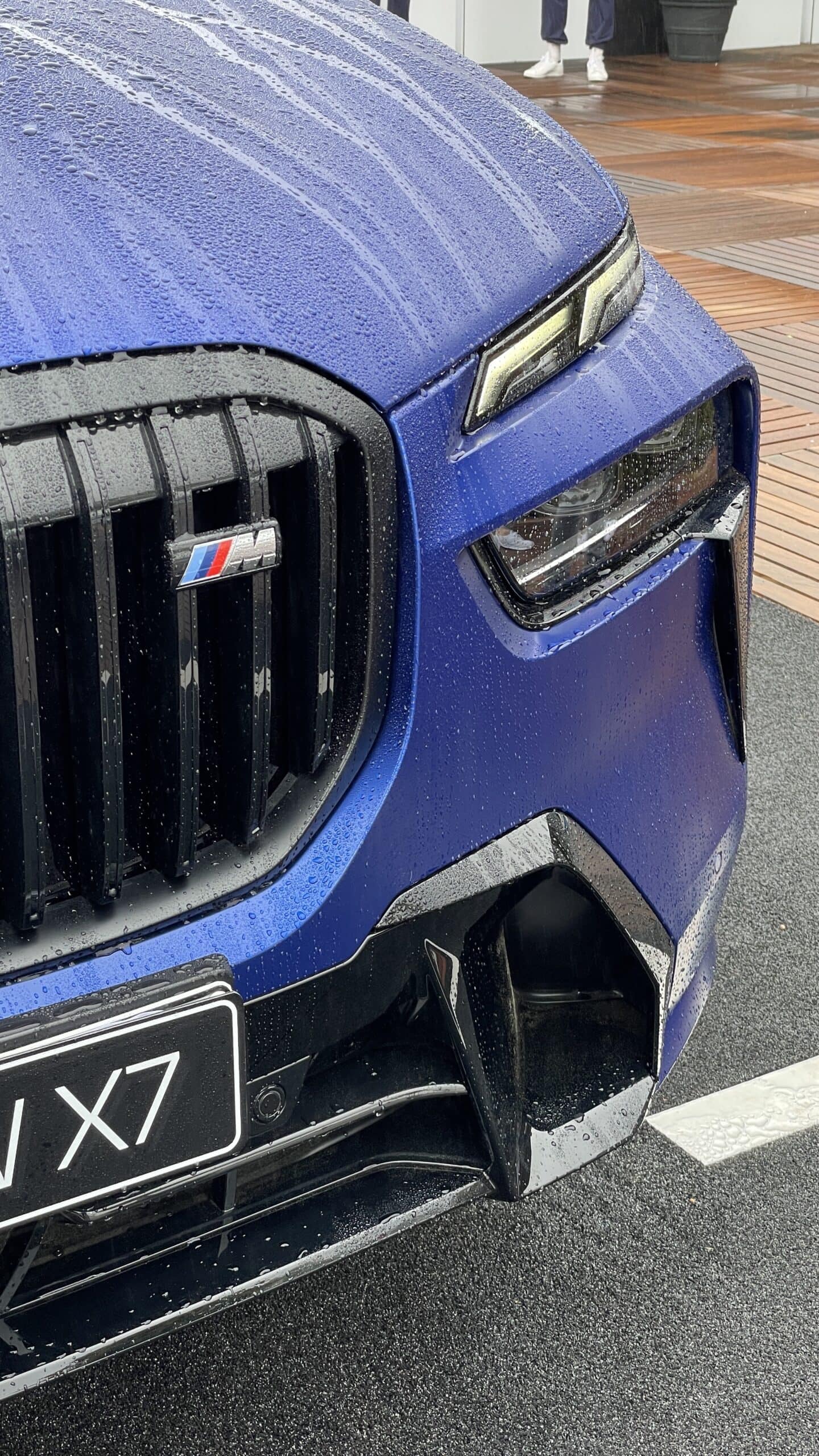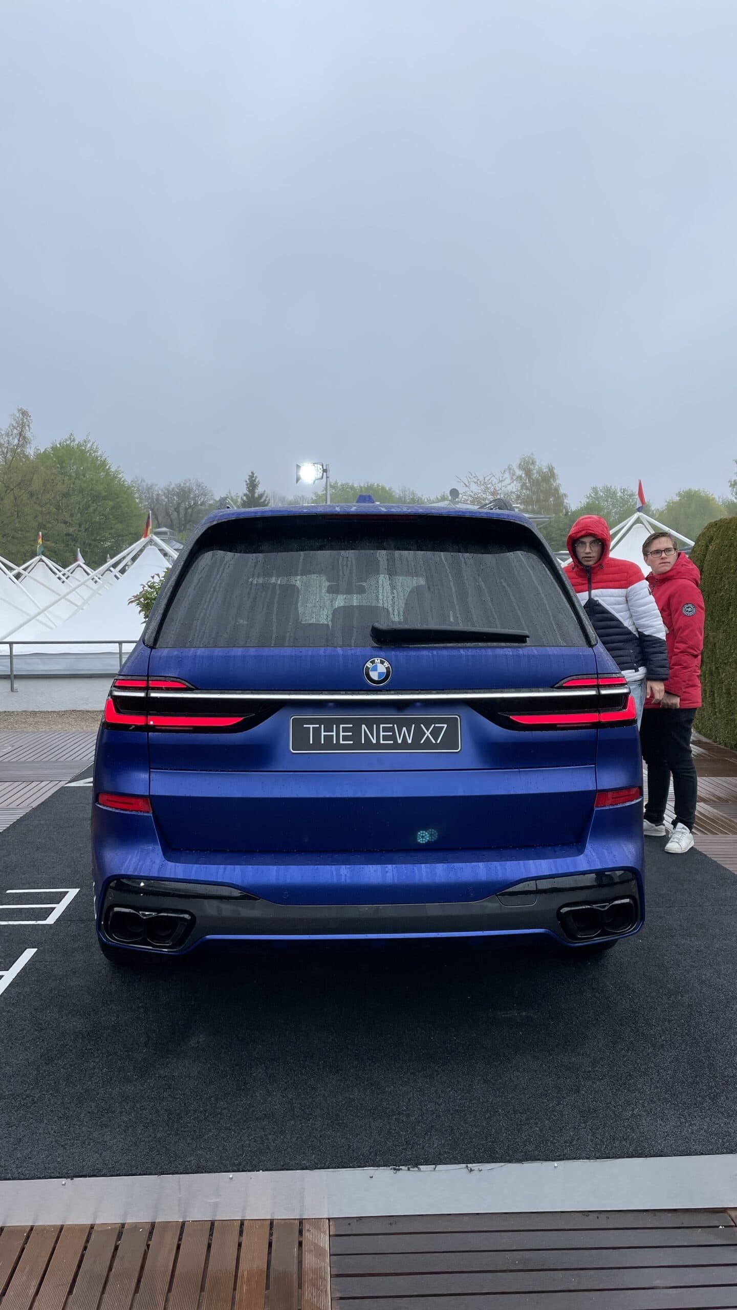This BMW X7 Facelift in Frozen Marina Bay Blue was displayed this week at the 2022 BMW Open Tennis tournament in Munich. This is also the first time that we see real life photos of the X7 LCI with the matte blue color. The top of the line BMW X7 M60i gets a few new shades as well, aside from the Marina Bay Blue: Ametrine Metallic and Frozen Pure Grey Metallic. There are of course a ton of new Individual colors available too, including Daytona Violet and Ruby Red. The BMW X7 M60i will also get an optional “BMW M 50 Years” emblem on the hood, tailgate and hubcaps.