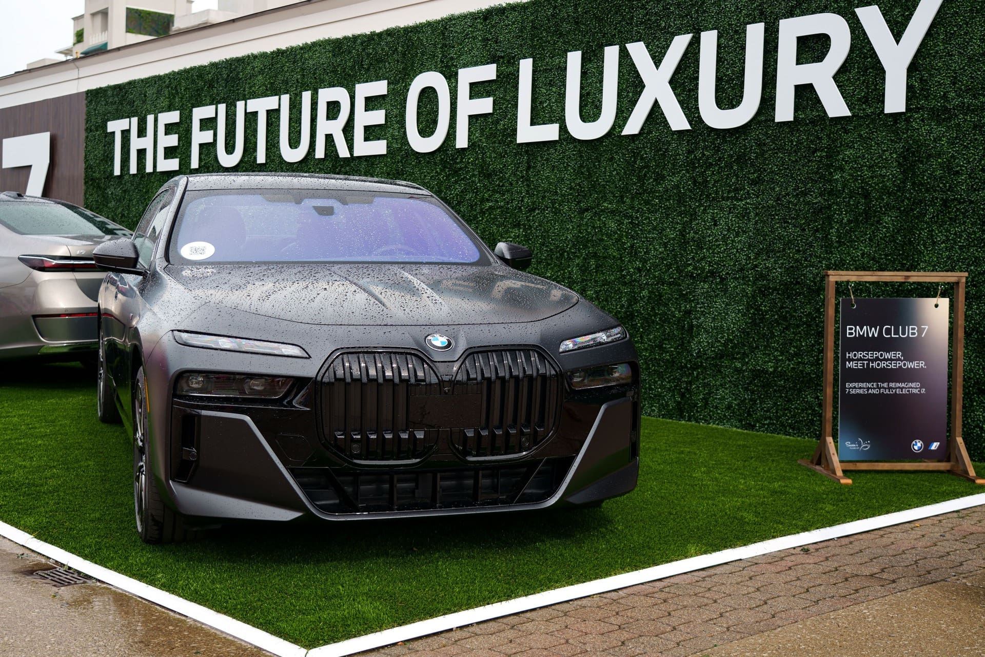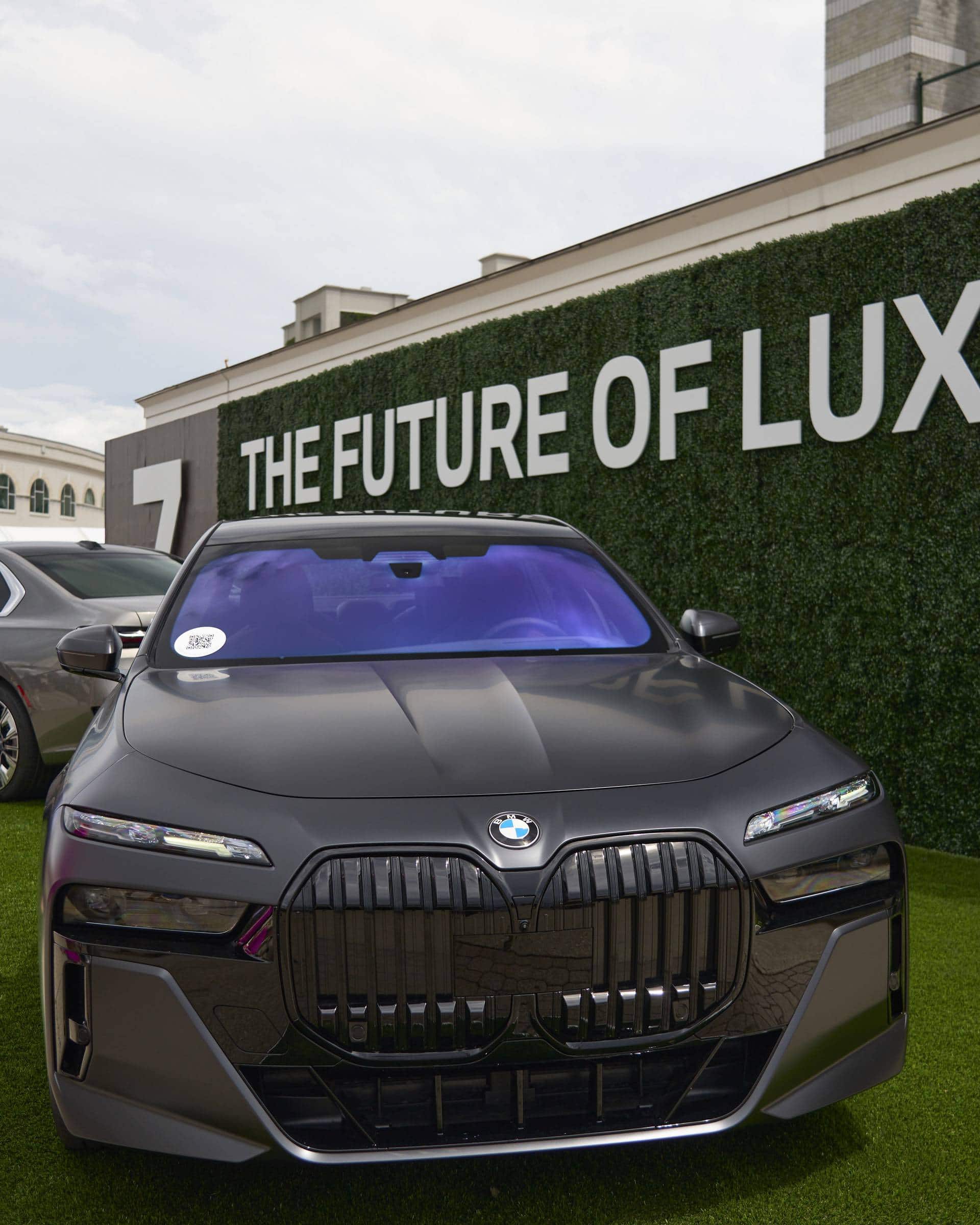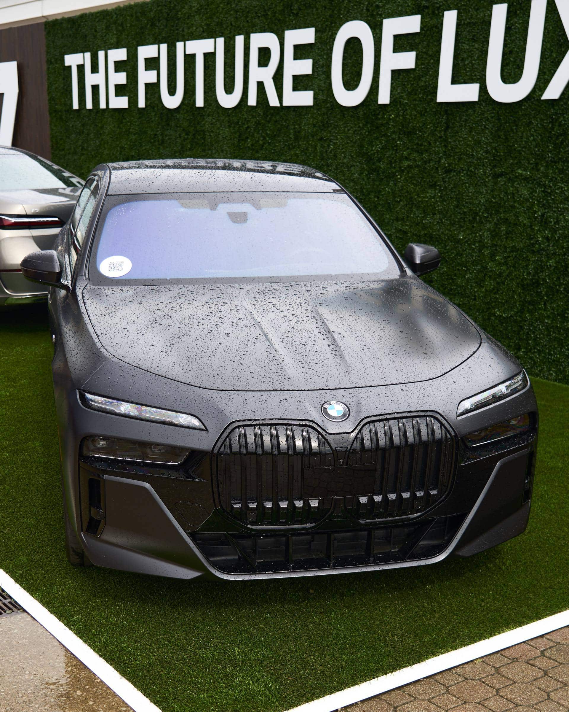 The murdered-out saloon is showcased at the BMW Club 7 together with the purely electric i7 alongside a live flower wall with over 7,000 roses and lilies. Attendees can take part in detailed product walkarounds to learn more about the revamped crown jewel. As you have heard, the new 7 comes in only one size and is bigger than the defunct G12.