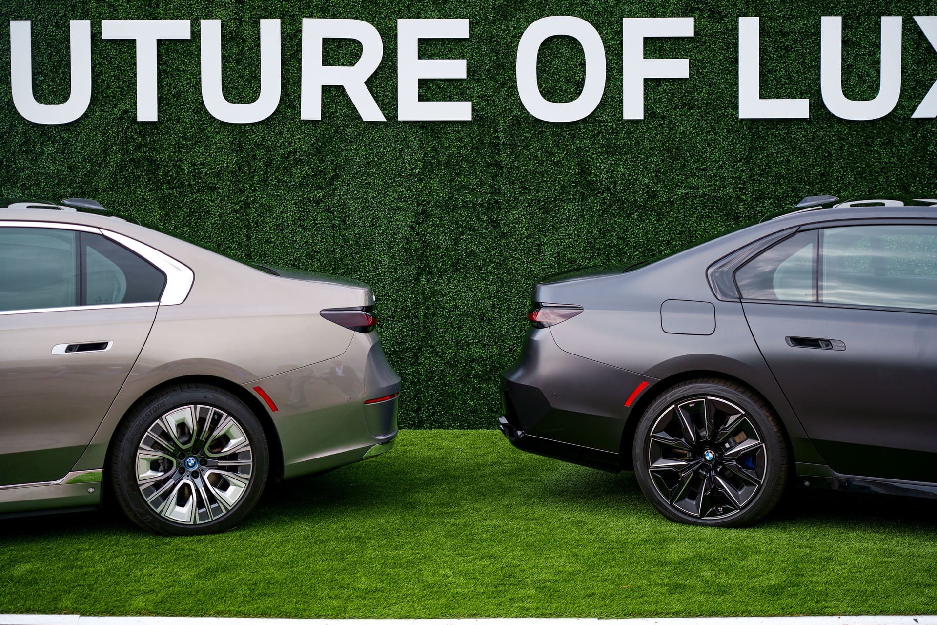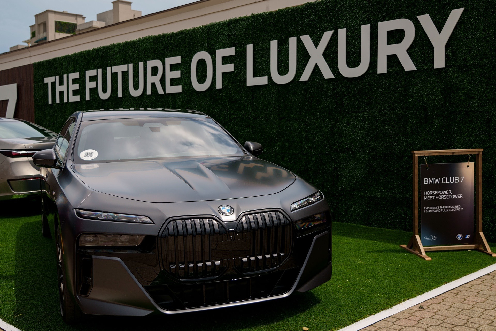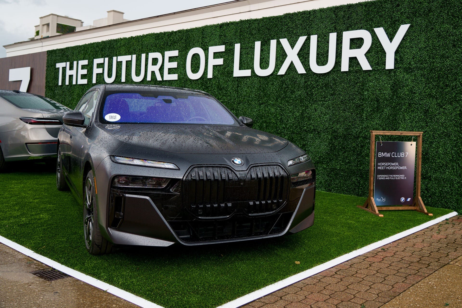 The murdered-out saloon is showcased at the BMW Club 7 together with the purely electric i7 alongside a live flower wall with over 7,000 roses and lilies. Attendees can take part in detailed product walkarounds to learn more about the revamped crown jewel. As you have heard, the new 7 comes in only one size and is bigger than the defunct G12.