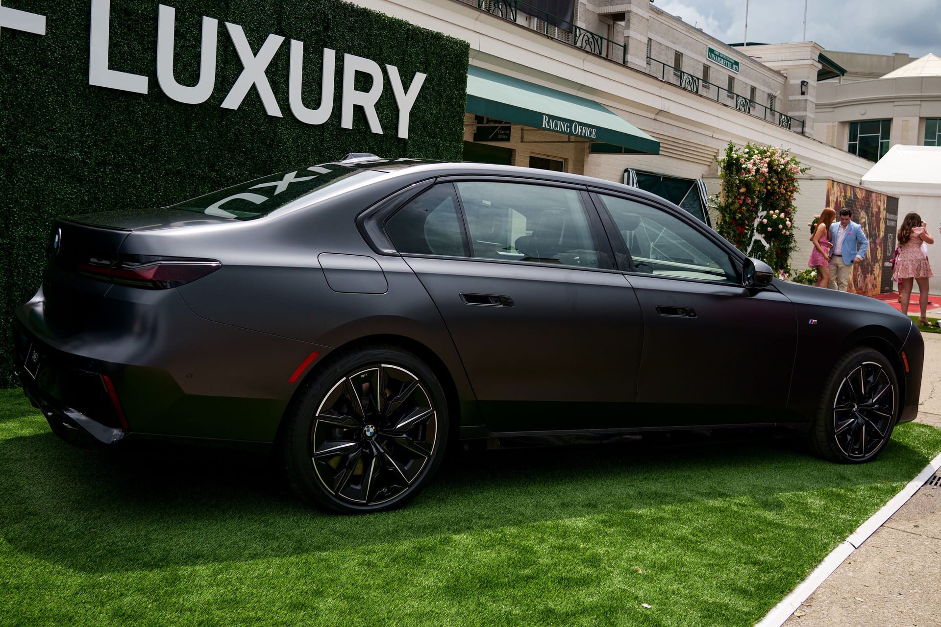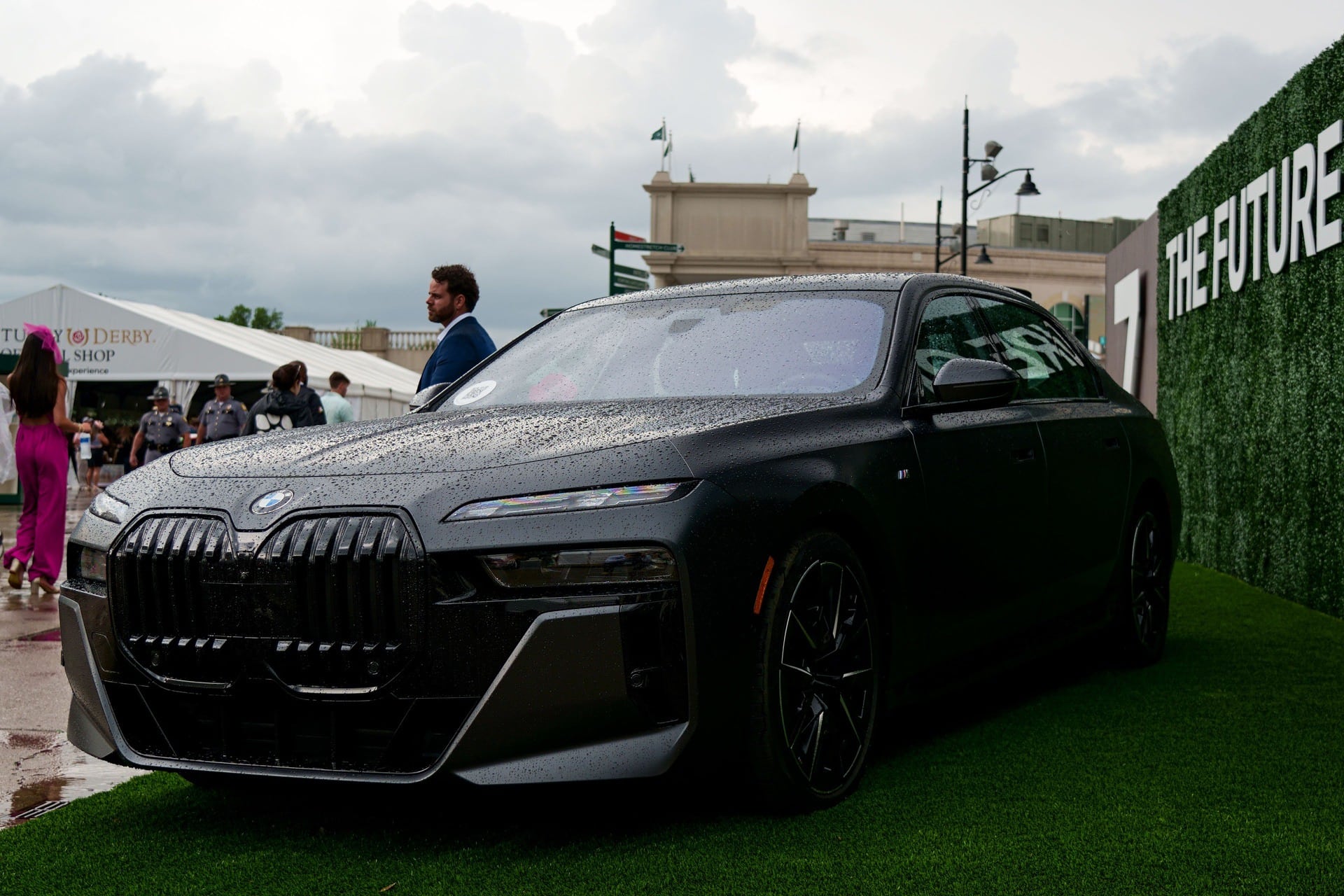 After introducing the 7 Series G70 in April, BMW continues to spread the word about its all-new flagship car. The first public showcase of the fullsize sedan is taking place at Churchill Downs Racetrack in Louisville, Kentucky. As the first luxury automotive partner of the Kentucky Derby, BMW brought the 760i in a stealthy spec with the M Sport Package.