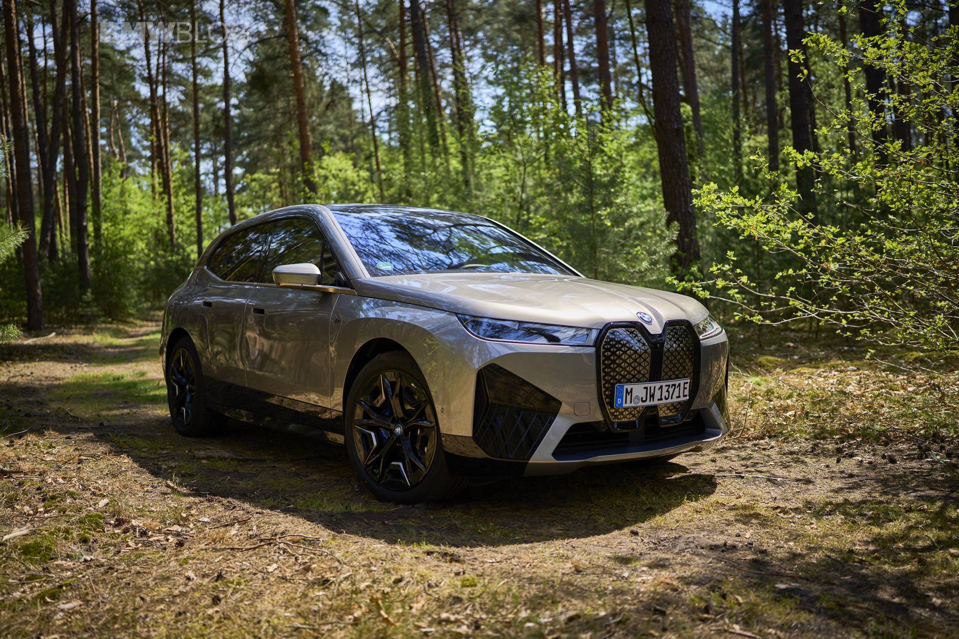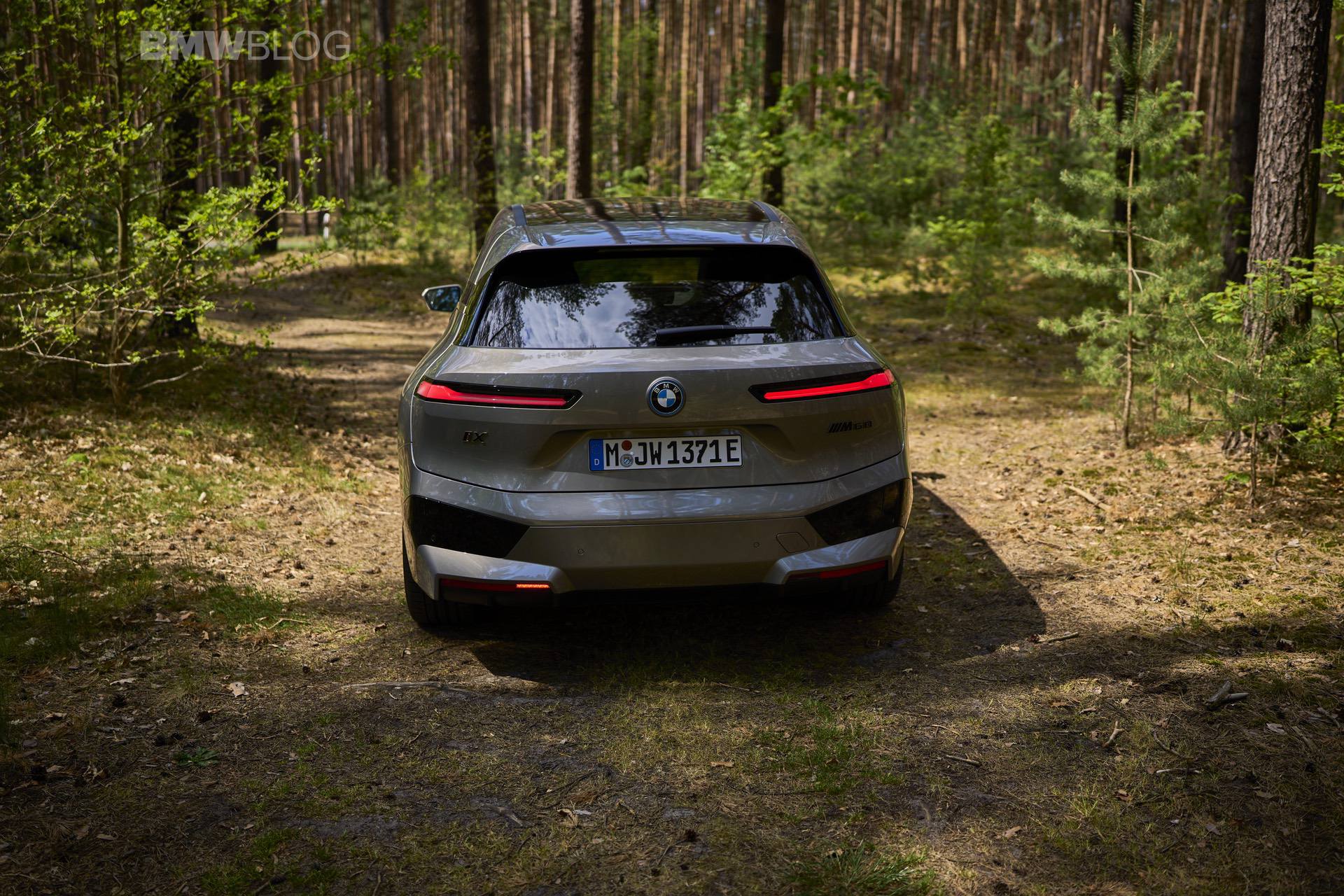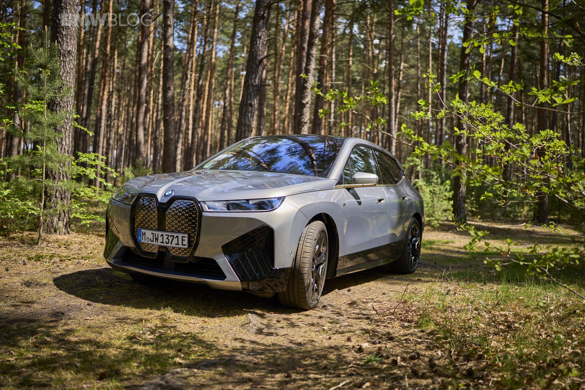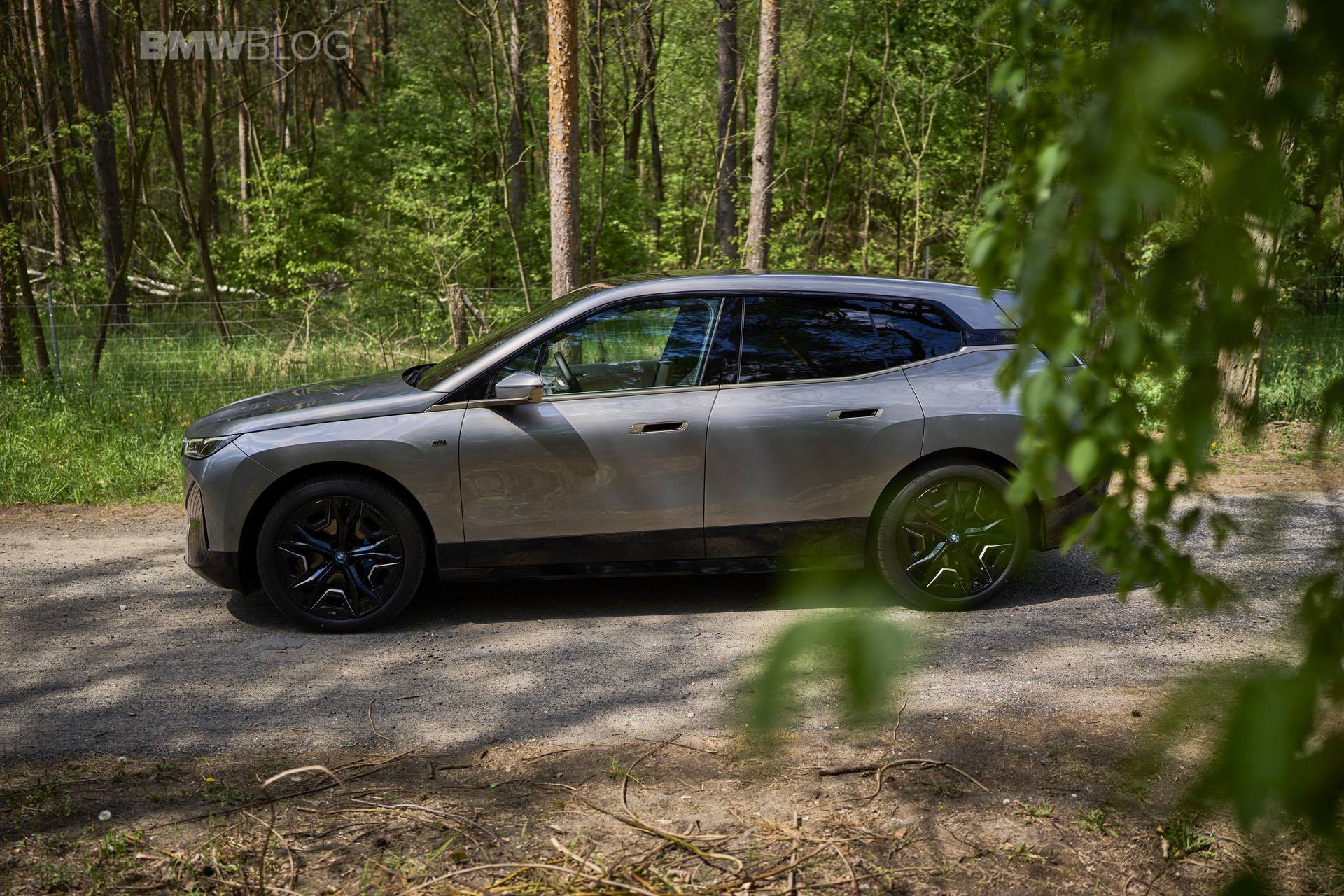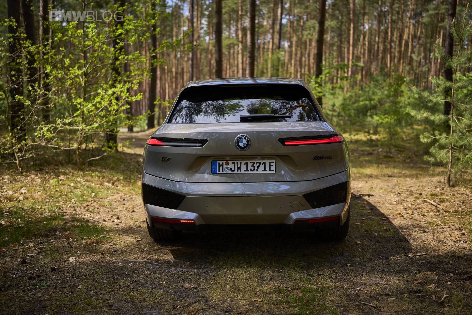 The test drives are embargoed until late May, but photography is not. So today, we took the car for a spin and filmed it in an unusual setting: deep into the woods. The Oxide Grey is the color name on this iX M60 which not only stands out with its performance, but also with its quirky looks.