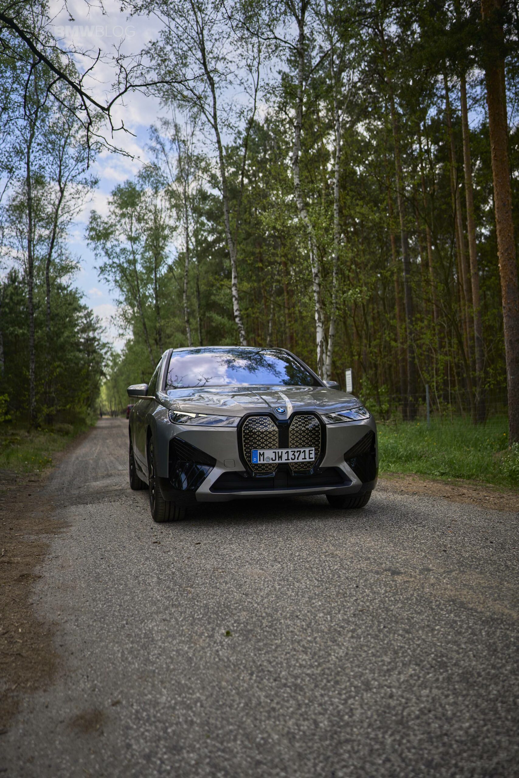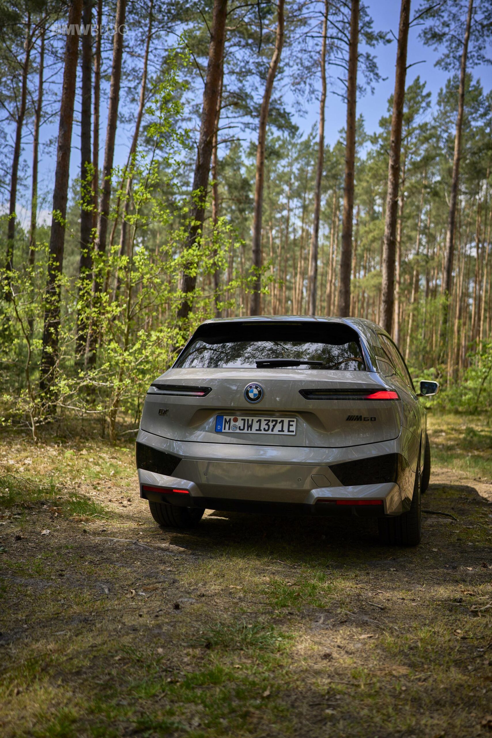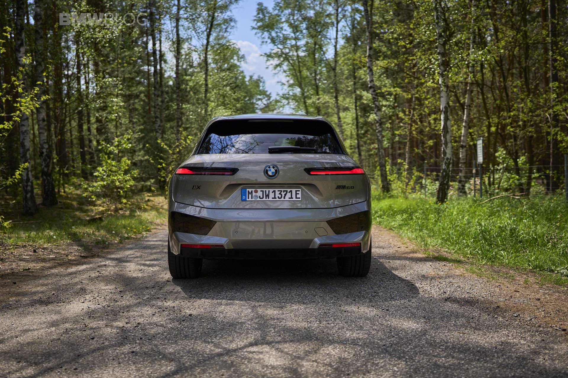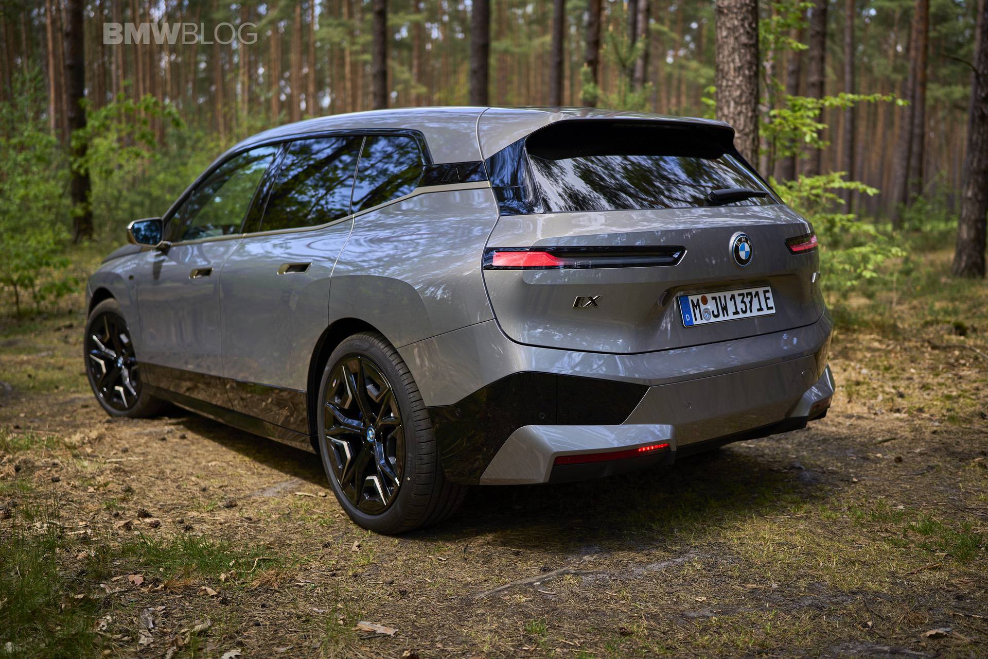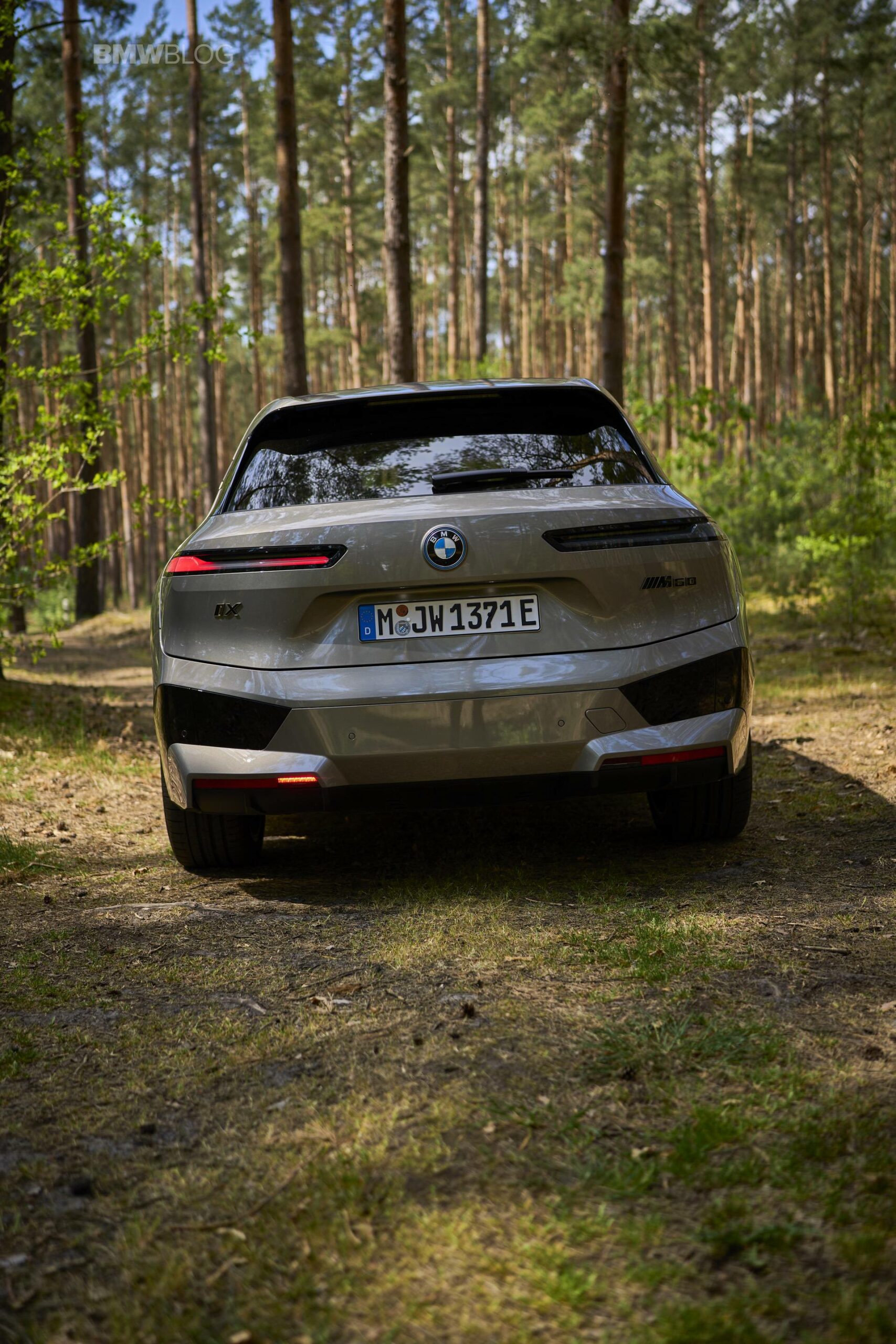 The test drives are embargoed until late May, but photography is not. So today, we took the car for a spin and filmed it in an unusual setting: deep into the woods. The Oxide Grey is the color name on this iX M60 which not only stands out with its performance, but also with its quirky looks.