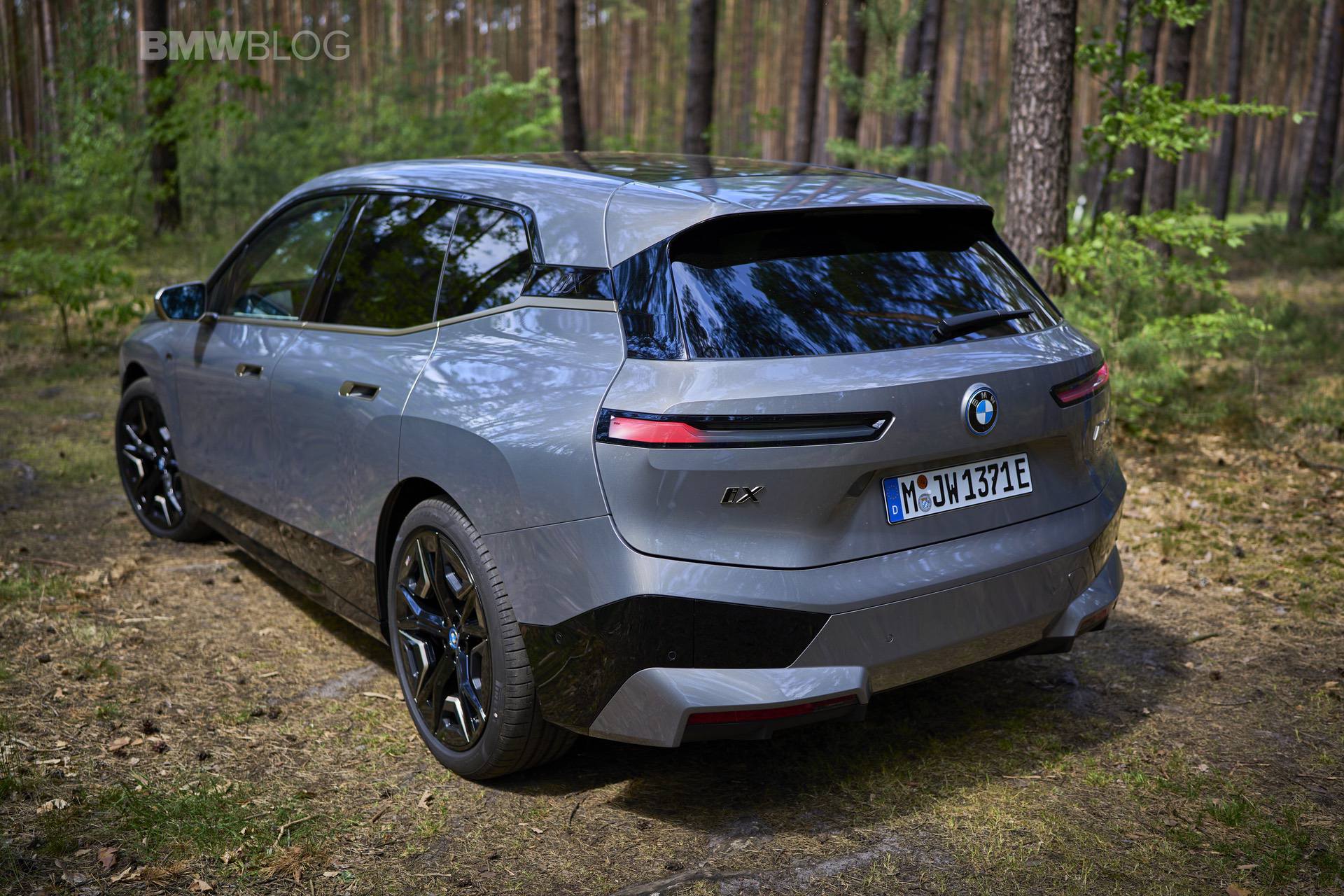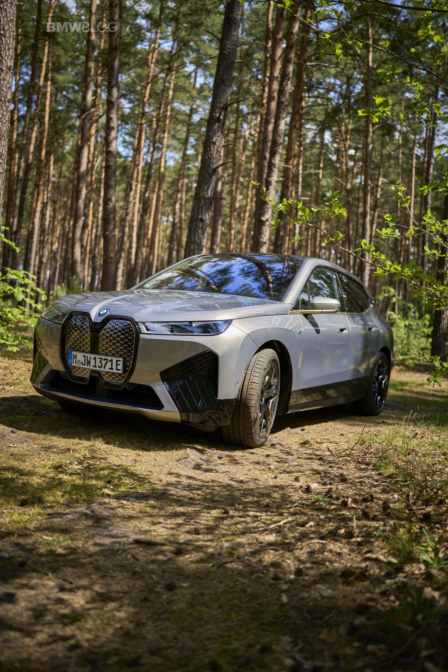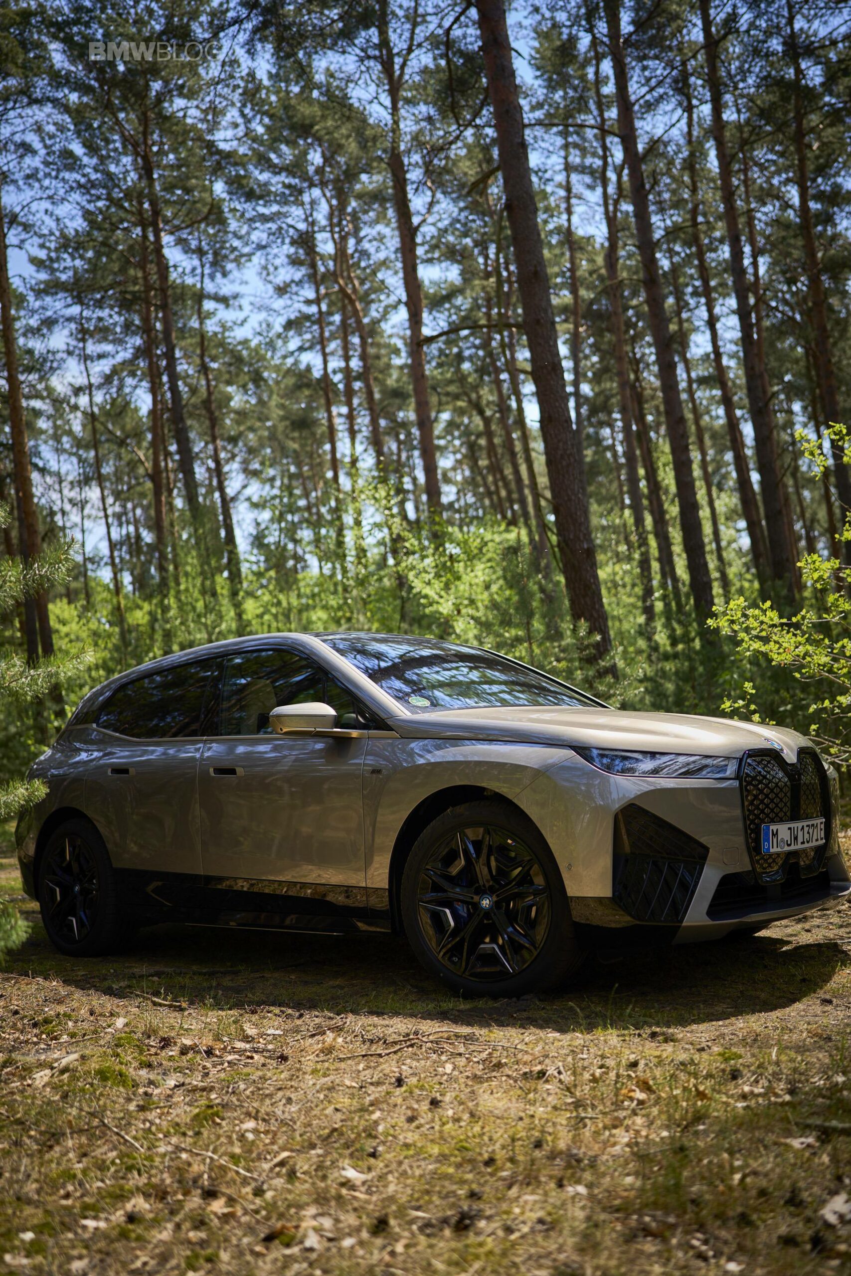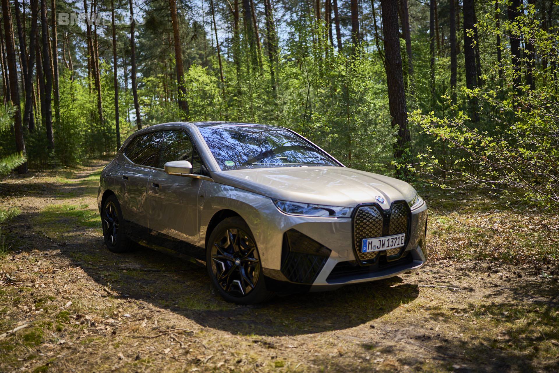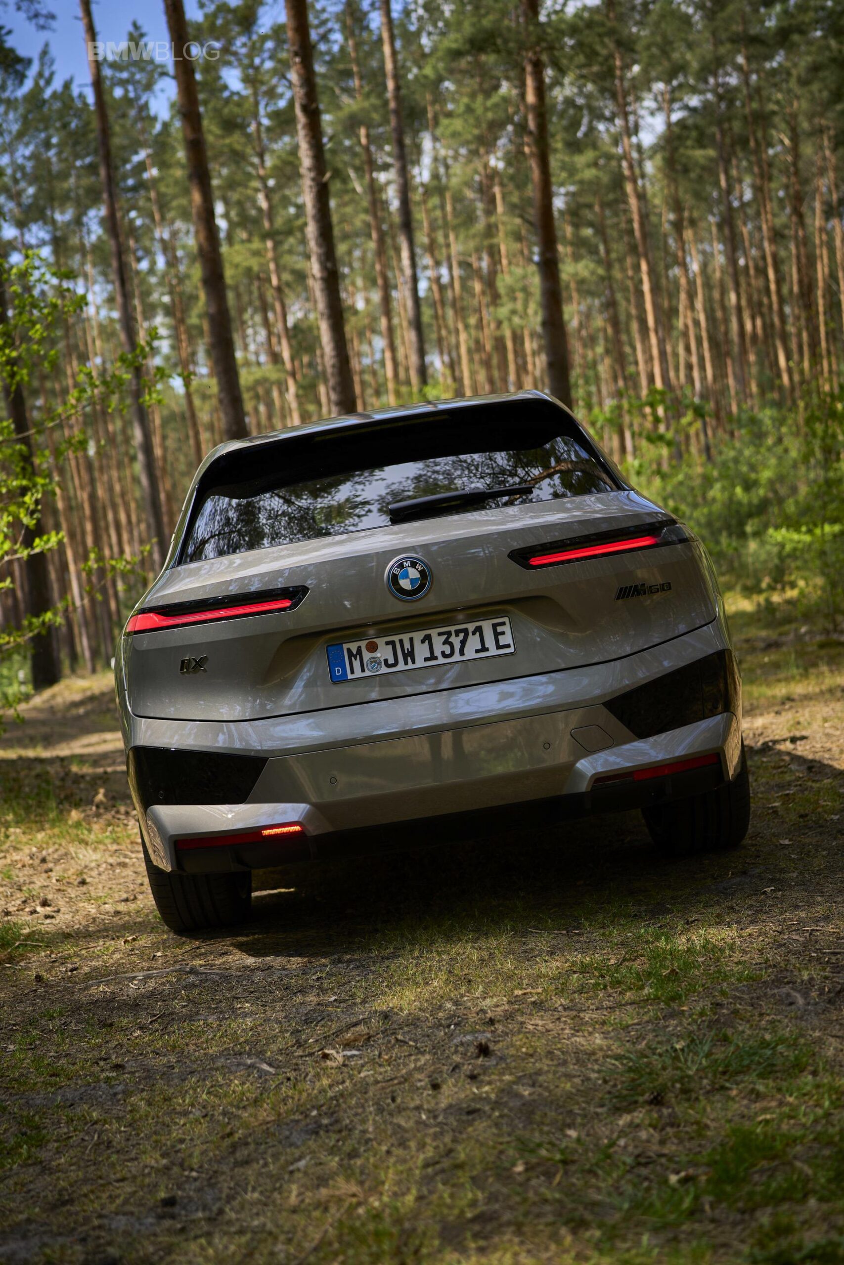 The test drives are embargoed until late May, but photography is not. So today, we took the car for a spin and filmed it in an unusual setting: deep into the woods. The Oxide Grey is the color name on this iX M60 which not only stands out with its performance, but also with its quirky looks.