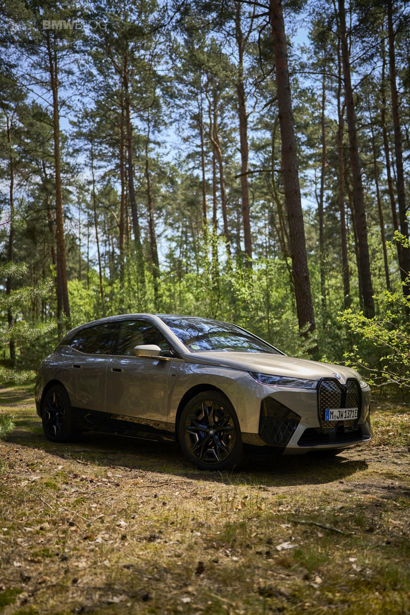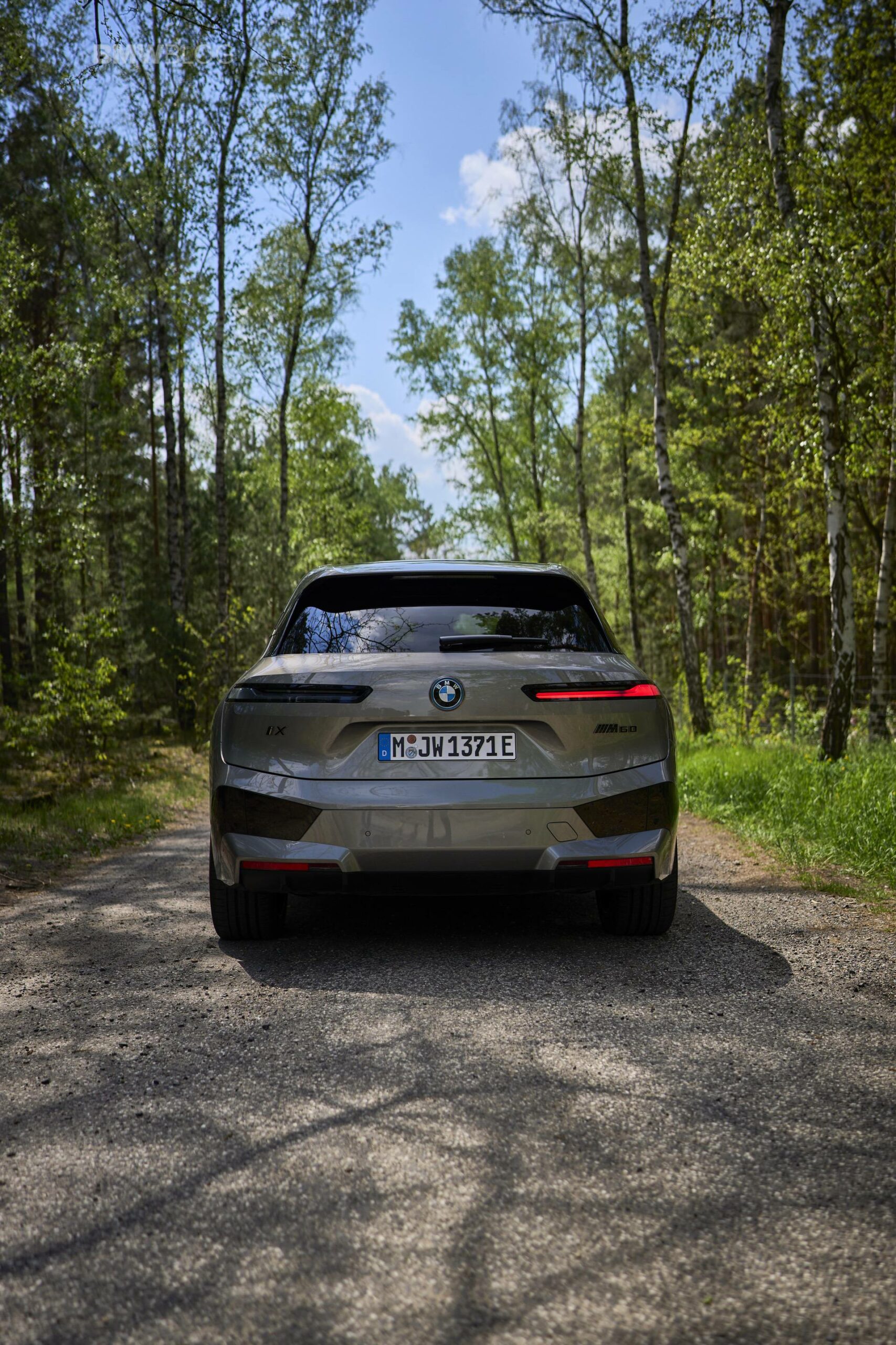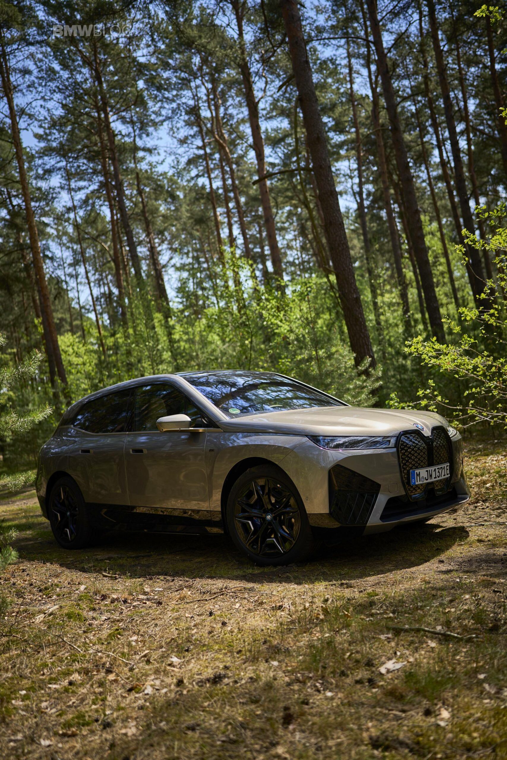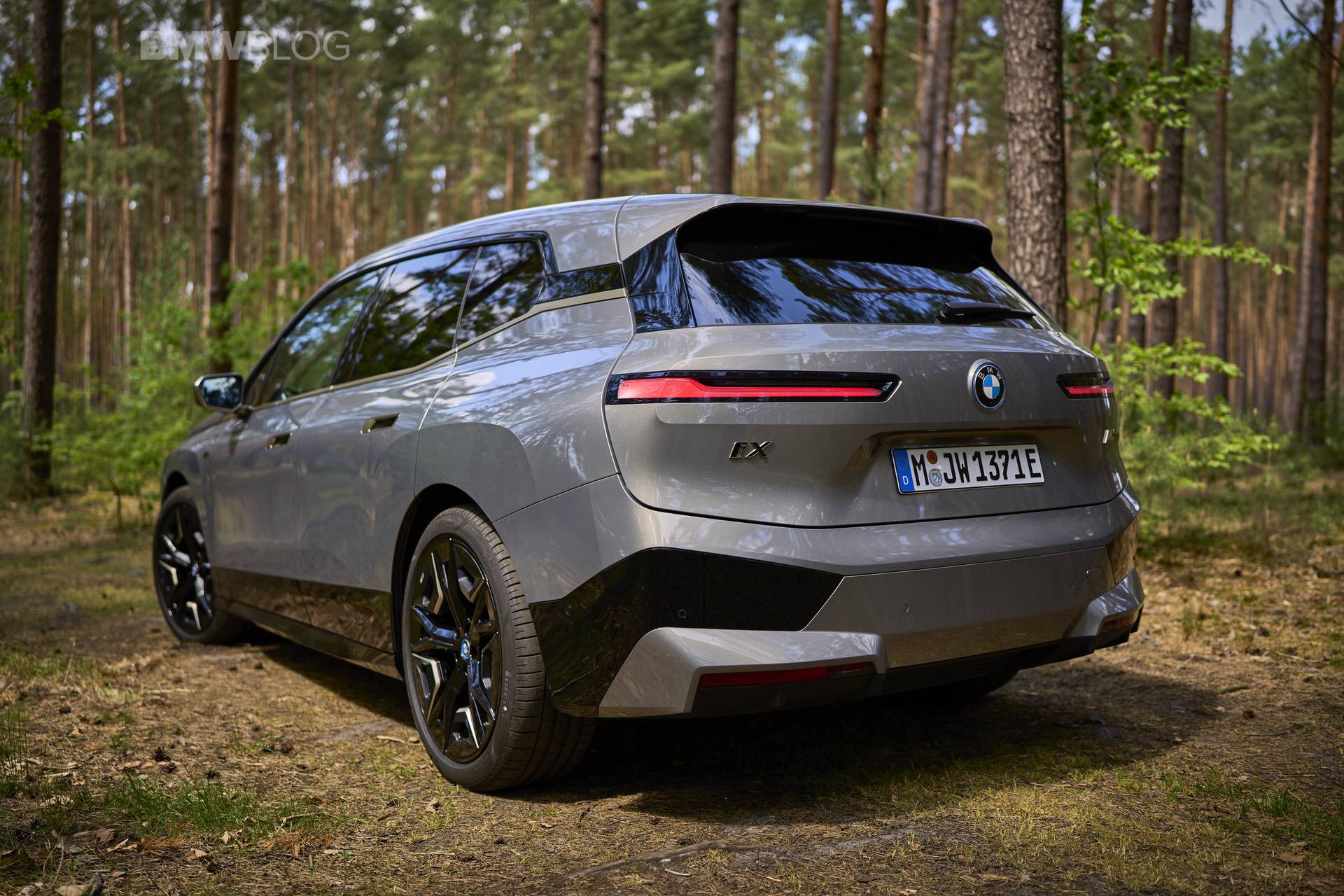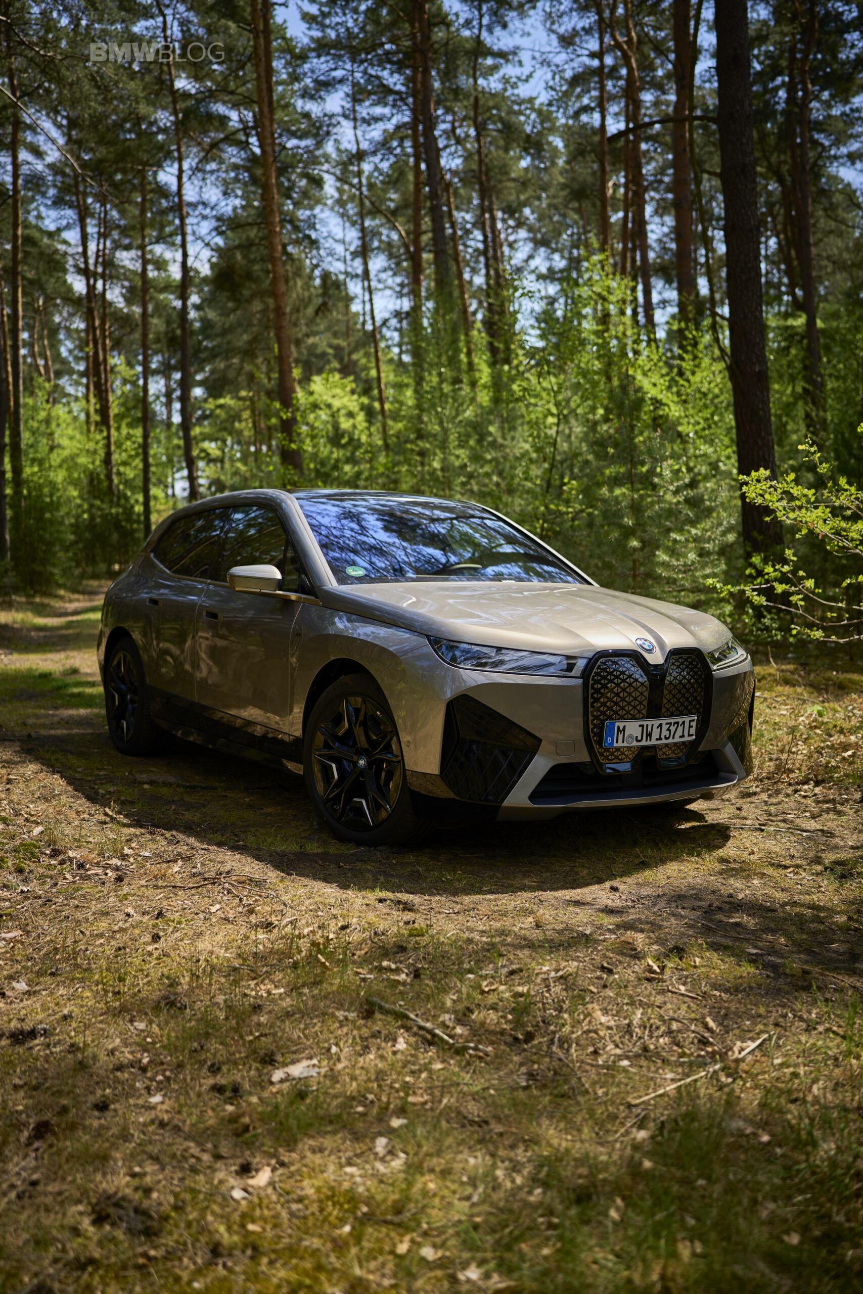 The test drives are embargoed until late May, but photography is not. So today, we took the car for a spin and filmed it in an unusual setting: deep into the woods. The Oxide Grey is the color name on this iX M60 which not only stands out with its performance, but also with its quirky looks.