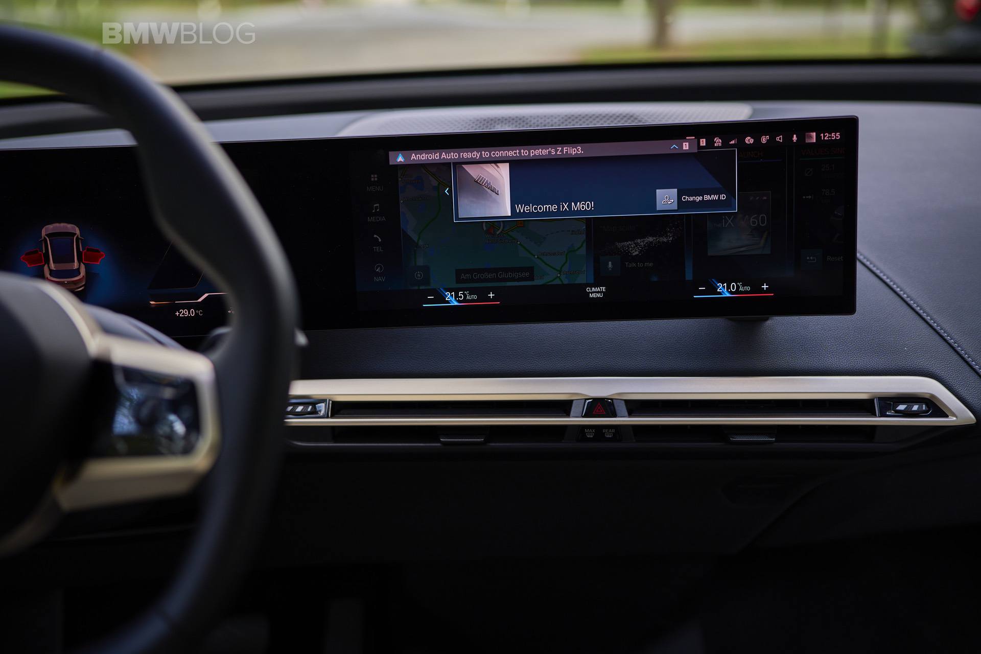 Otherwise, under all normal circumstances, the BMW iX M60 makes 532 horsepower and 749 lb-ft (1,016 Nm). However, during launch control the iX M60 is capable of 0-62 mph in 3.8 seconds. Top speed is electronically-limited to 155 mph (250 km/h), like most other BMWs. The iX M60 is expected to deliver a range of up to 280 miles (preliminary EPA estimate). It’s also important to note that the 280 mile range is with 21″ wheels.