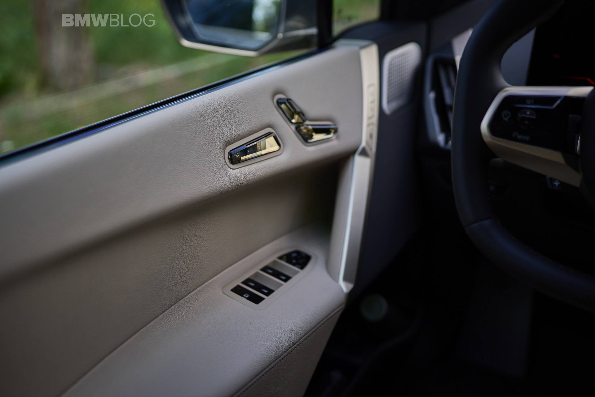Stepping inside the iX M60, BMW sells the high-performance electric SUV with synthetic leather (Sensatec) as standard. Opt for perforated leather in Amido or Castanea Chestnut and it’ll add $3,500 to the final bill. As far as the trim color is concerned, you’re stuck with Titanium Bronze.