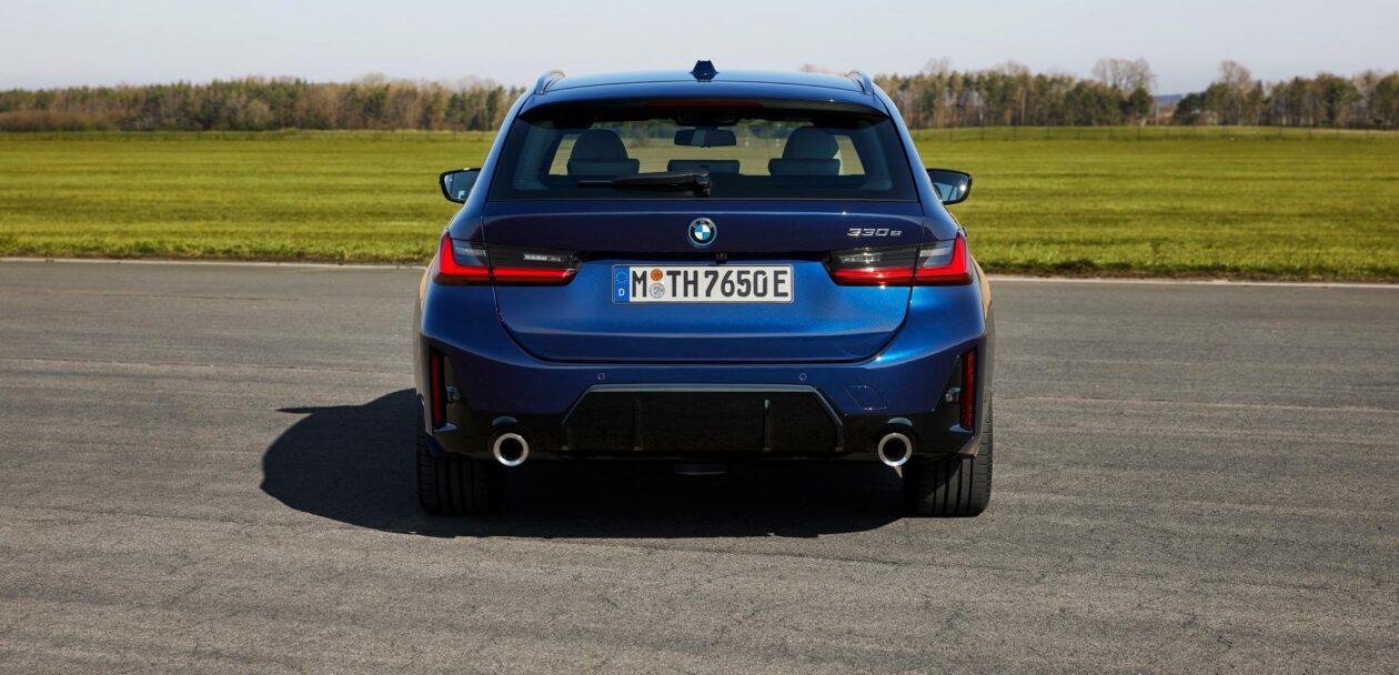Moving to the back, the only real difference between the 3 Series Touring LCI and the outgoing pre-LCI car is the pseudo diffuser in the rear bumper. Aside from that, it’s pretty much the same. Which is actually news in itself, as most new M Performance cars have received the same quad exhaust design as proper M cars but the 3 Series won’t, it keeps the old dual exhaust look.