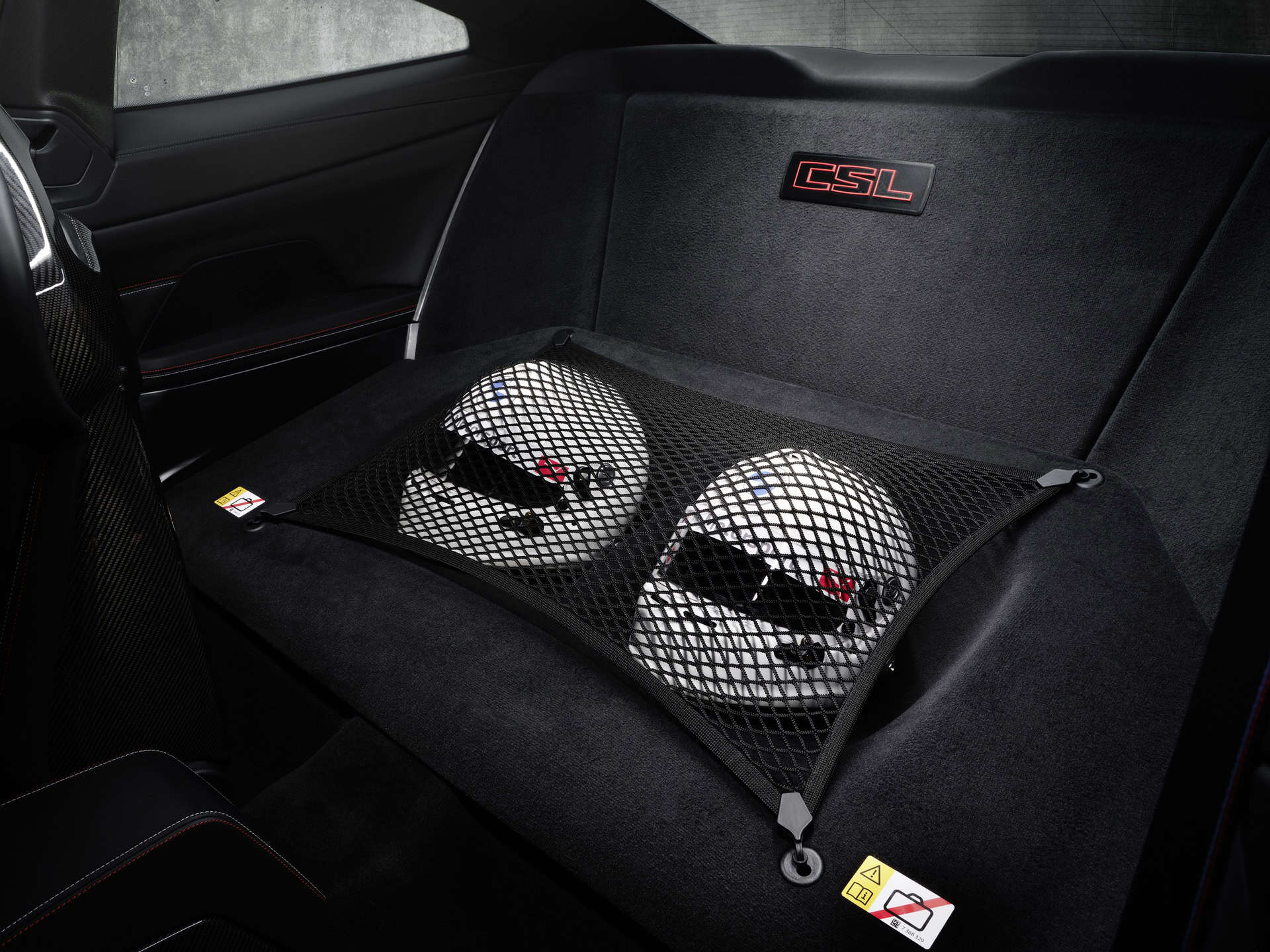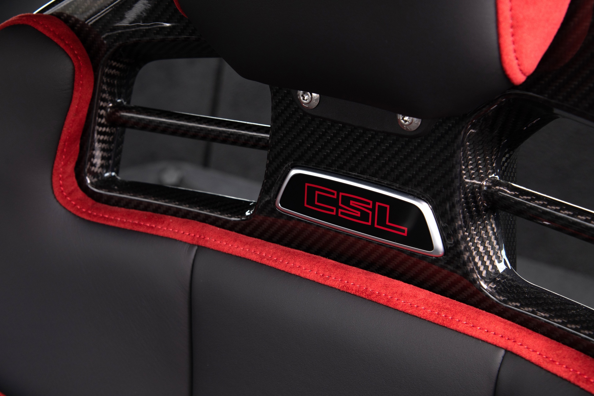 Most importantly, BMW M gave the M4 a diet for CSL-duty. Lightweight carbon fiber bucket seats shaved 24 kg off the Competition’s curb weight. Another 21 kg was saved by deleting the rear seats and rear seatbelt assemblies. Extra-lightweight carbon ceramic brakes, lighter wheels, new springs, and new struts, all combined to reduce weight by another 21 kg.